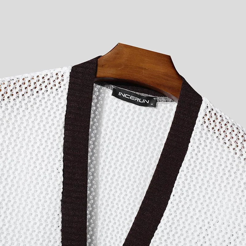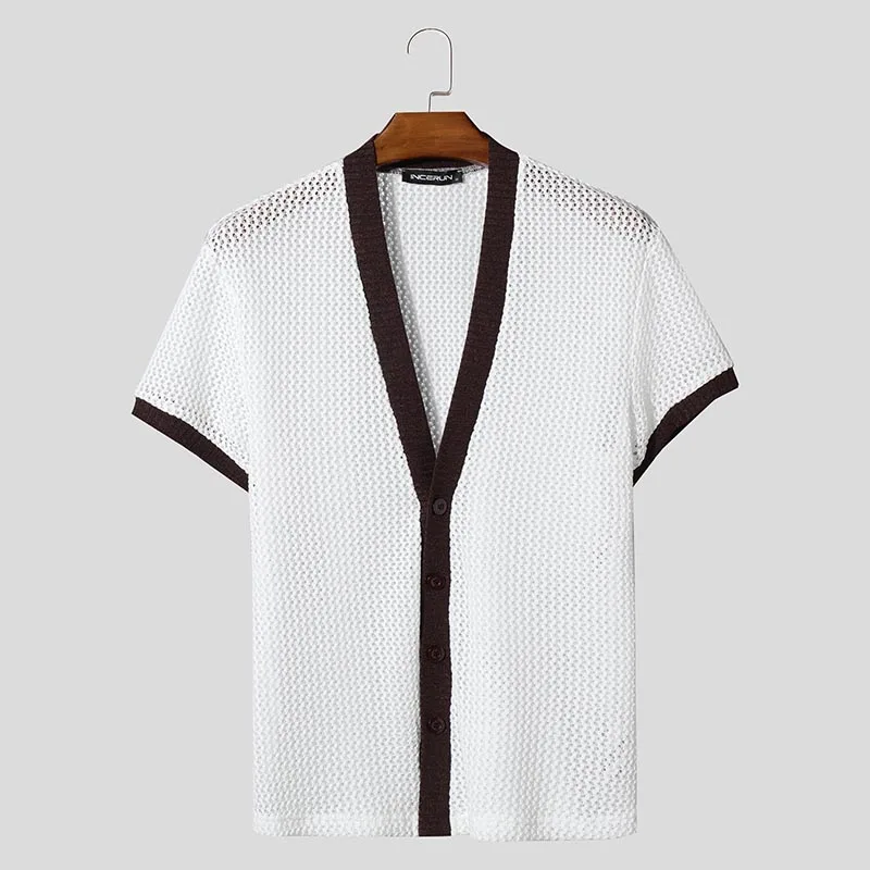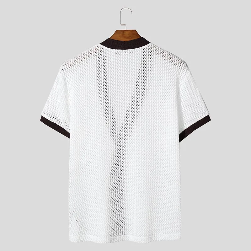 AIDASE - Men Shirt Mesh Patchwork V Neck Short Sleeve Summer Men Clothing Streetwear 2025 Fashion Casual Transparent Camisetas