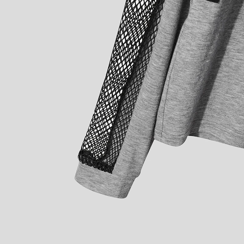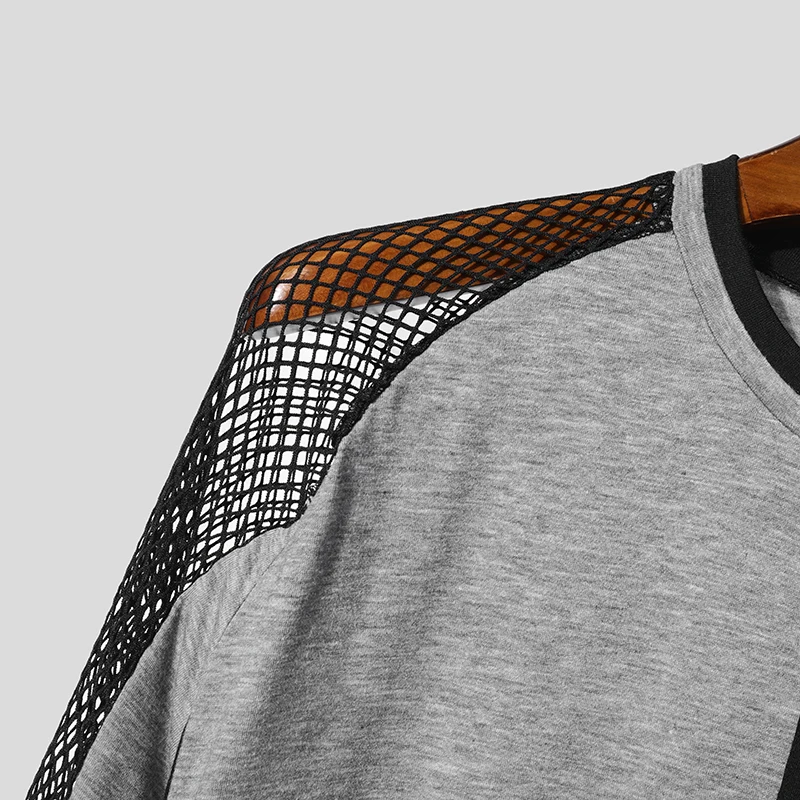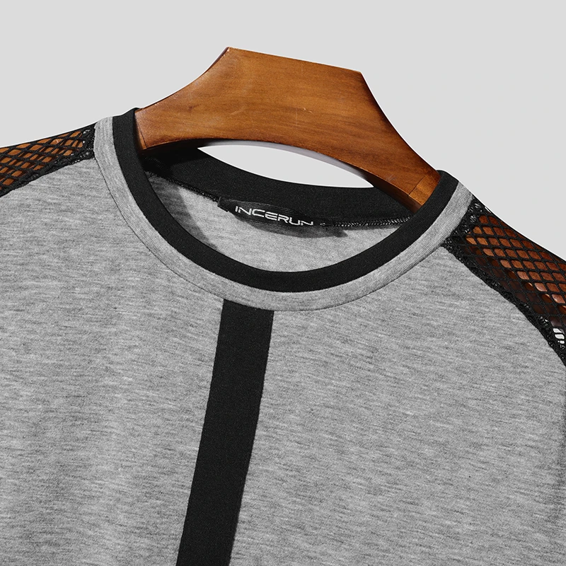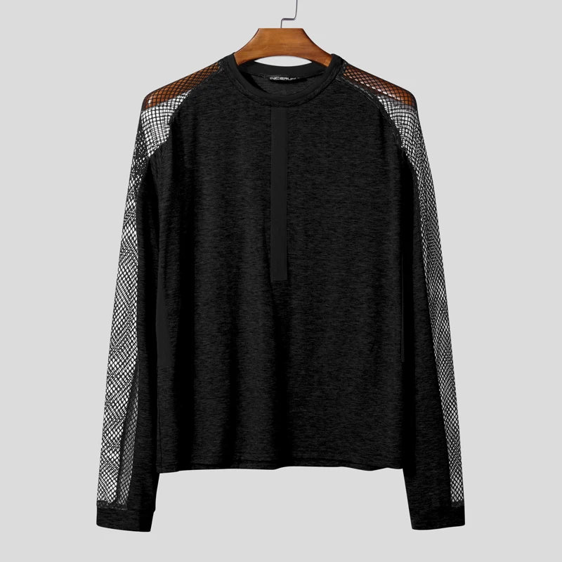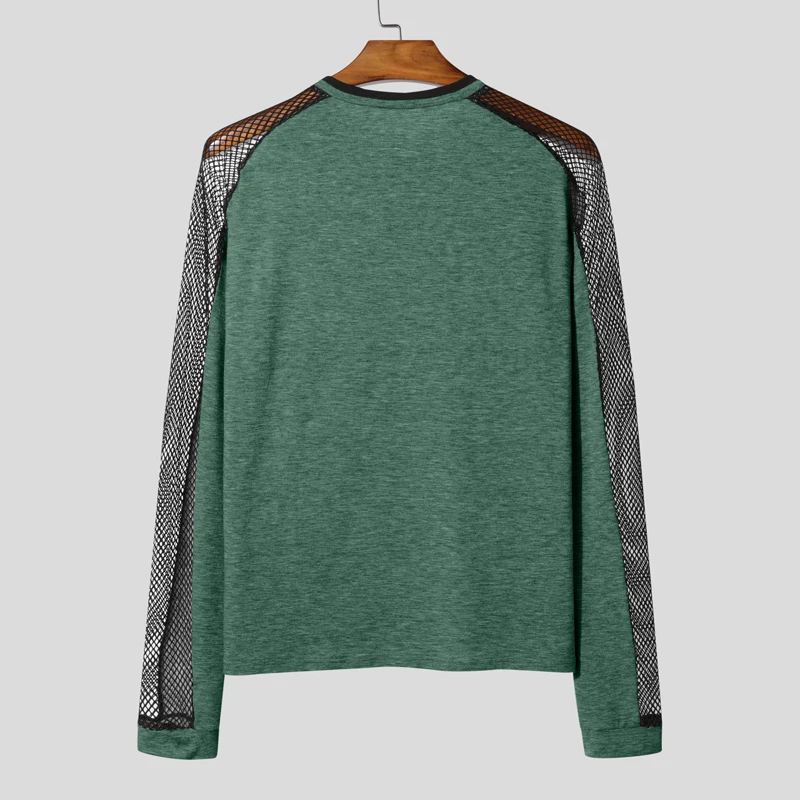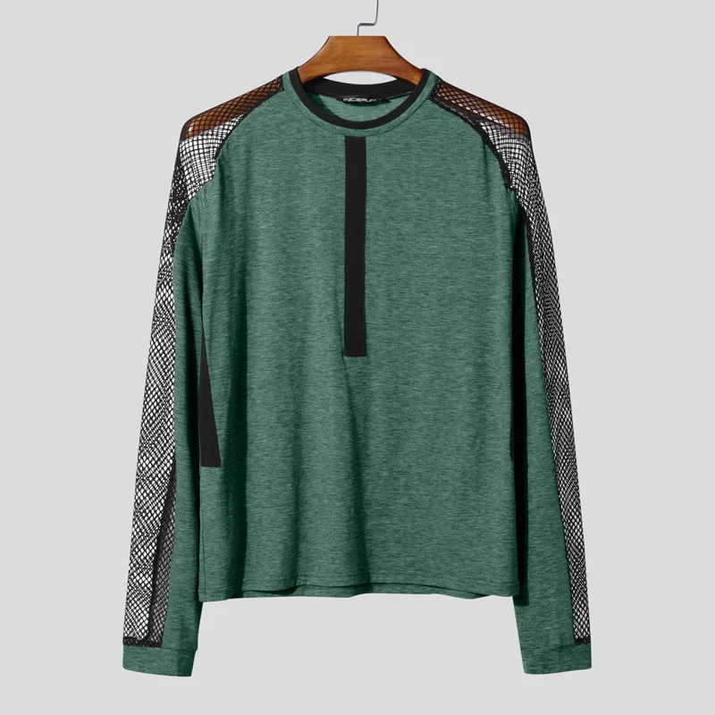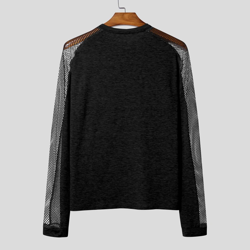 AIDASE - Men T Shirt Mesh Patchwork Transparent O-neck Long Sleeve Sexy Casual Male Tee Tops Streetwear 2025 Stylish Camisetas