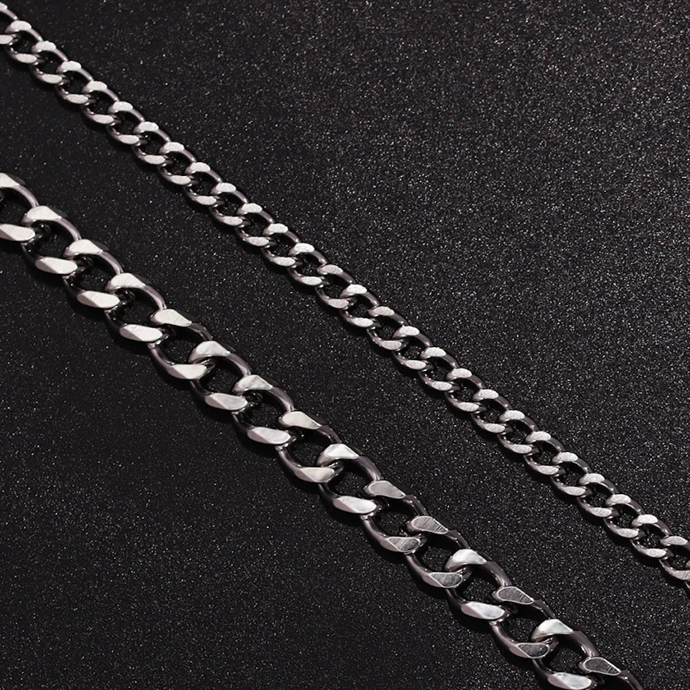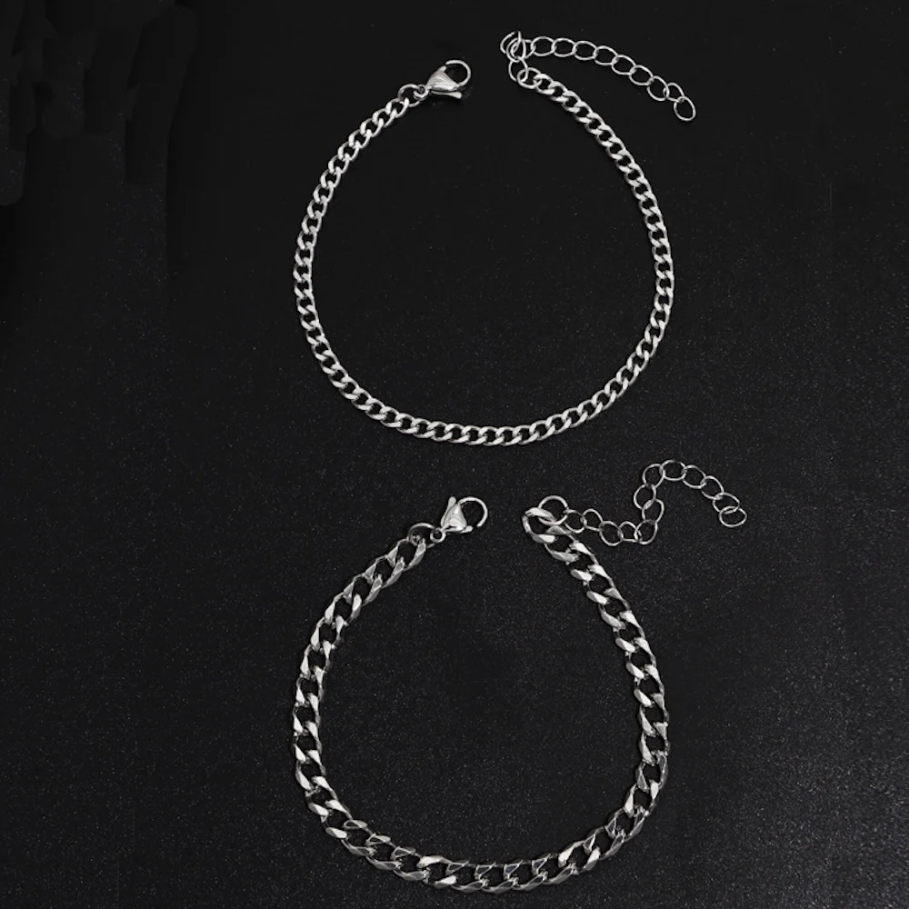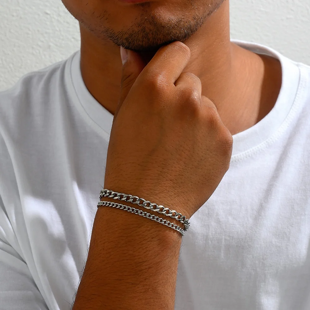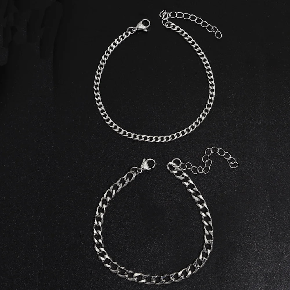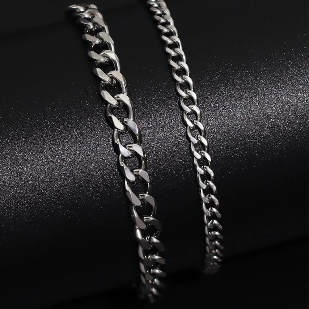 AIDASE - Stainless Steel Cuban Chain Bracelet Set Silver Color Titanium Steel MenBracelet Fashion Jewelry Trend Accessories Men Gift
