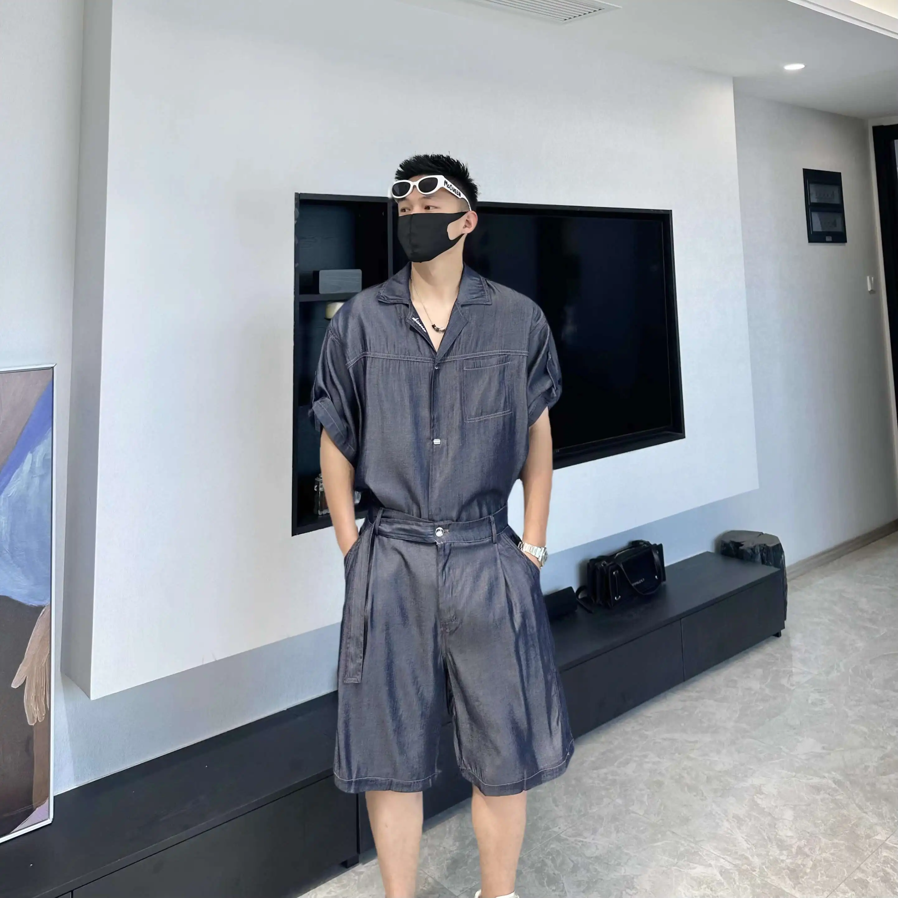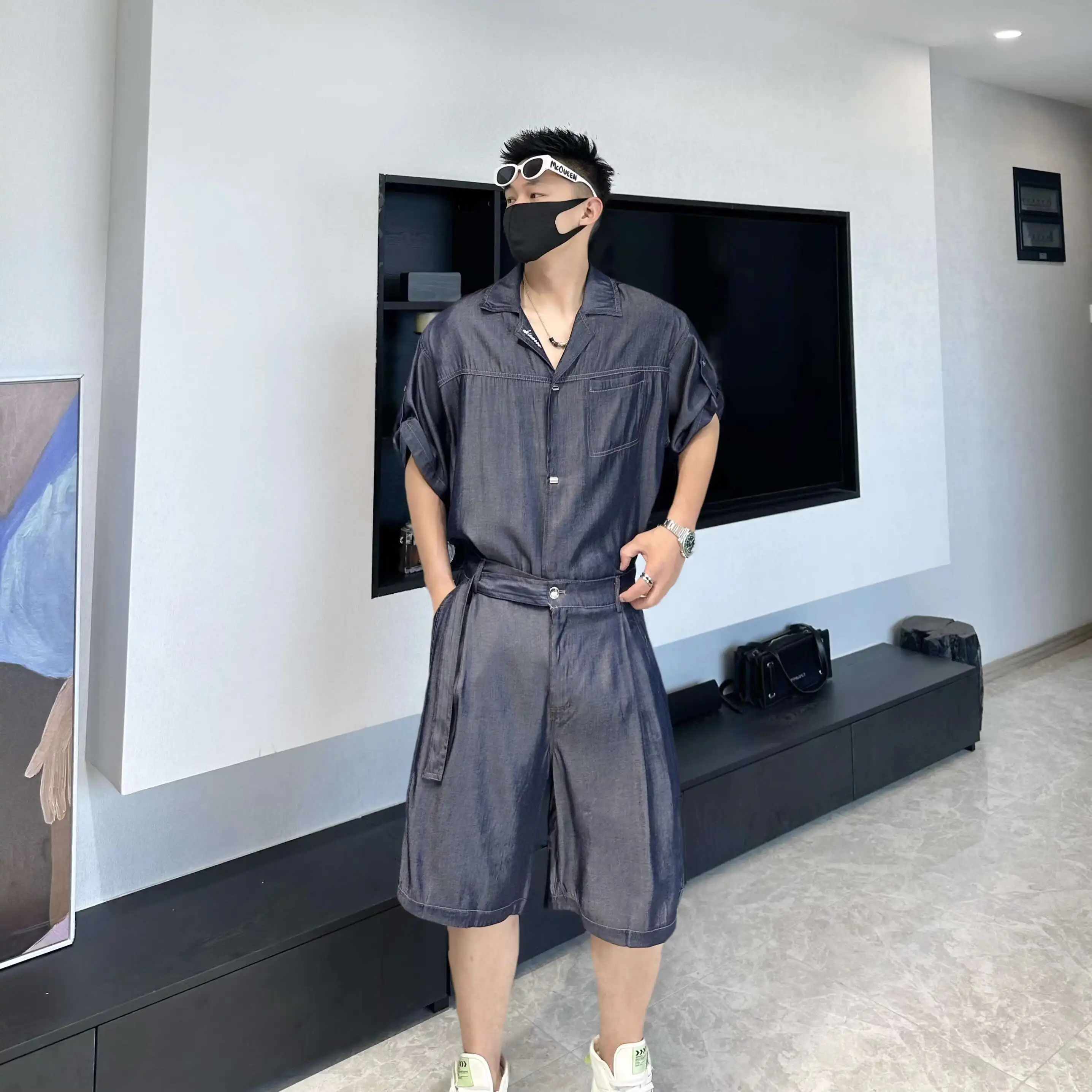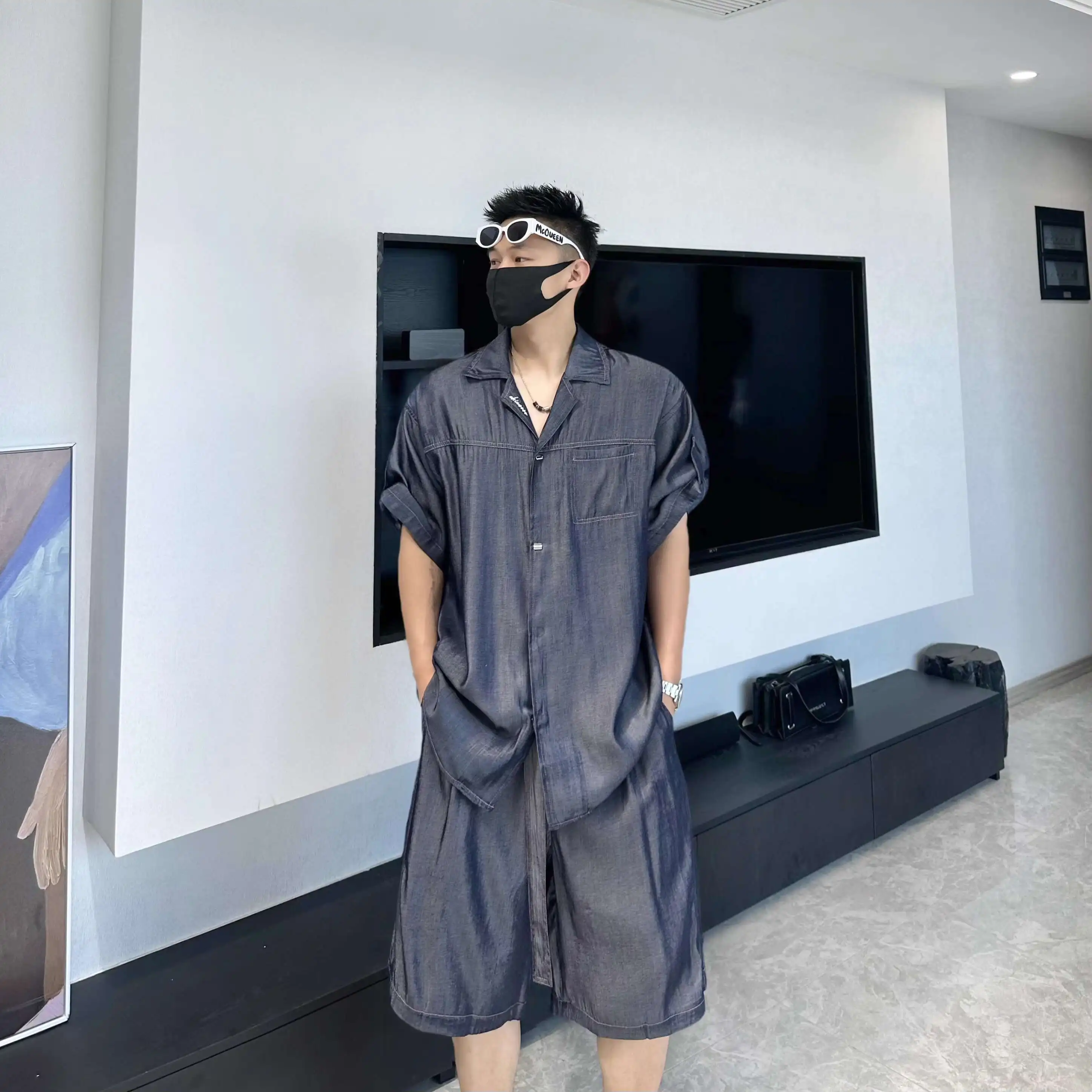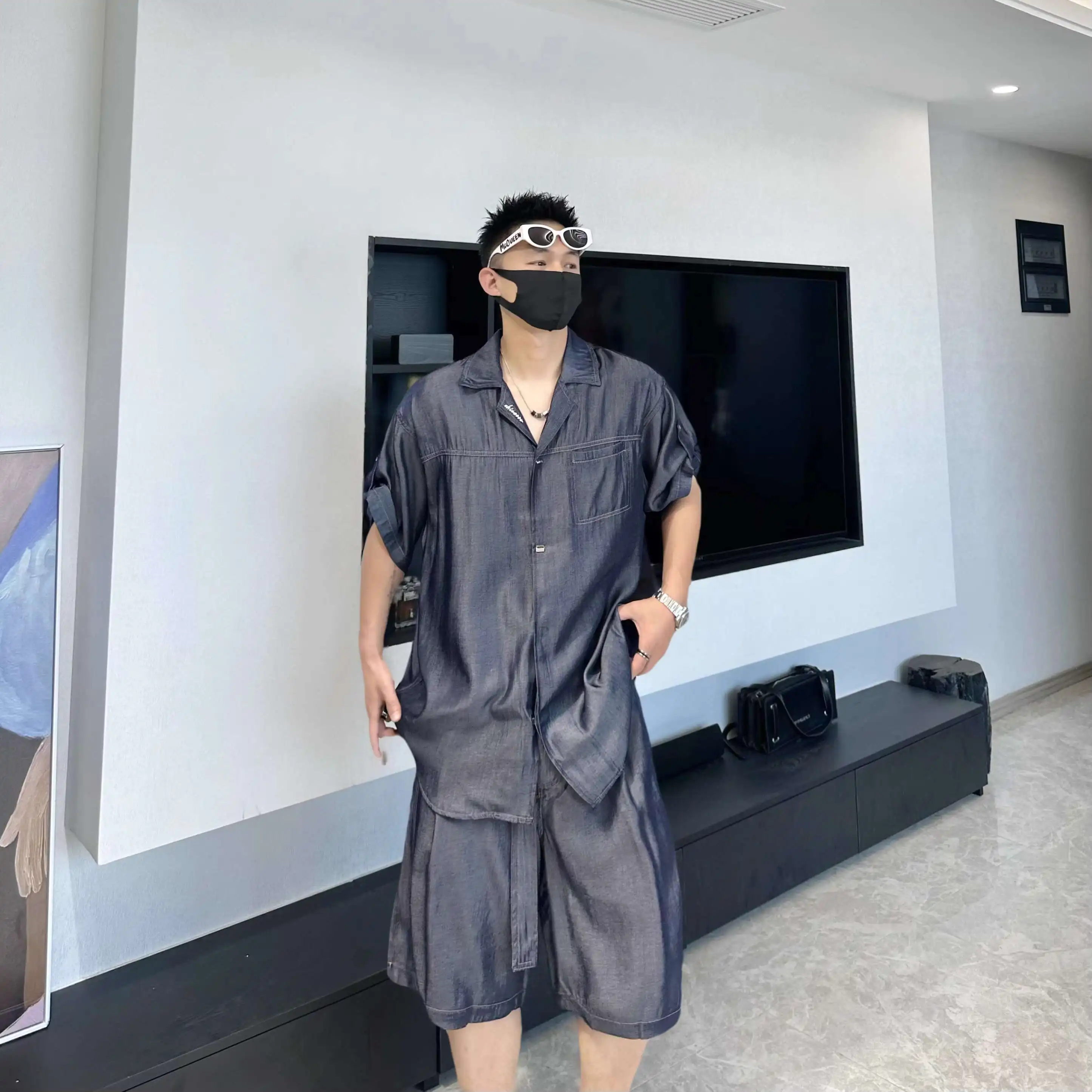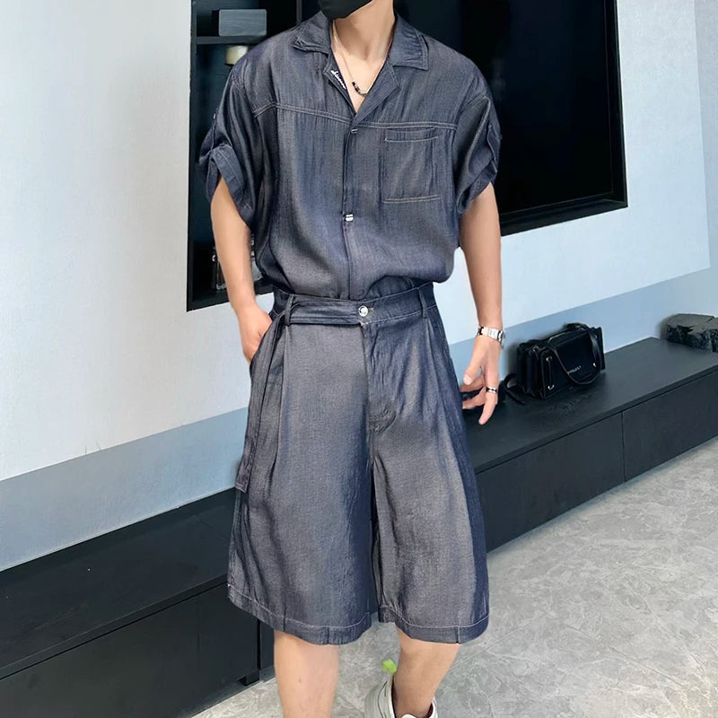 AIDASE - Summer New Men's Denim Sets Breathable Short Sleeve Lapel Men Shirt Straight-leg Loose Shorts Male Two-Piece Tide 21E6407