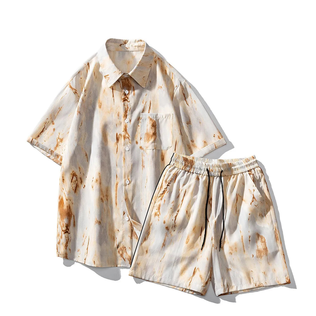 AIDASE - Summer New Men's Sets Single Breasted Lapel Short Sleeve Shirt Drawstring Straight-leg Men Shorts Trend Male Suit