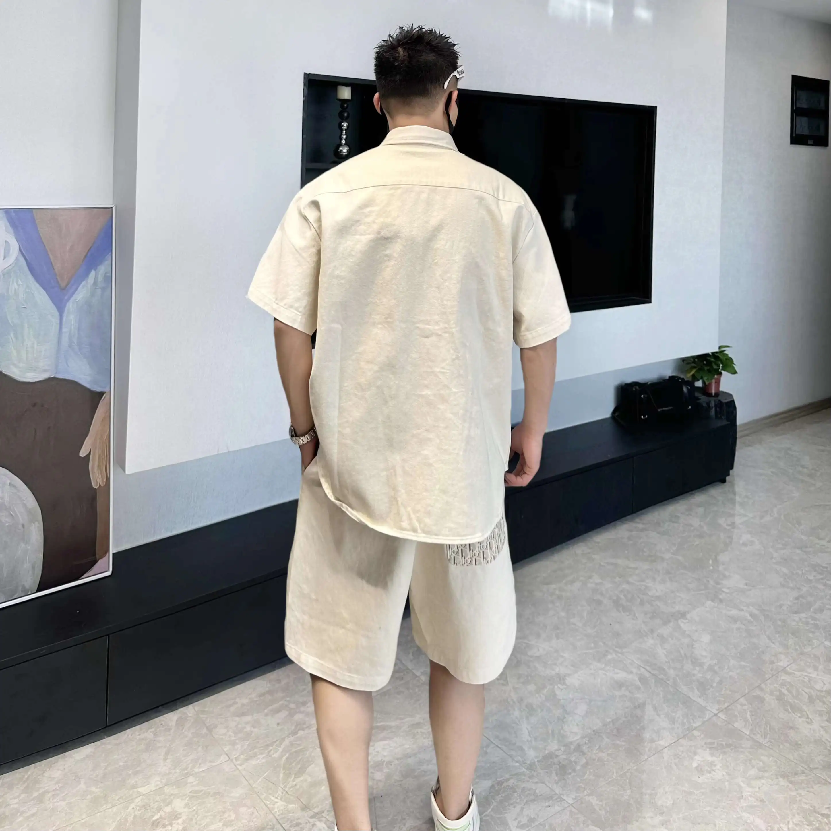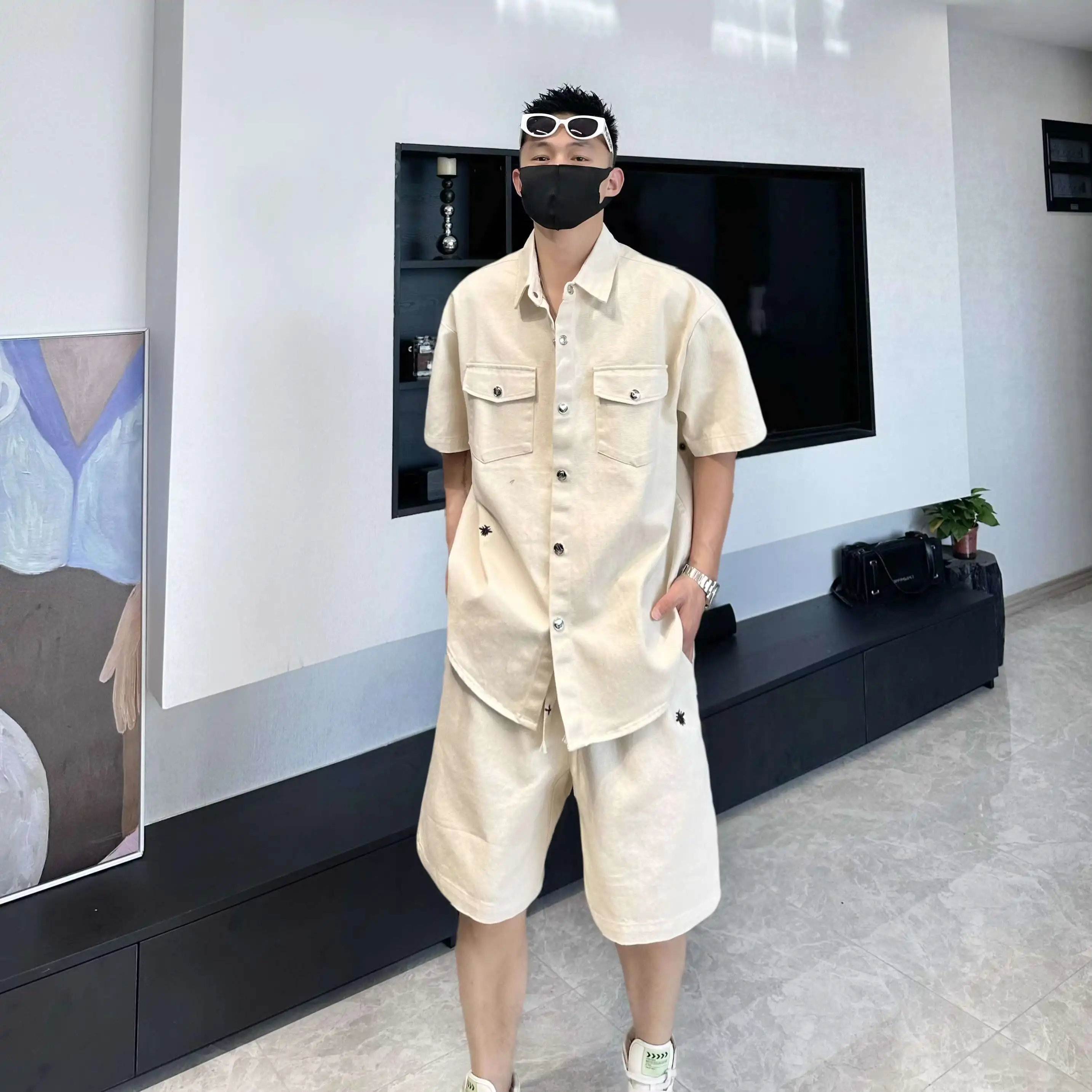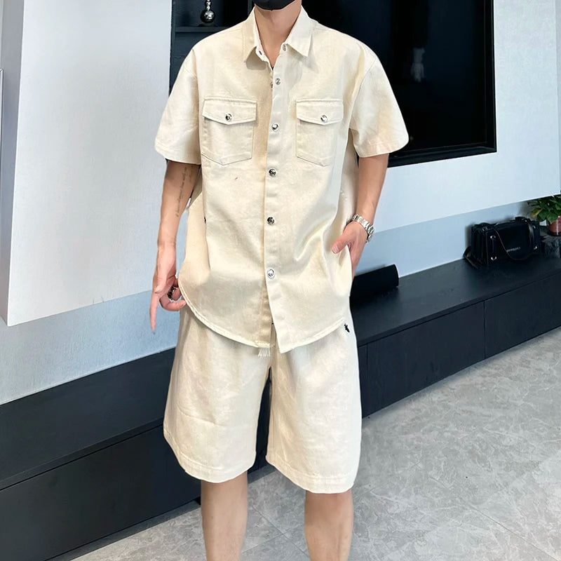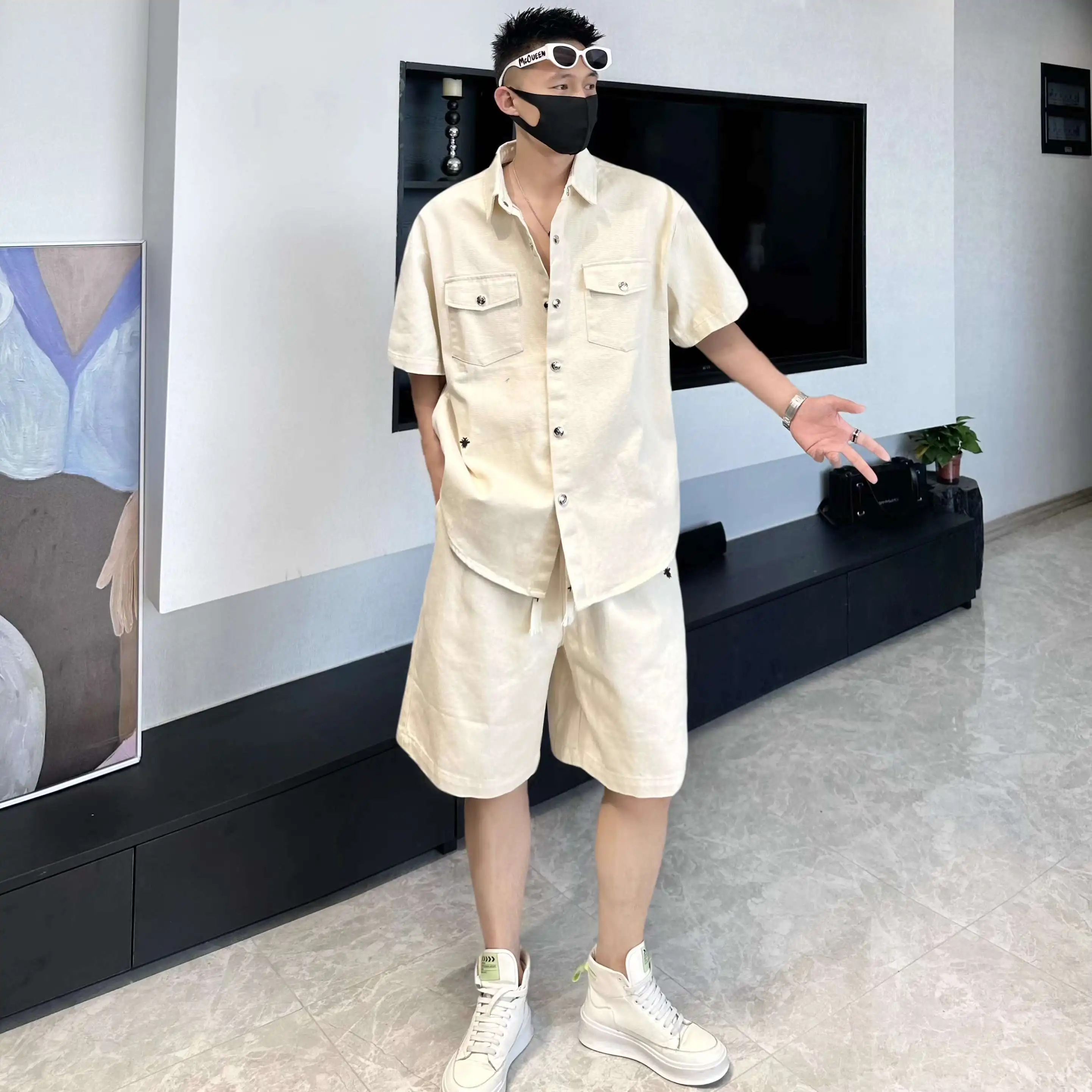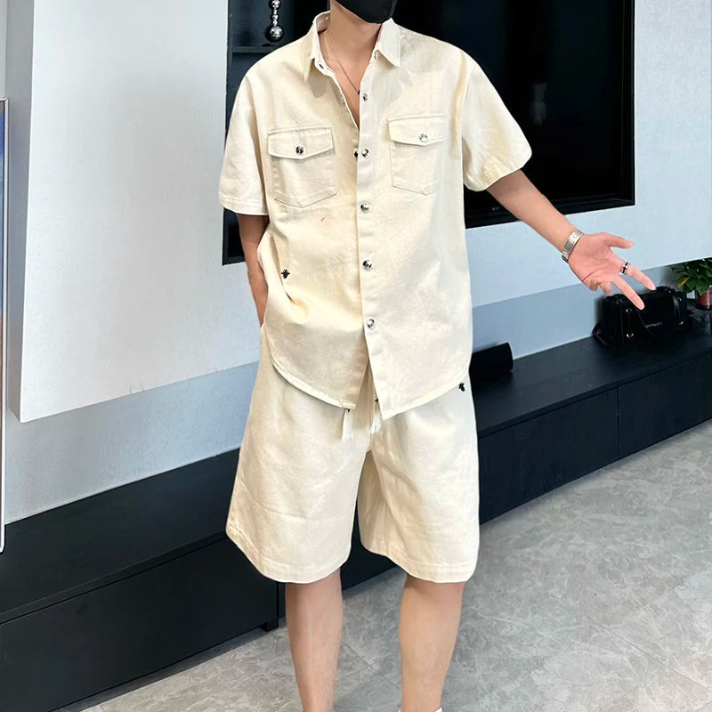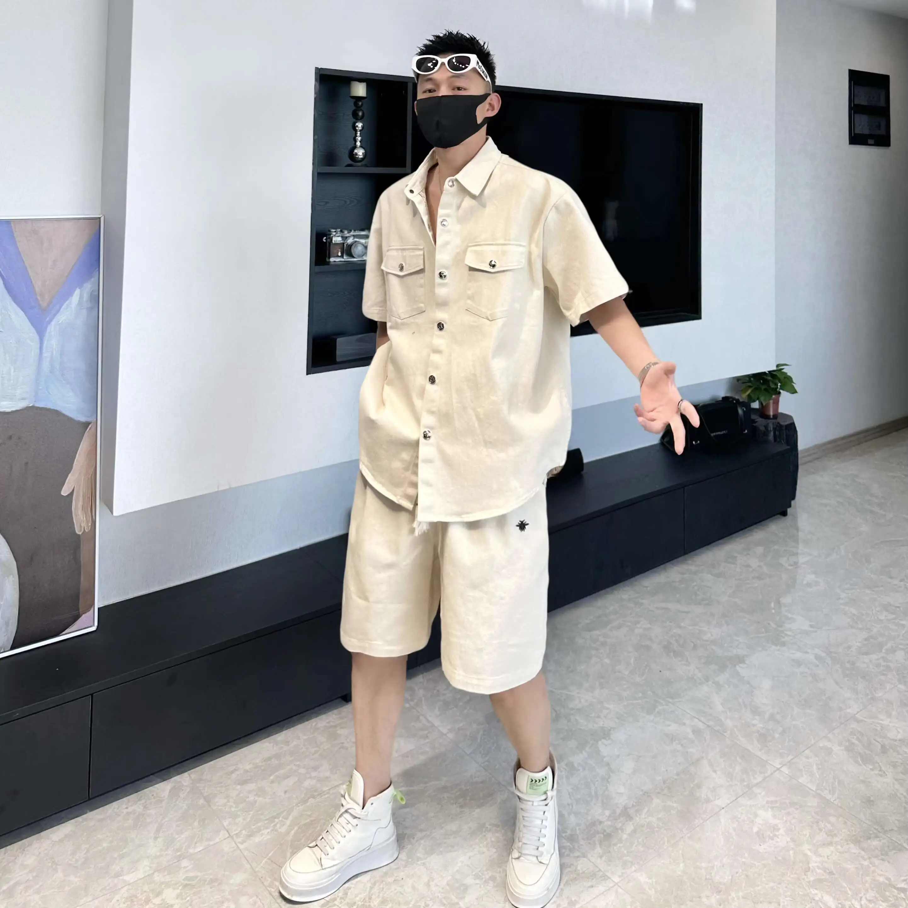 AIDASE - Trendy New Male Sets Summer Short Sleeve Single Breasted Denim Shirt Stylish Thin Shorts Men's Two-Piece Tide 21E6403