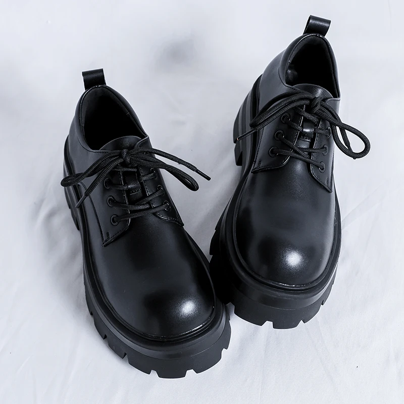 Aidase Autumn New Streetwear Fashion Business Casual Thick Platform Increase 8CM Leather Wedding Shoes Harajuku Korean Fashion Shoes