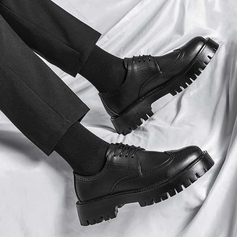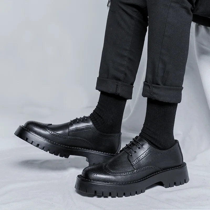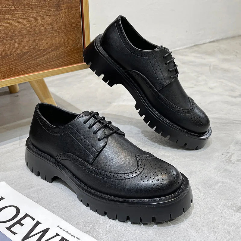 Aidase British Style Brogue Shoes for Men Business Casual Fashion Commute Thick Sole Leather Shoes Male Platform Wedding Dress Shoes