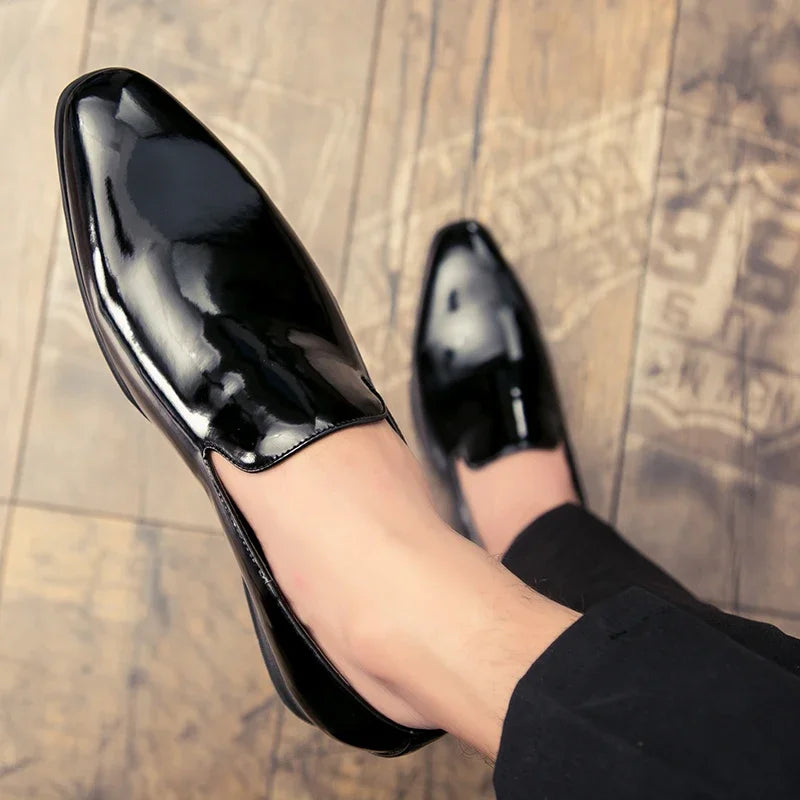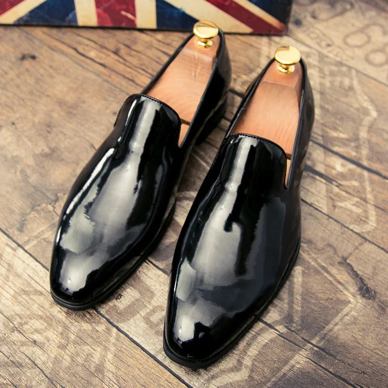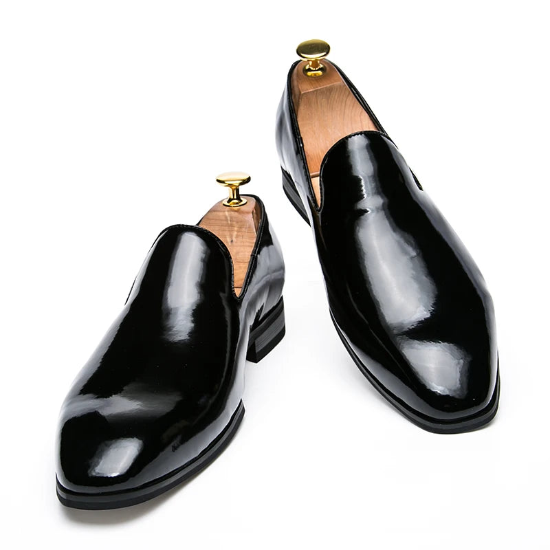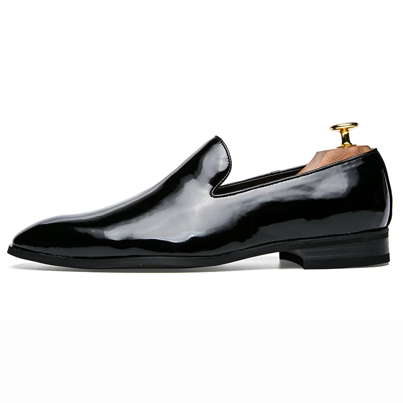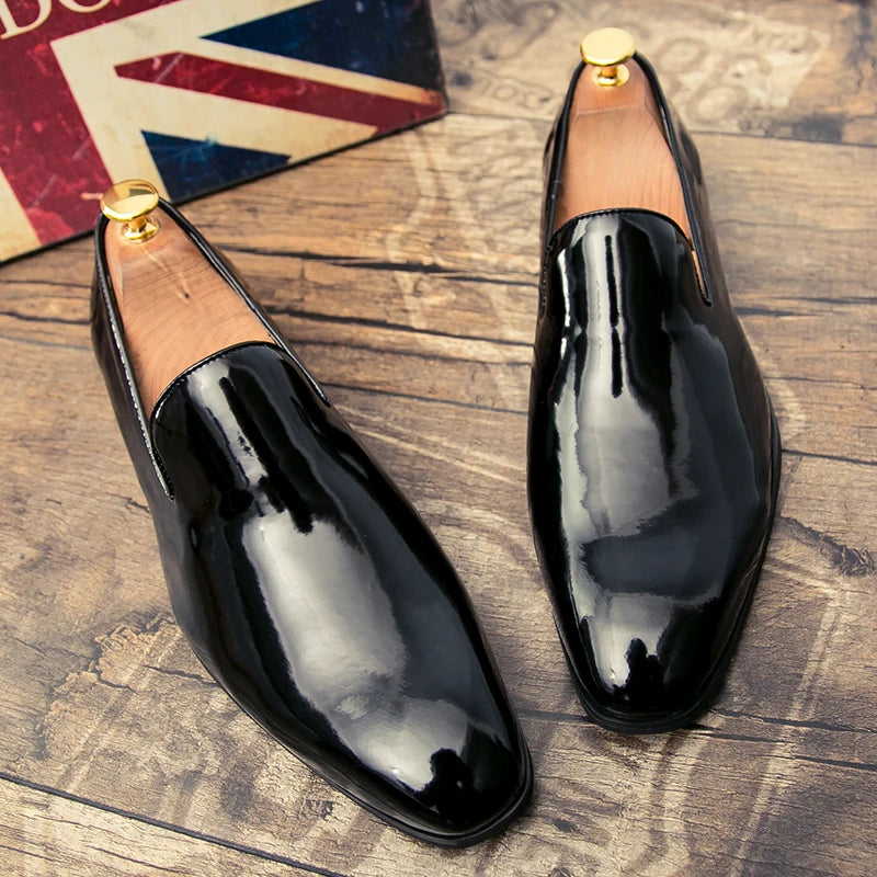 Aidase Fashion Business Men Leather Shoes Lacquered Leather Shoes Wedding Party Office High Genuine Shoes Black Gold Pointed Toe Loafer