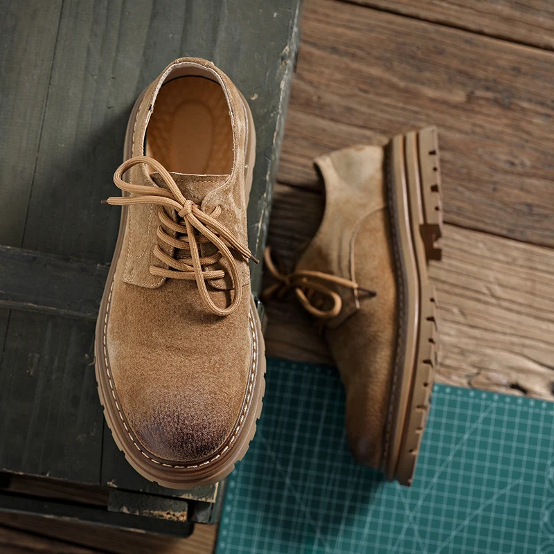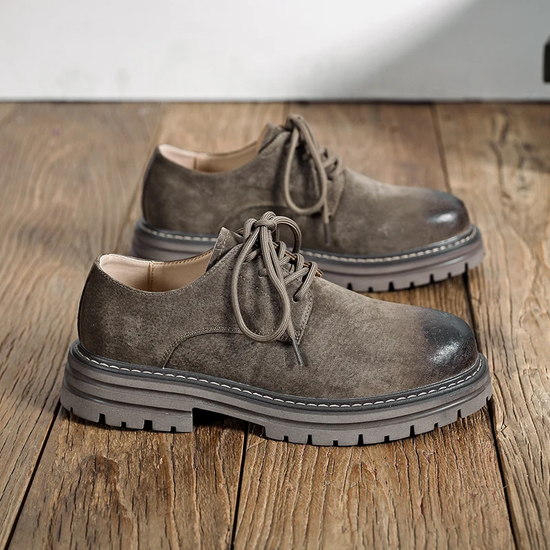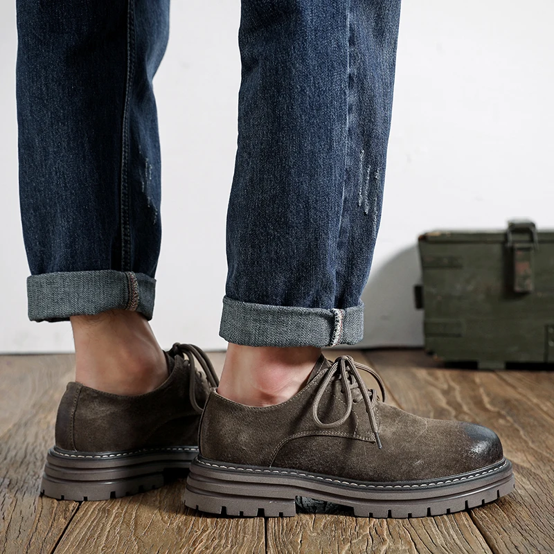 Aidase Fashion Men Leather Business Casual Lace Up Leather Shoes Outdoor Men Autumn Anti Slip Wear-resistant Comfortable Workwear Shoes