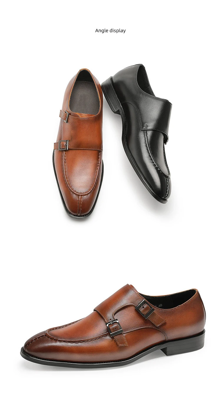 Autumn Winter New Genuine Leather Shoes Men First Layer Cowhide Business Dress Monk Shoes Square Toe Classic Men's Oxfords