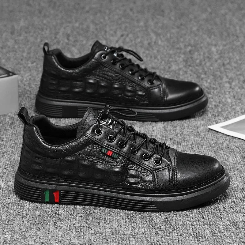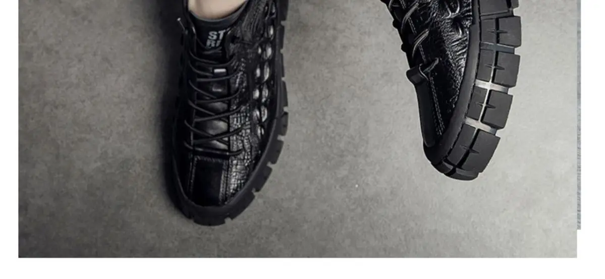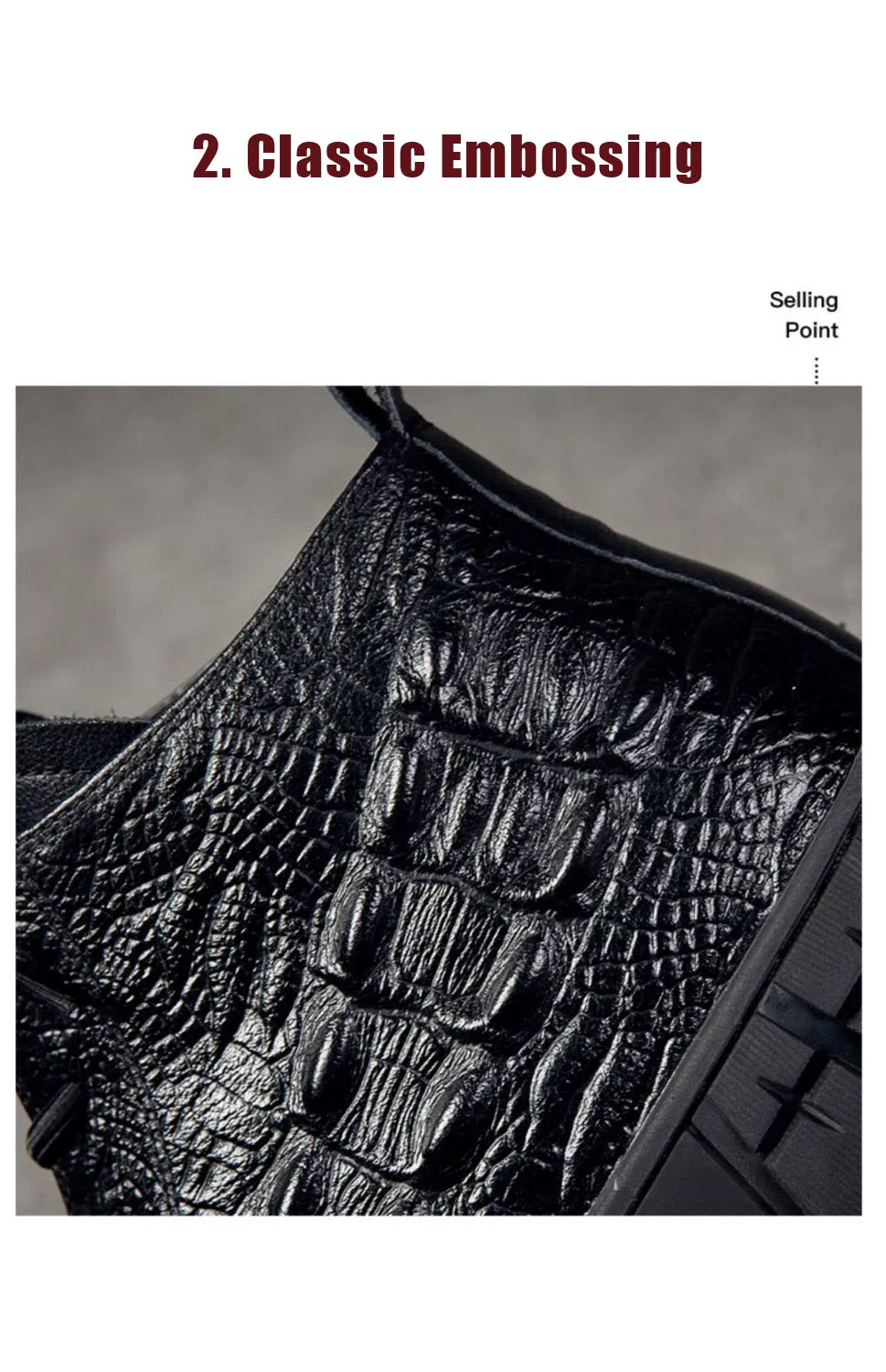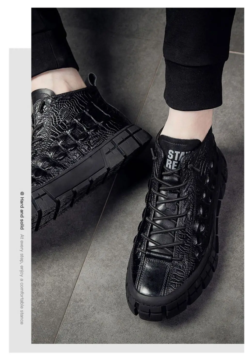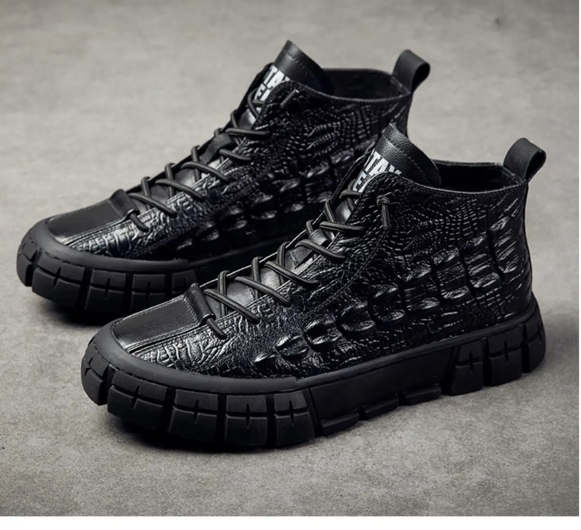 Black Uneven Leather Winter Boots Men Cool Casual Fur Boots for Youth Boys Alligator Print Platform Sneakers Men Autumn Shoes