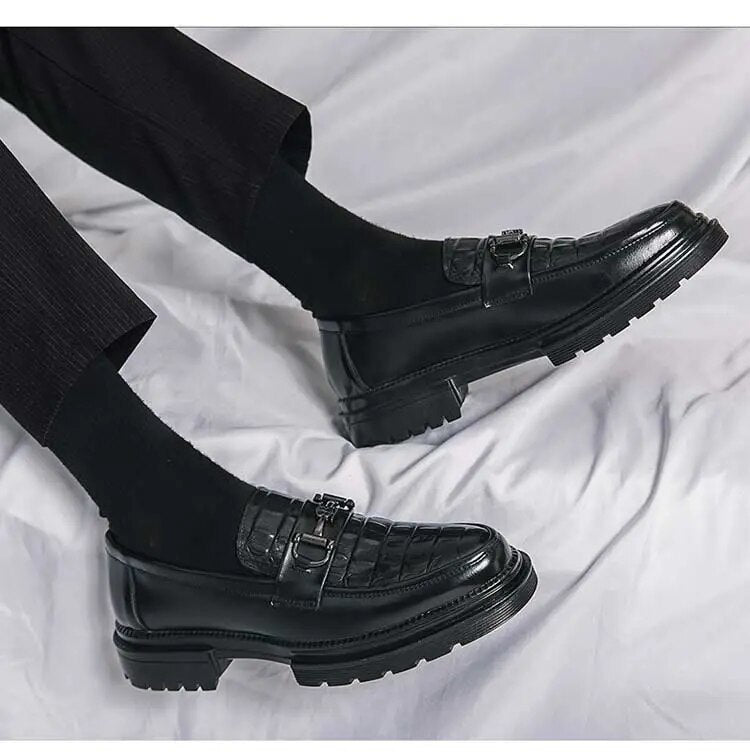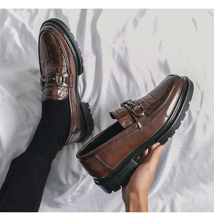 Luxury crocodile print Le Fou shoes high quality leather fashion men's shoes rubber sole brown casual leather shoes