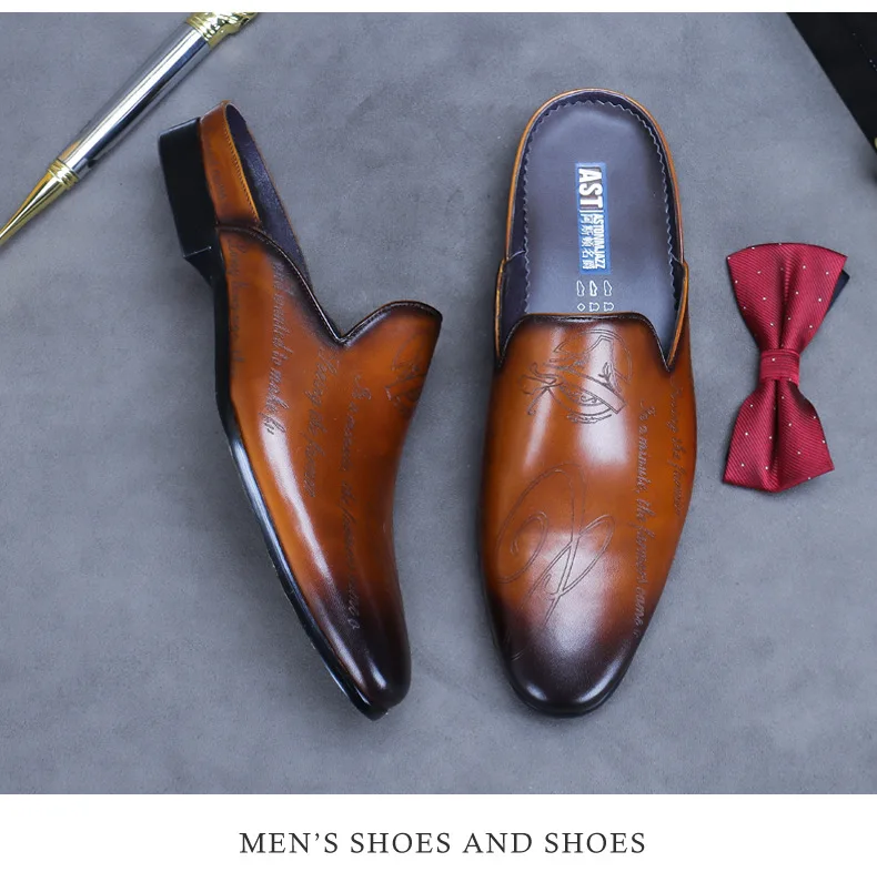 Luxury Men's Slippers Genuine Leather Loafers Men Moccasins Casual Non-slip Man Shoes Italian Summer Fashion Half Shoes For Men