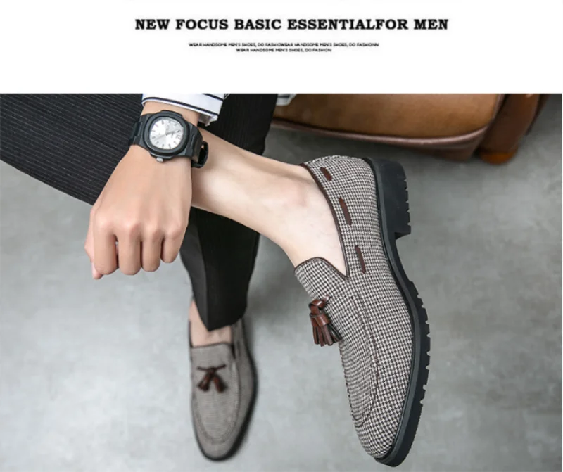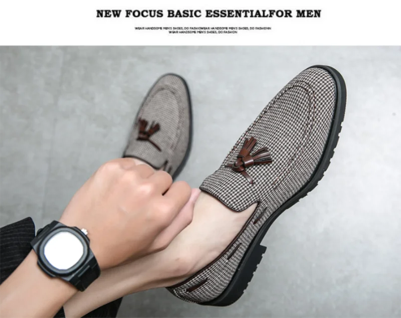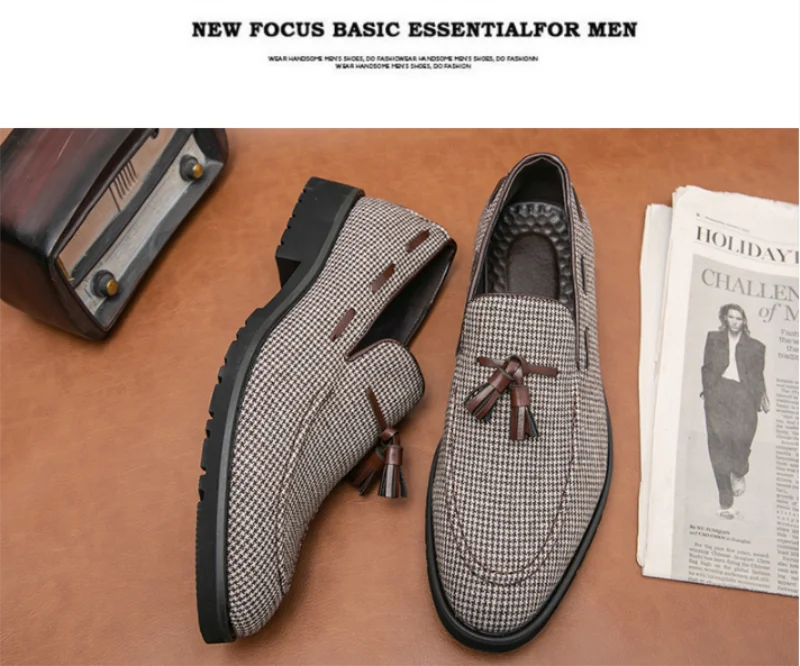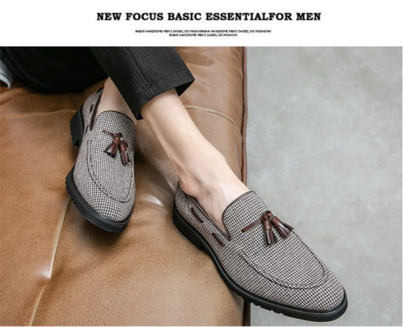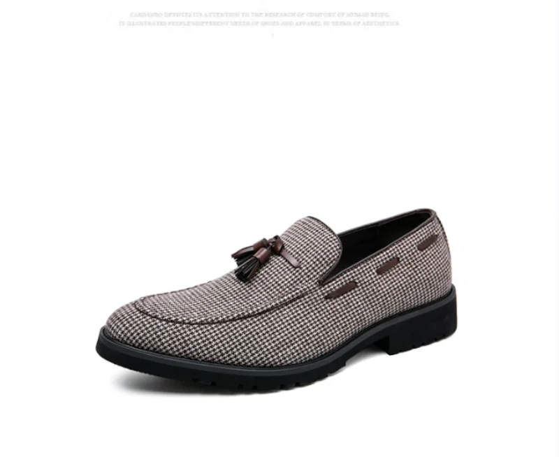 Men Shoes Plaid Canvas Fashion Business Casual Daily Wild Party Classic Retro PU Tassel One Pedal British Loafers