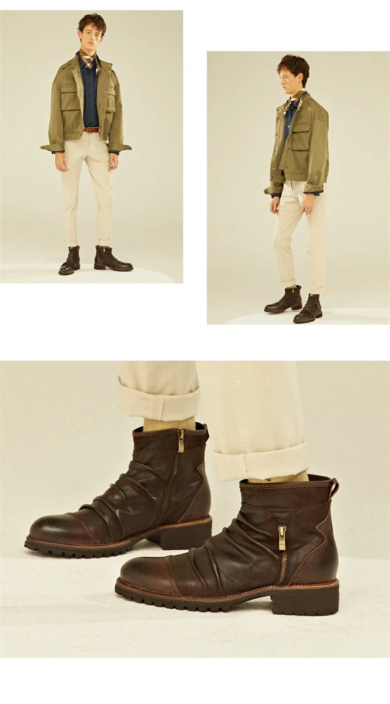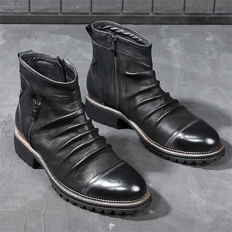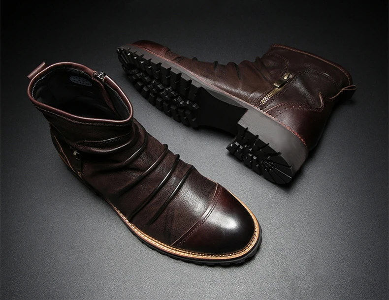 New Autumn Men Leather Boots Fashion Retro Zipper Ankle Booties Breathable Big Size Male Motorcycle Boots Party Shoes
