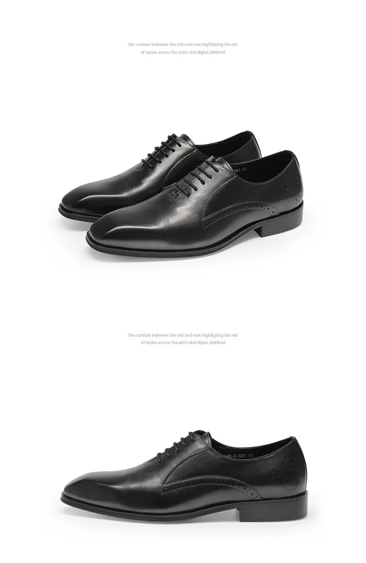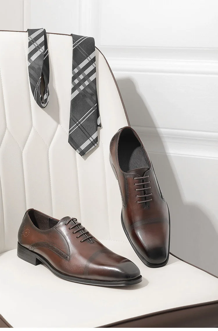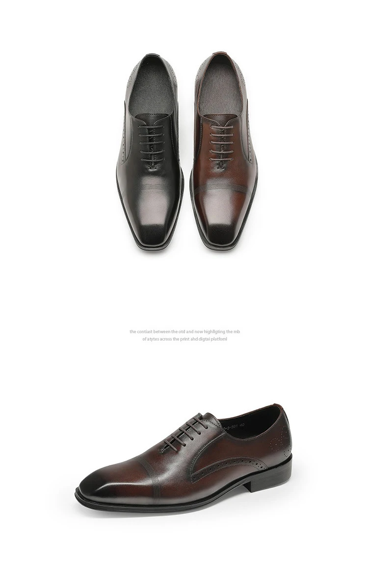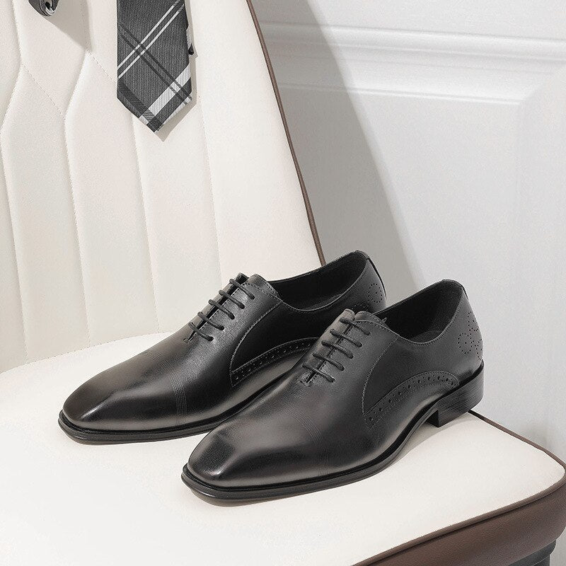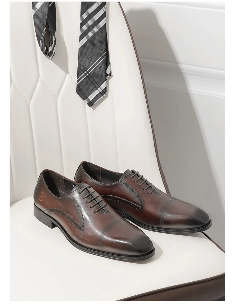 New Men's Business Formal Wear Shoes First Layer Cowhide Lace-Up Small Square Toe Genuine Leather Shoes Men