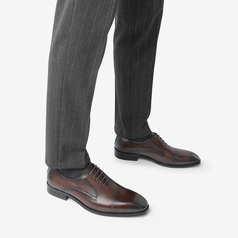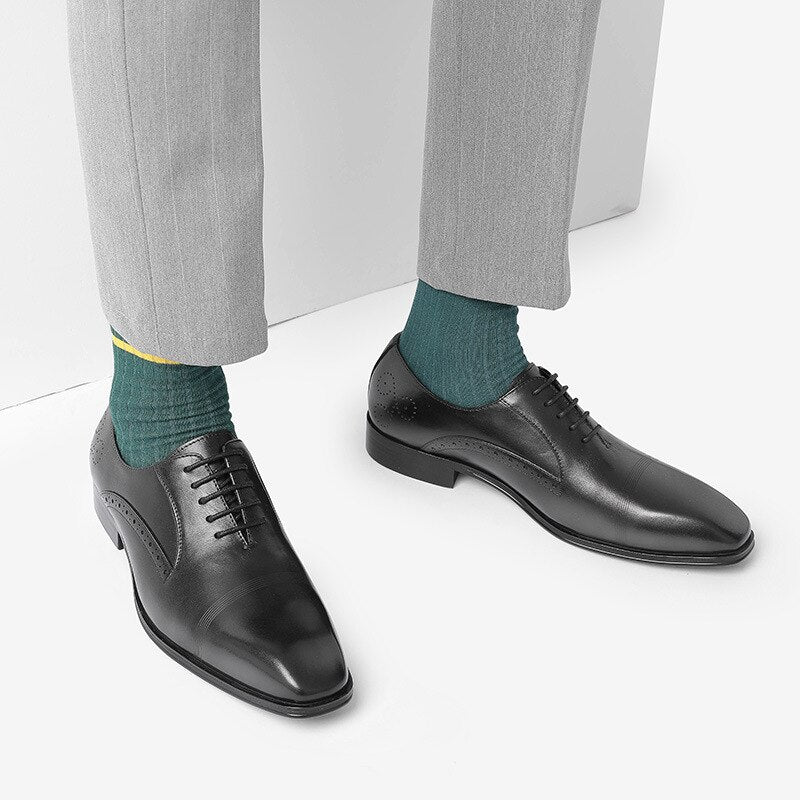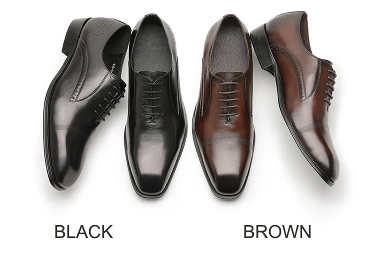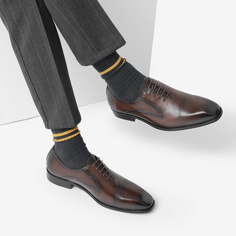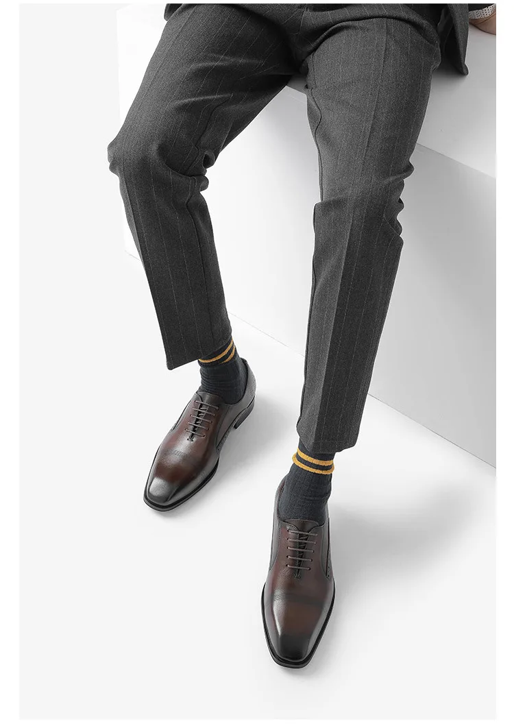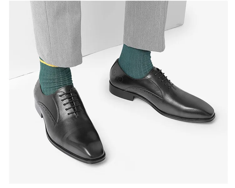 New Men's Business Formal Wear Shoes First Layer Cowhide Lace-Up Small Square Toe Genuine Leather Shoes Men