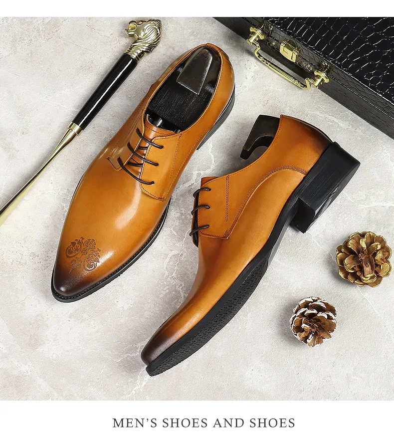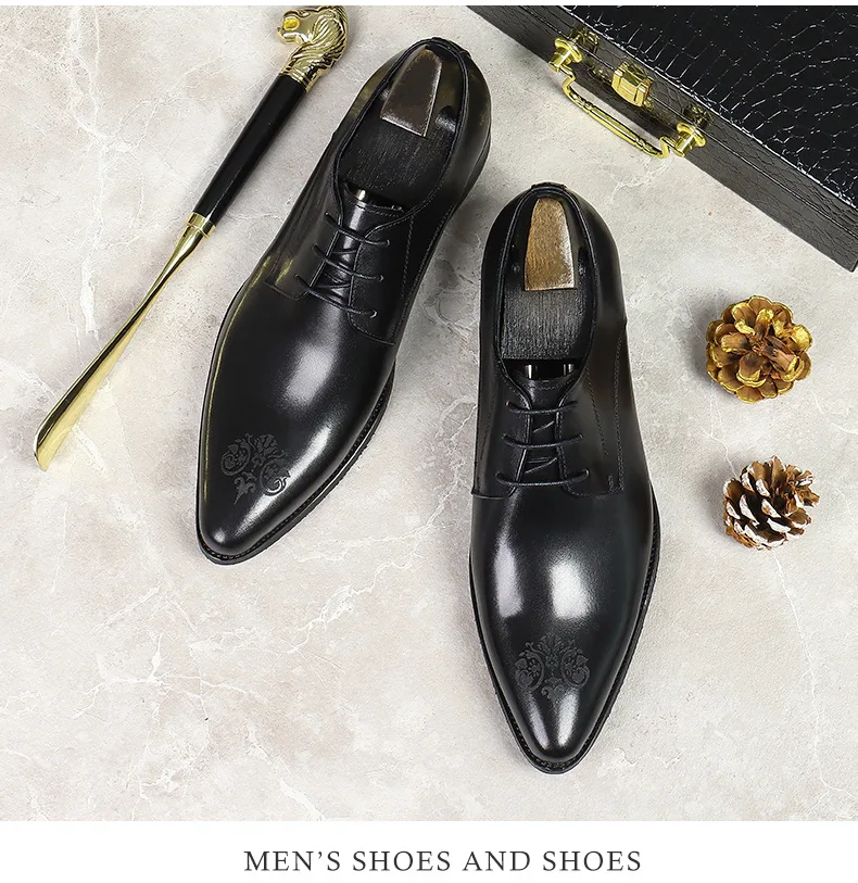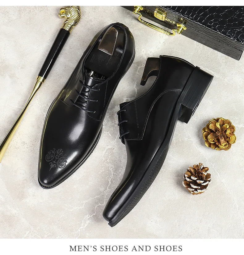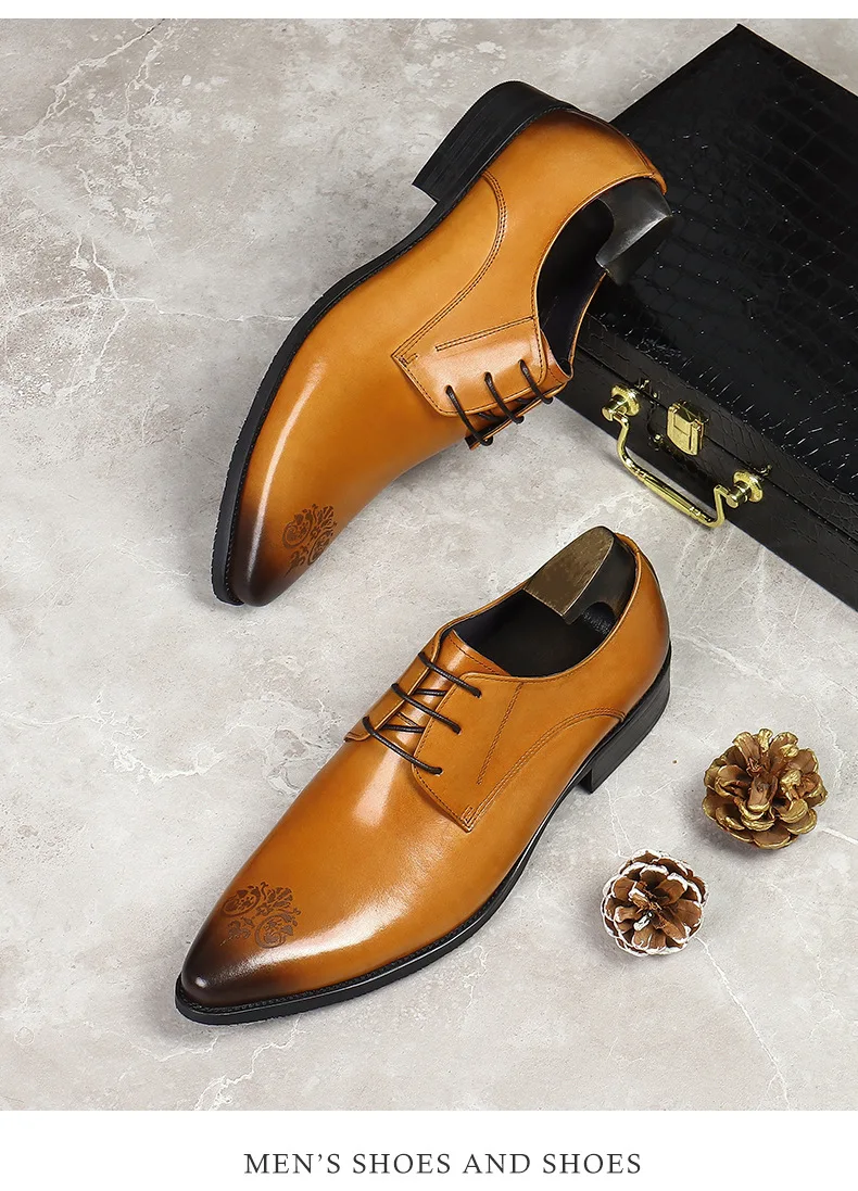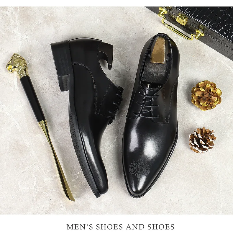 Summer New Men's Leather Shoes Non-slip British Style Handmade Leather Shoes Wedding Shoes Business Formal Dress 37-46