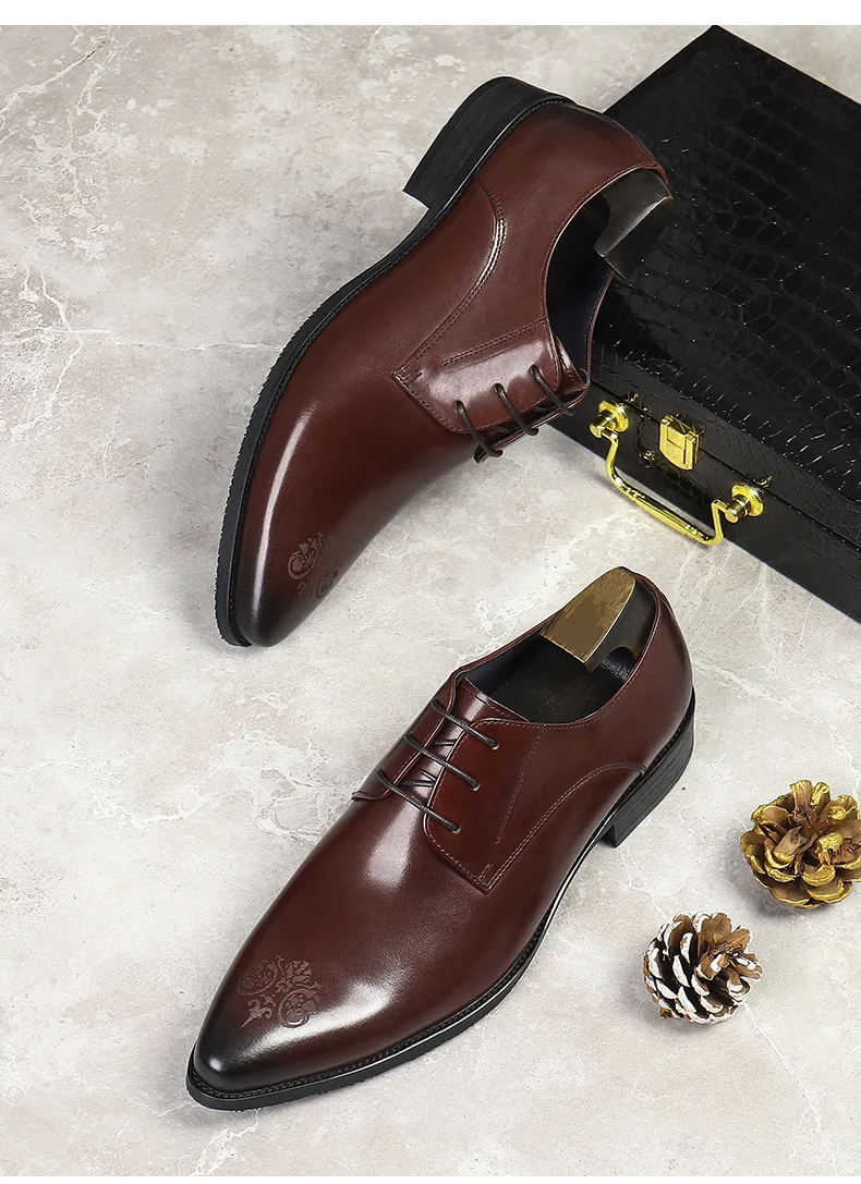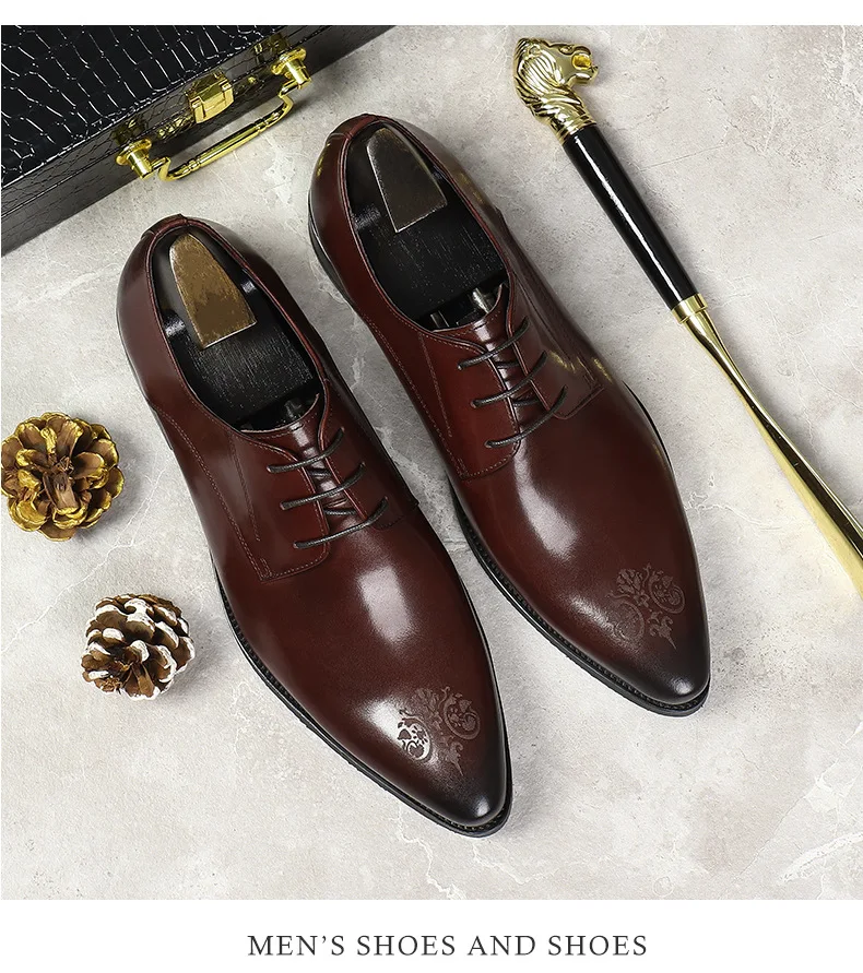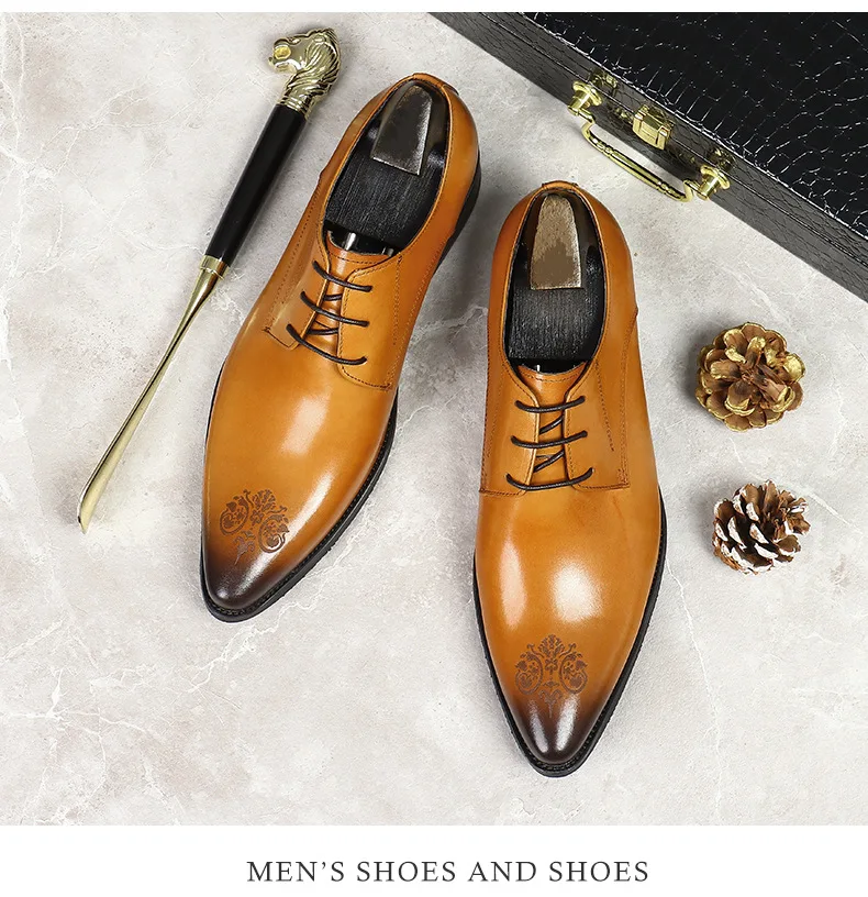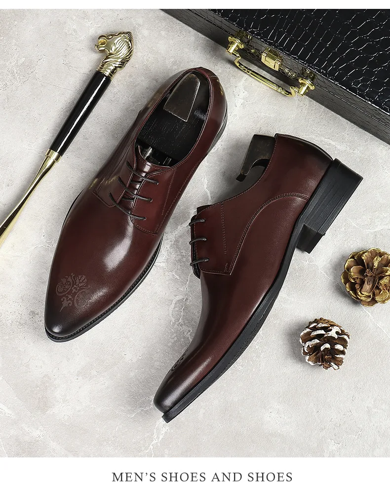 Summer New Men's Leather Shoes Non-slip British Style Handmade Leather Shoes Wedding Shoes Business Formal Dress 37-46