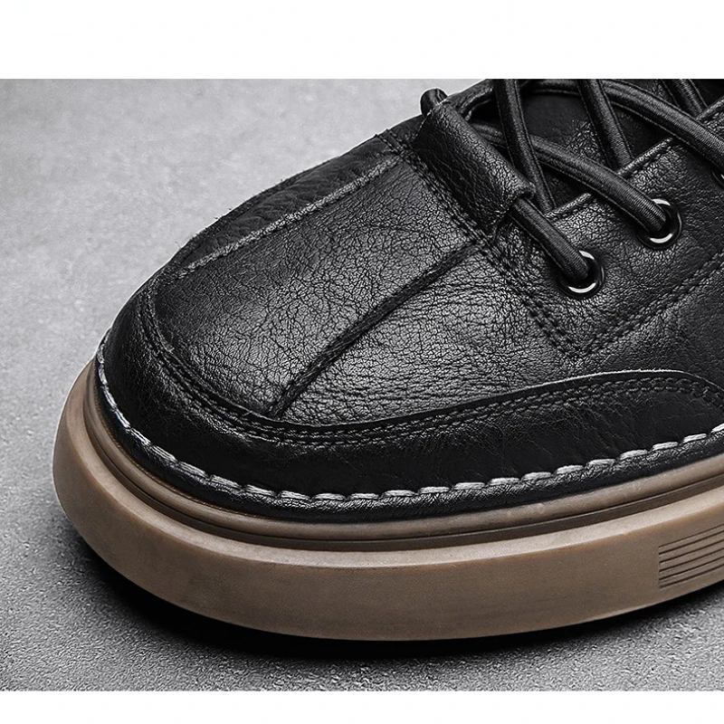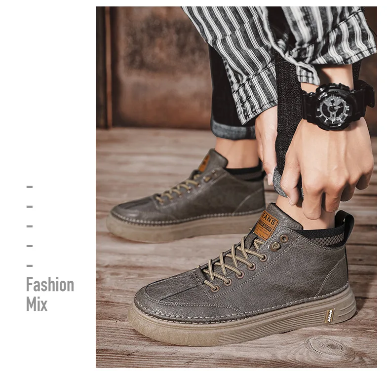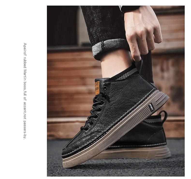 Trend Men's Casual Leather Shoes New Shoes for Men High-top Black Casual Male Sneakers Platform Ankle Boots Tênis Masculino
