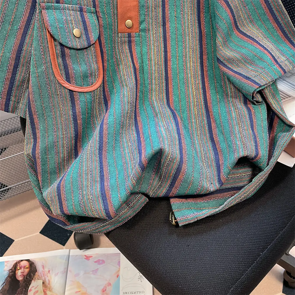 2024 New Summer Hong Kong Style Niche Trendy Brand Casual Loose Oversized Lapel Contrasting Stripes Short Sleeved Polo Shirt Top