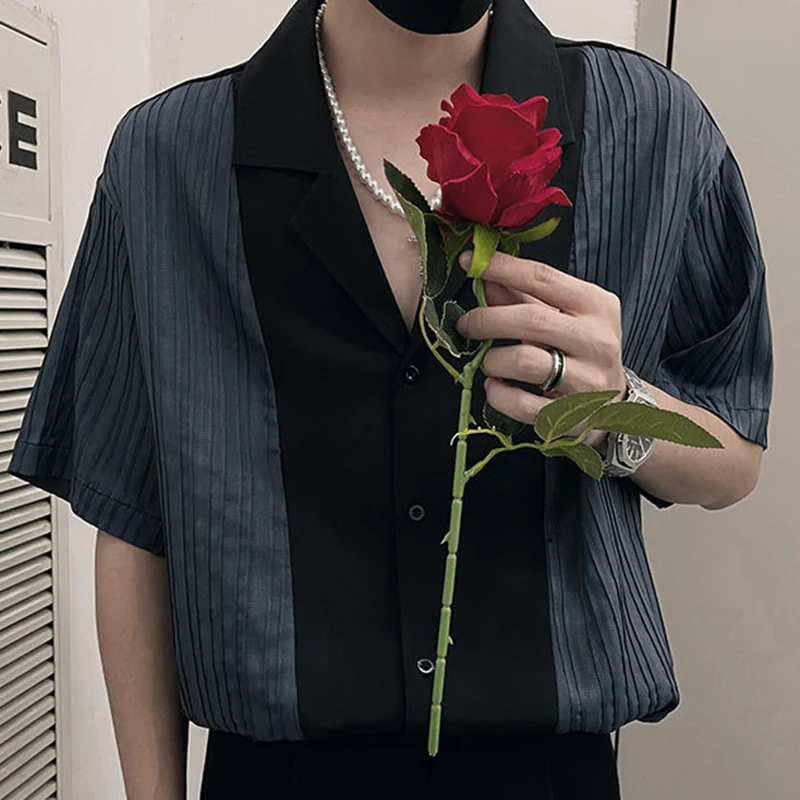 Aidase Fashion Lapel Button Spliced Loose Korean Shirts Men's Clothing 2024 Summer New Casual Tops Short Sleeve All-match Shirt