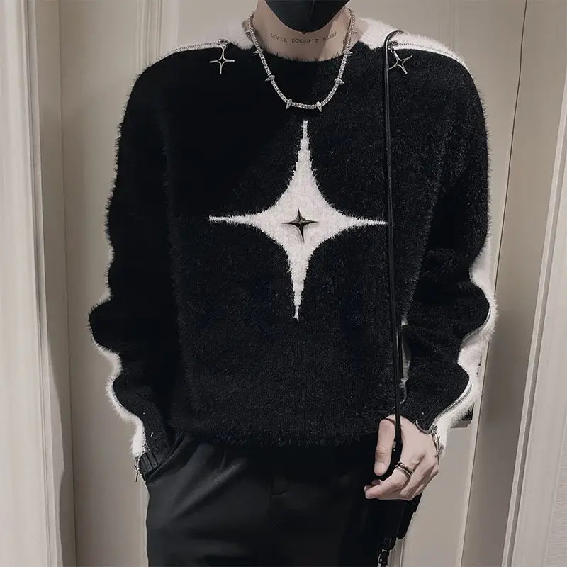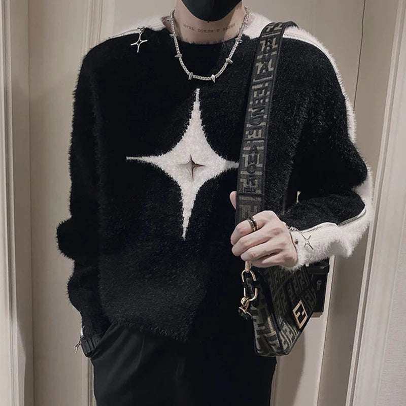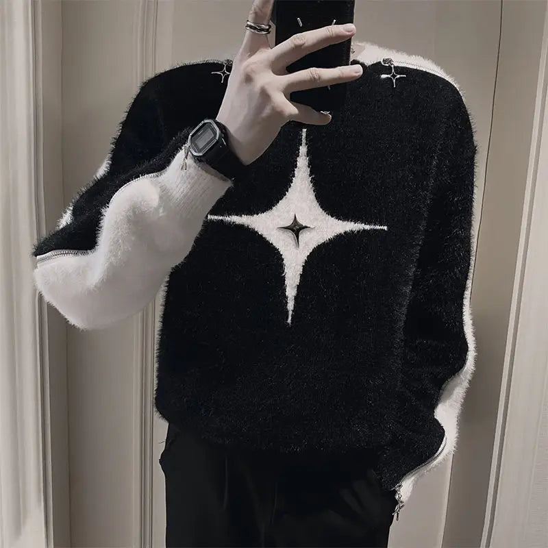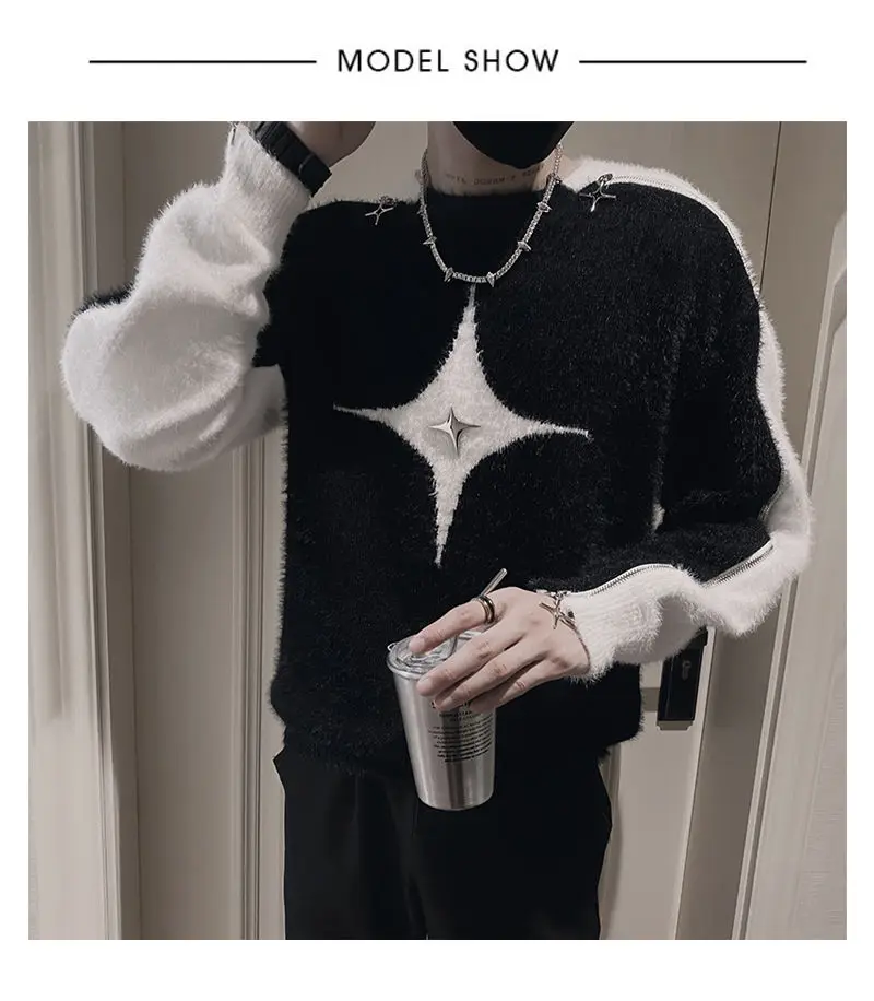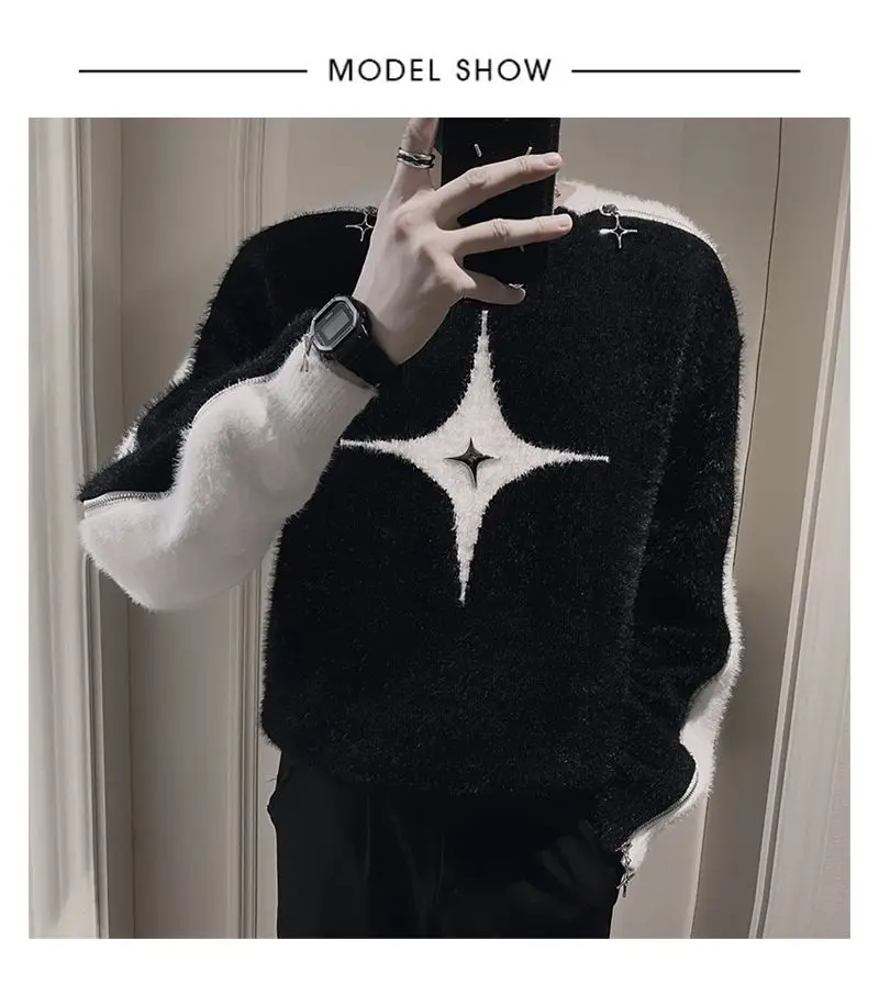 Aidase Fashion O-Neck All-match Spliced Zipper Sweaters Men's Clothing 2024 Autumn Winter New Loose Korean Pullovers Young Style Tops