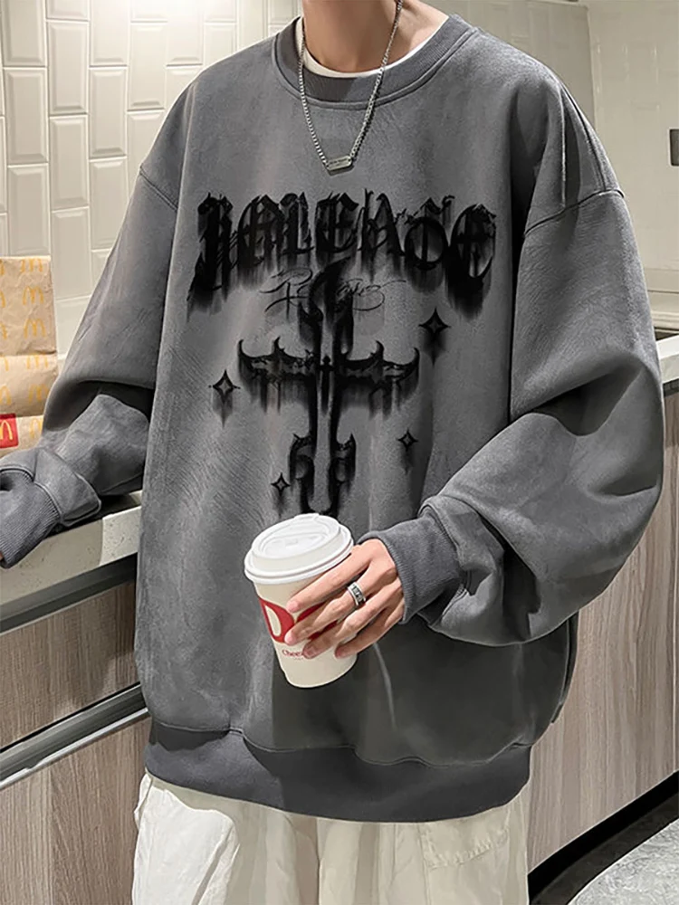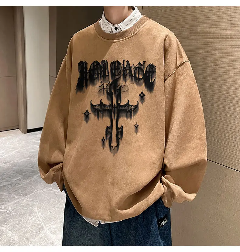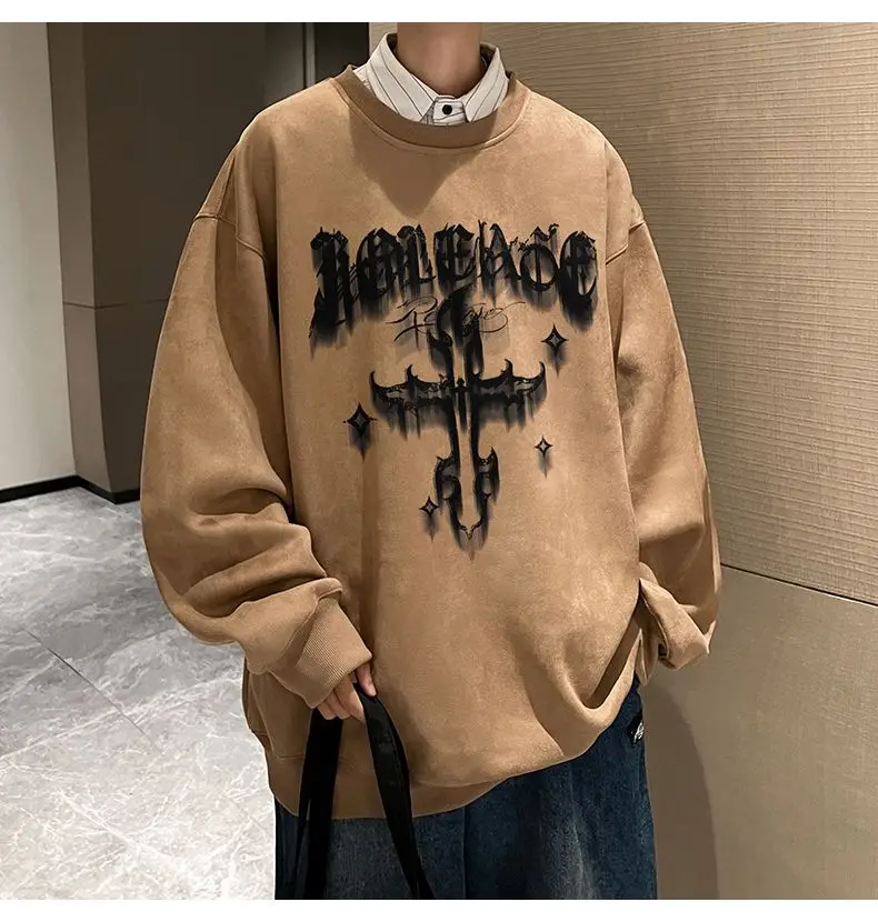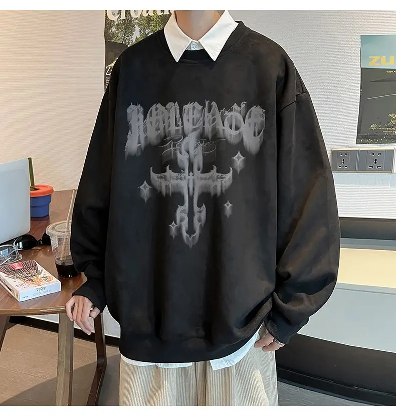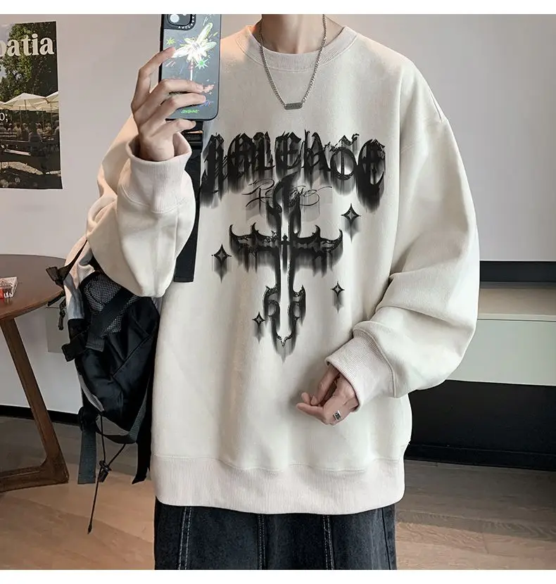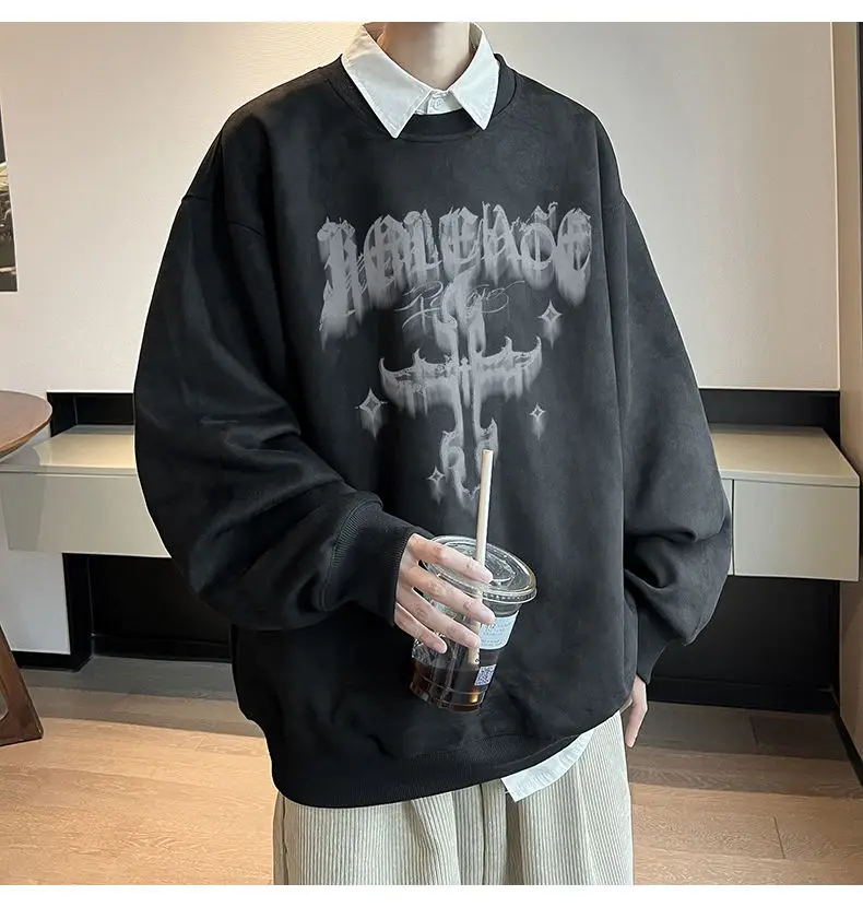 Aidase Fashion O-Neck Long Sleeve Printed Letter Sweatshirts Men's Clothing 2024 Autumn New Loose All-match Tops Casual Sweatshirts