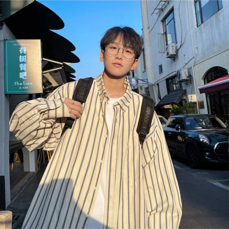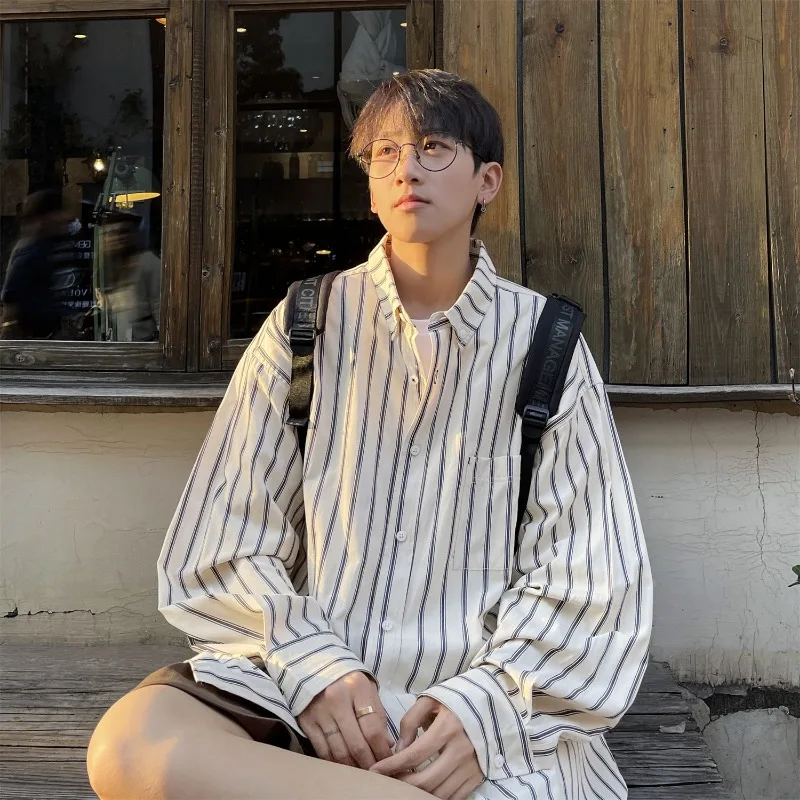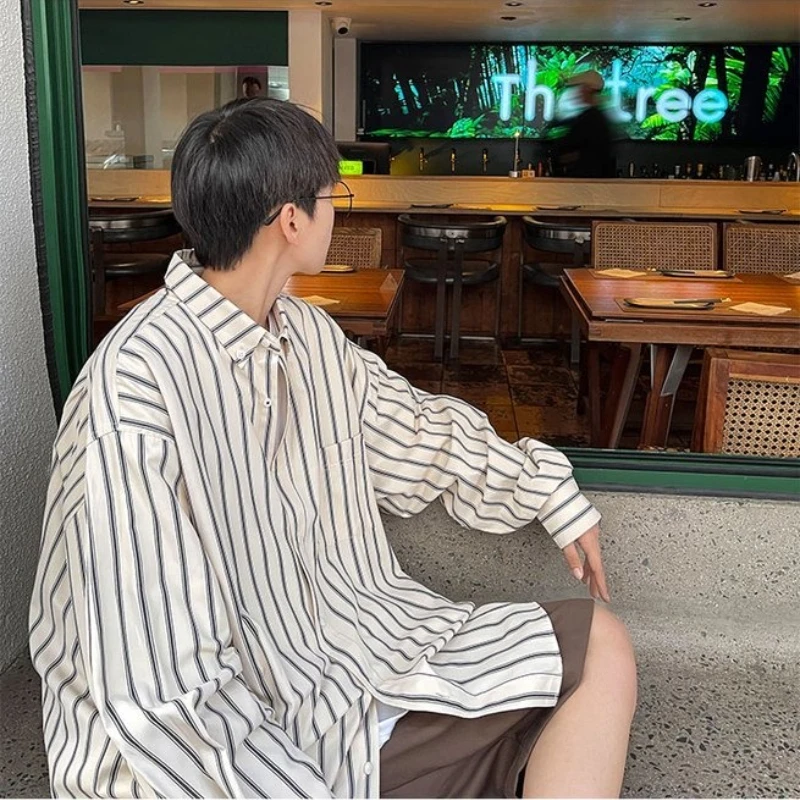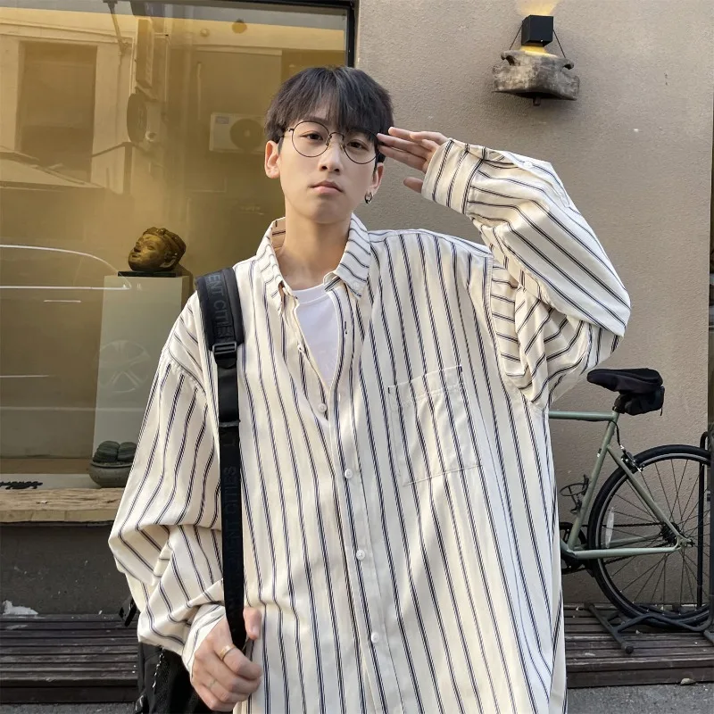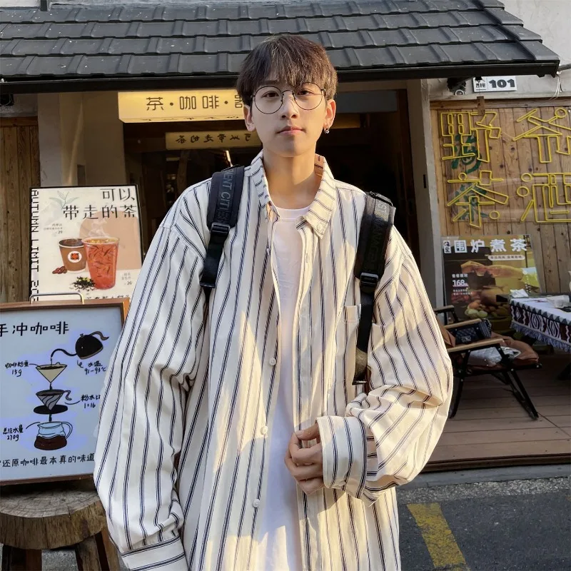 Aidase Japanese Literary Style Striped Shirt Men 2024 New Fashion High-end Long-sleeved Shirt Handsome Trendy Loose Casual Jacket Chic