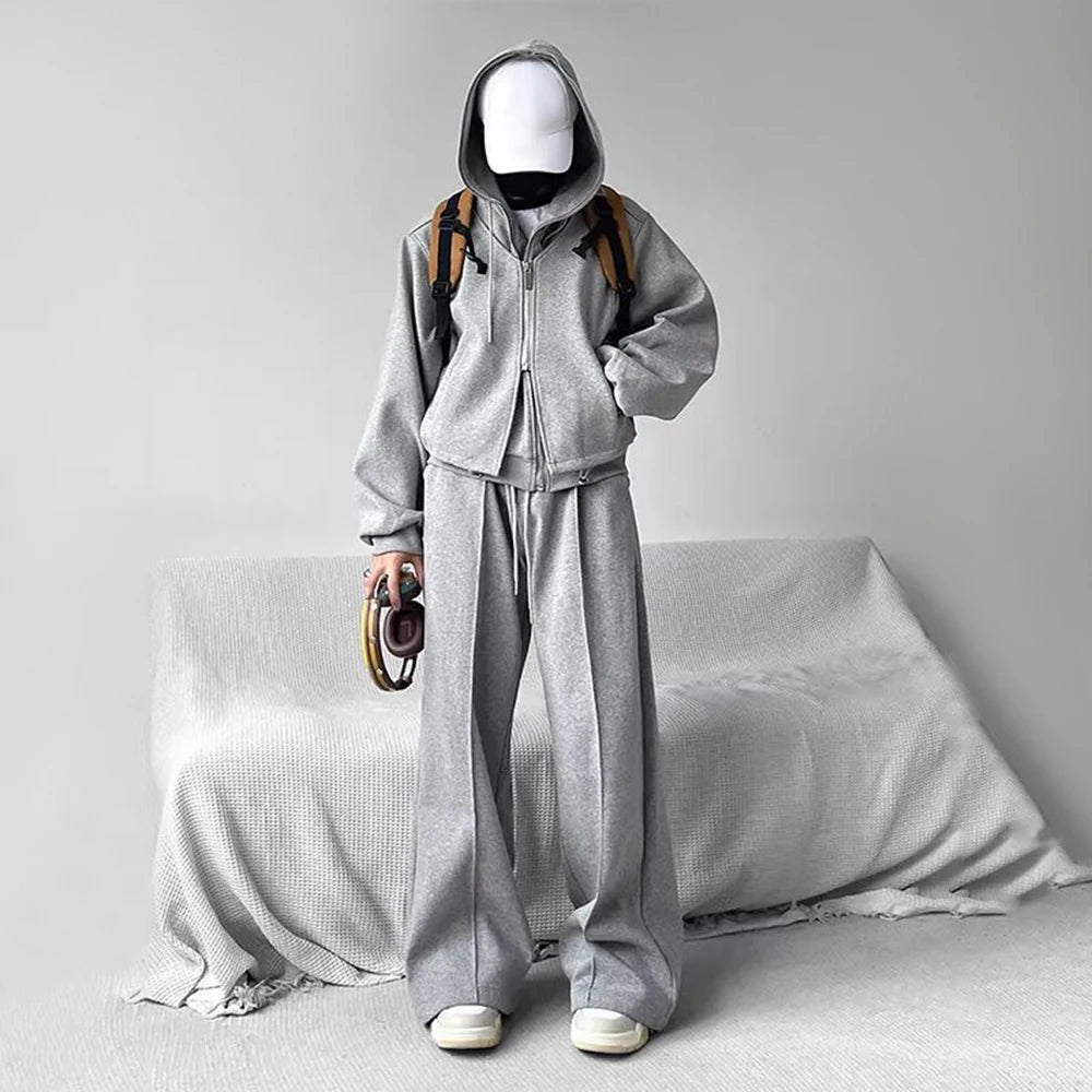 Mens Casual Niche Wide Leg Pants Genderless 2024 New American Streetwear Versatile Simple Solid Color Floor-Mopping Pants Unisex