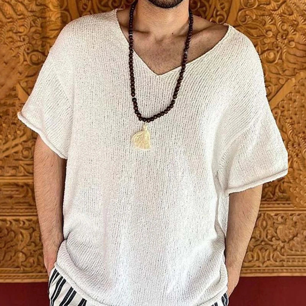 Mens Hollow Casual Knitted Tops Genderless 2024 Summer New Fashion Vacation White Loose Breathable Short Sleeve T-Shirt Unisex