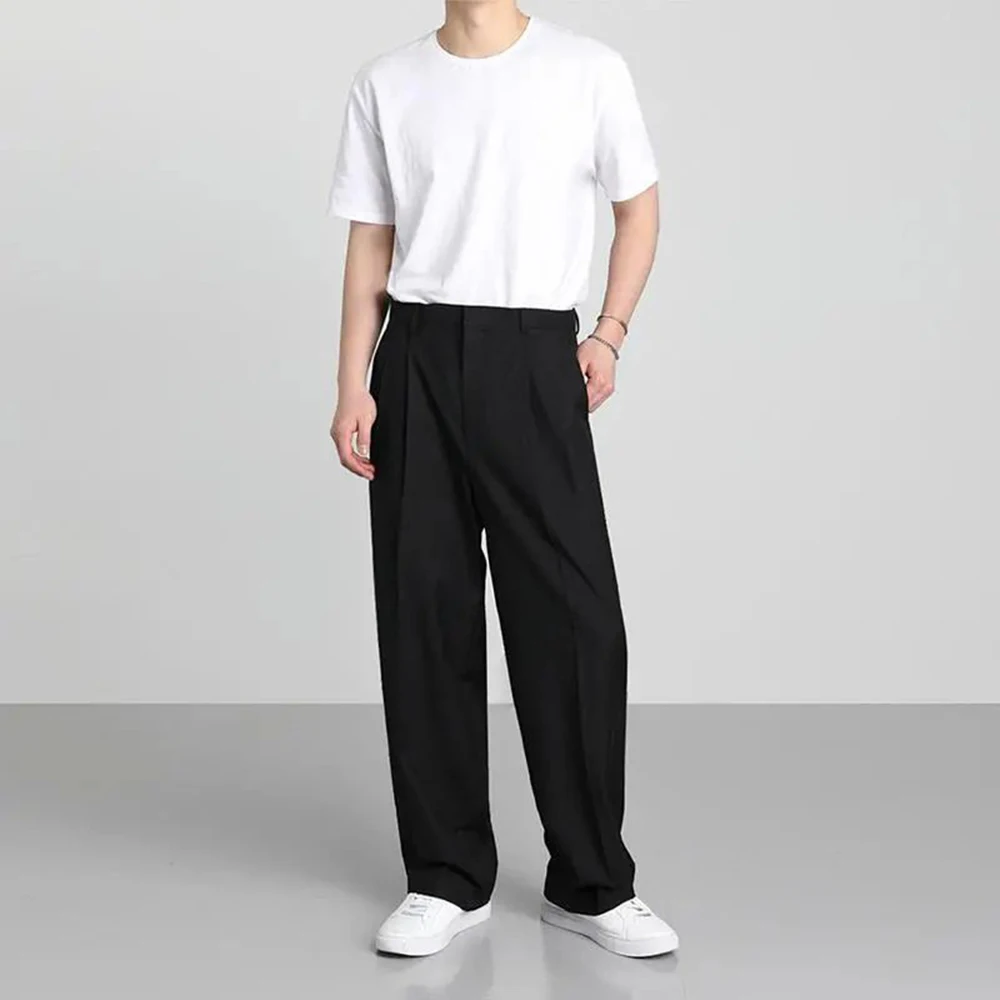 Suit Trousers For Men 2024 Autumn New Korean Style Loose Straight Trend Versatile Elegant Casual Drape Solid Wide Leg Trousers