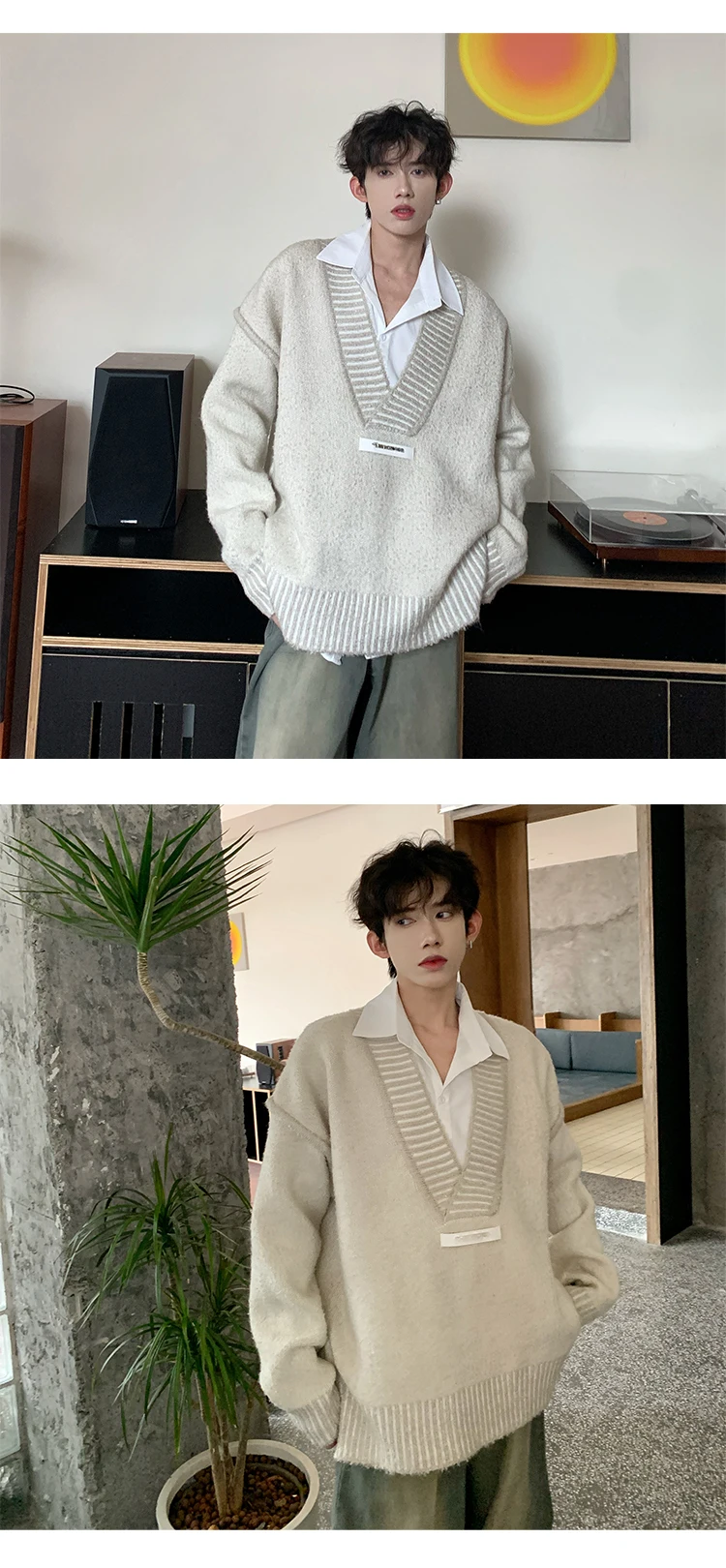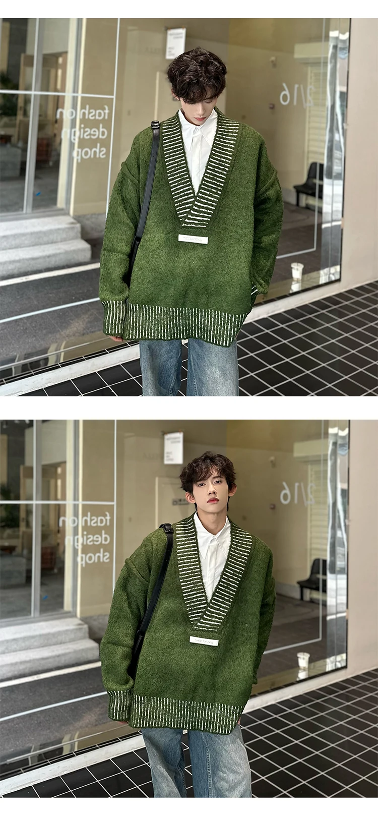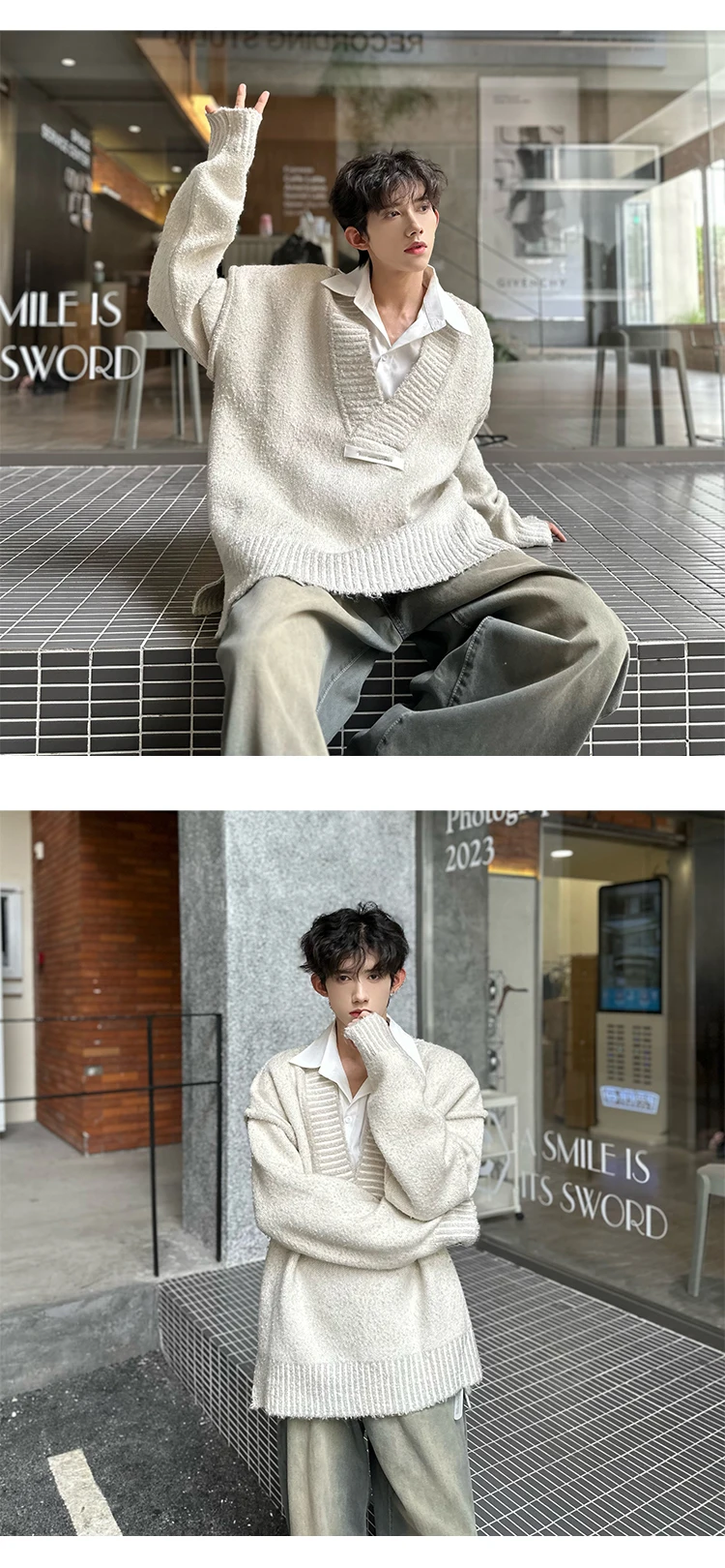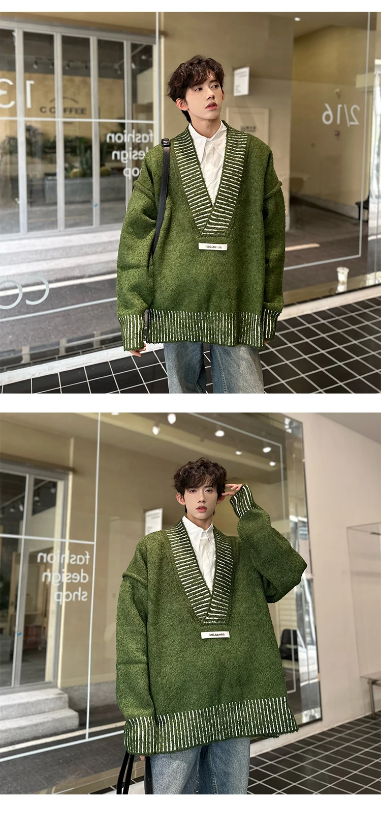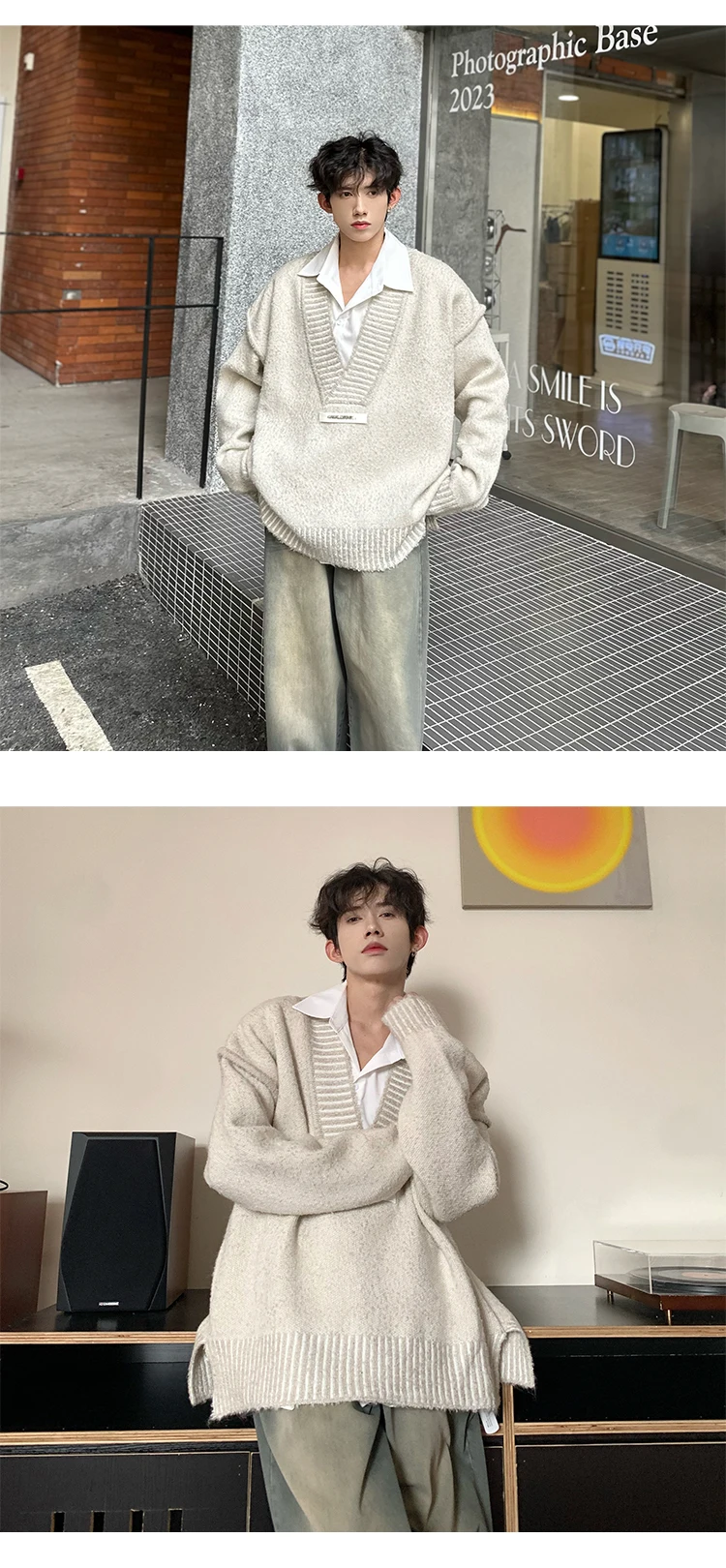 Aidase Versatile Men's Wear Pullovers New Chic V-neck Sweater Trend Korean Style Male Top 2024 Autumn Winter Oversize 9C3683