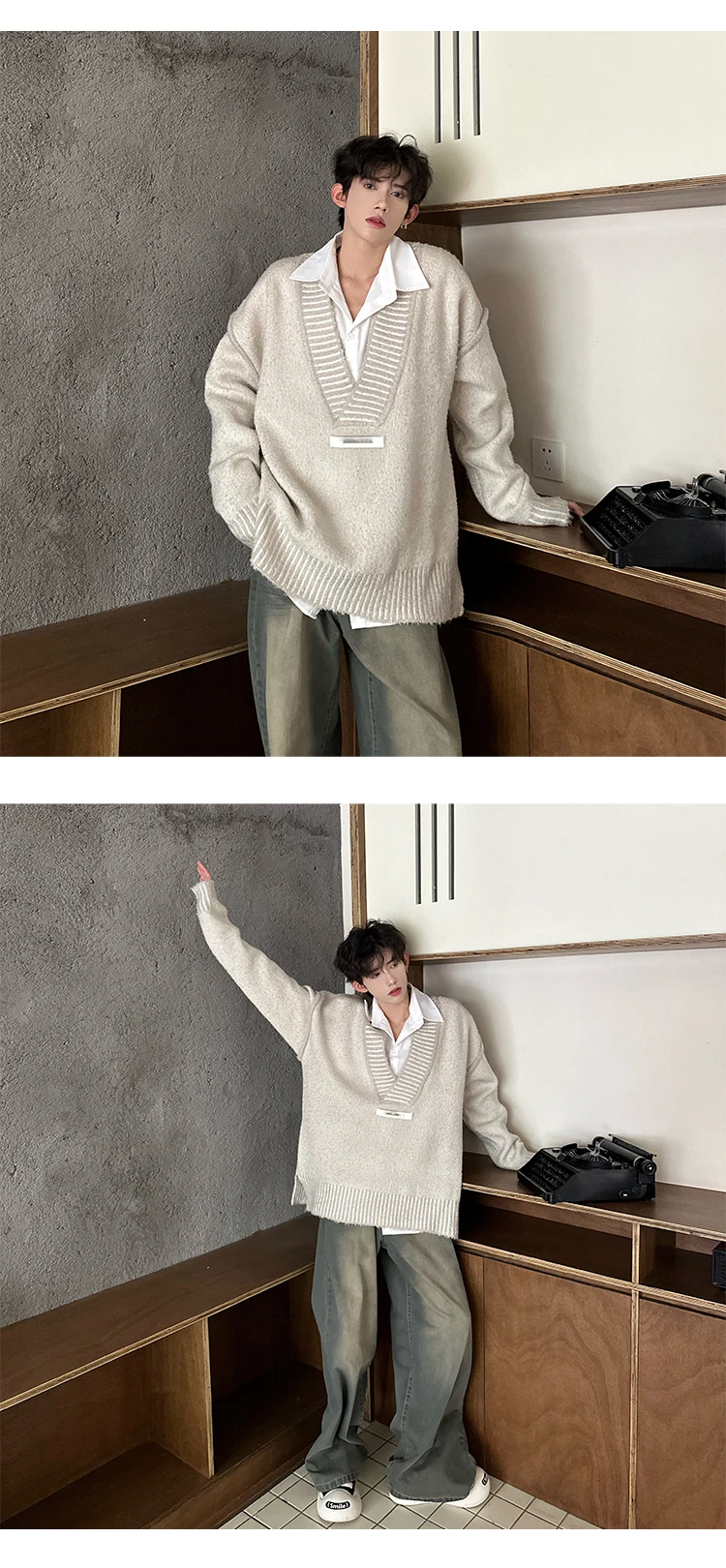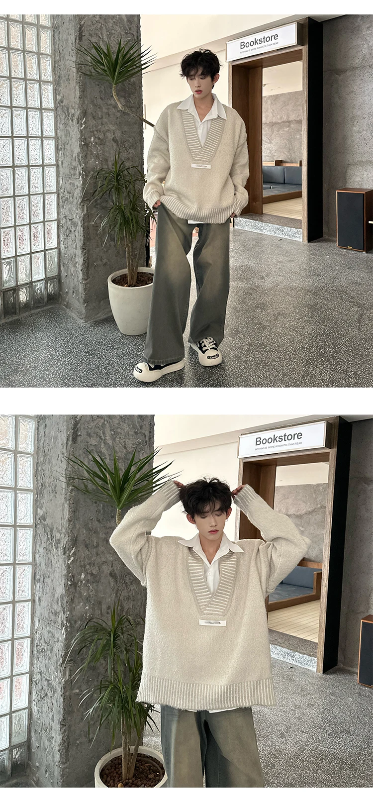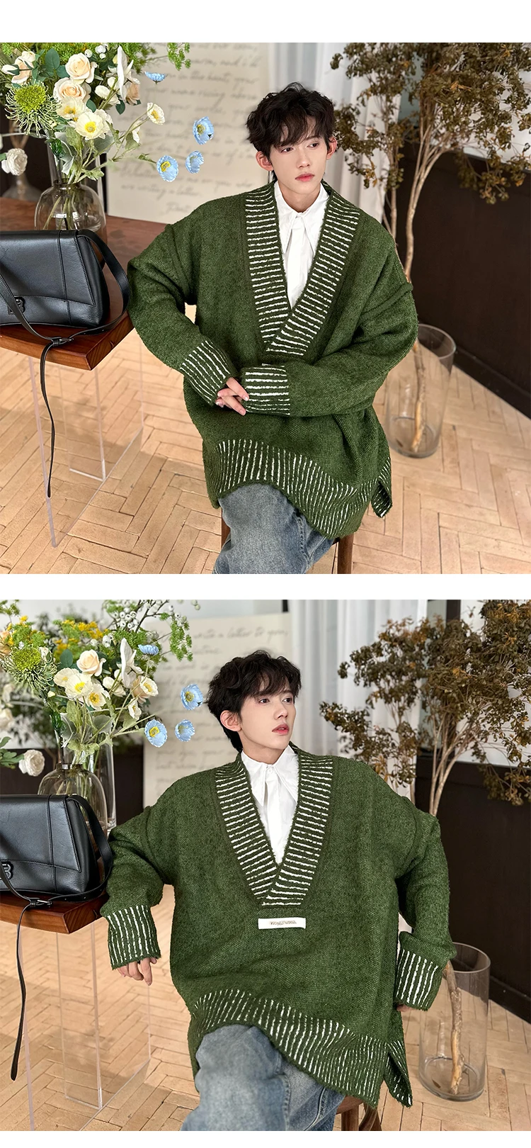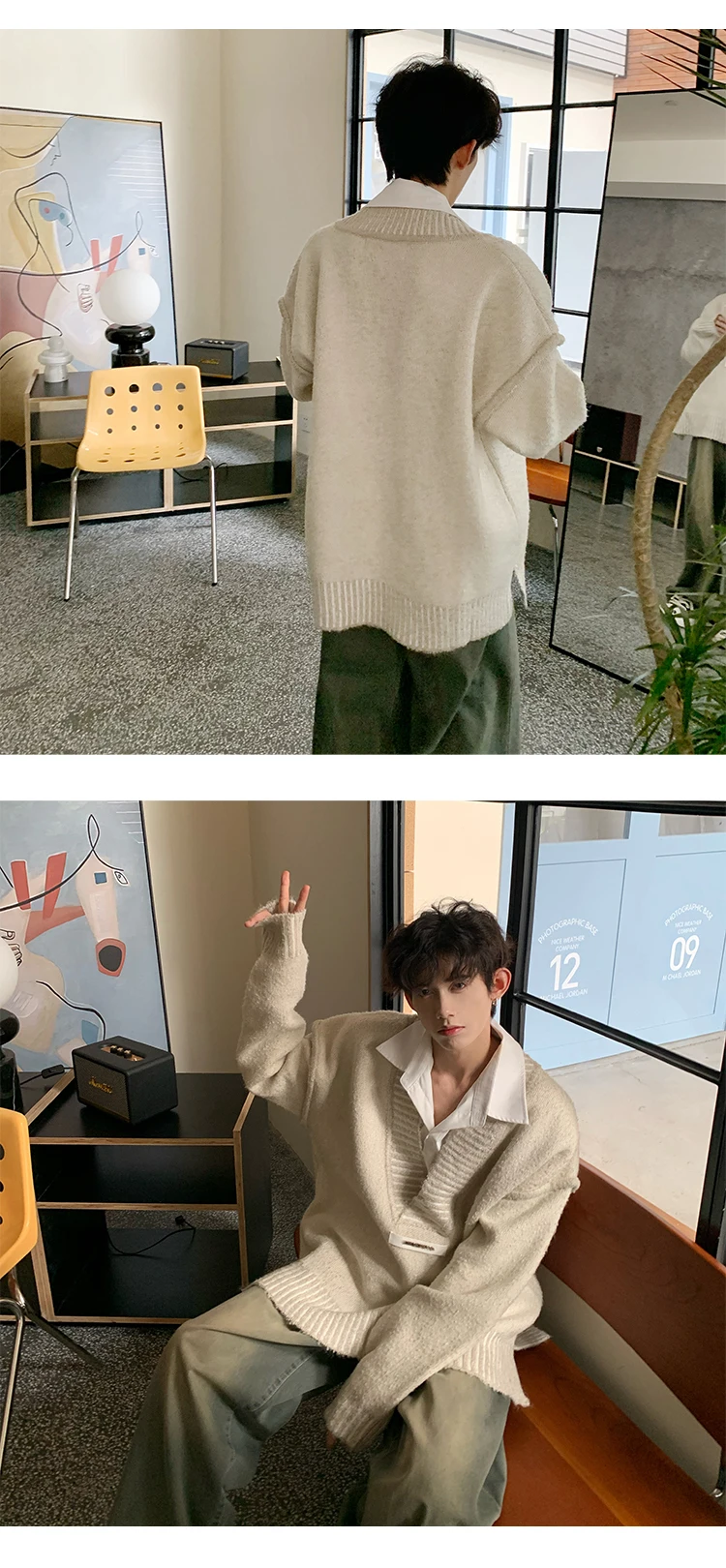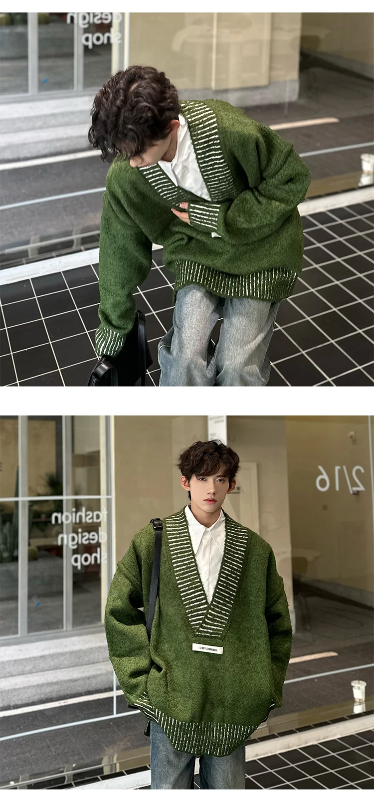 Aidase Versatile Men's Wear Pullovers New Chic V-neck Sweater Trend Korean Style Male Top 2024 Autumn Winter Oversize 9C3683