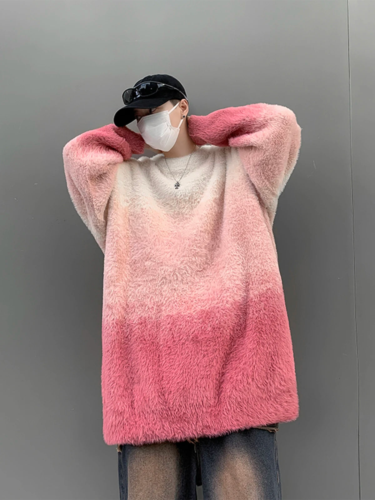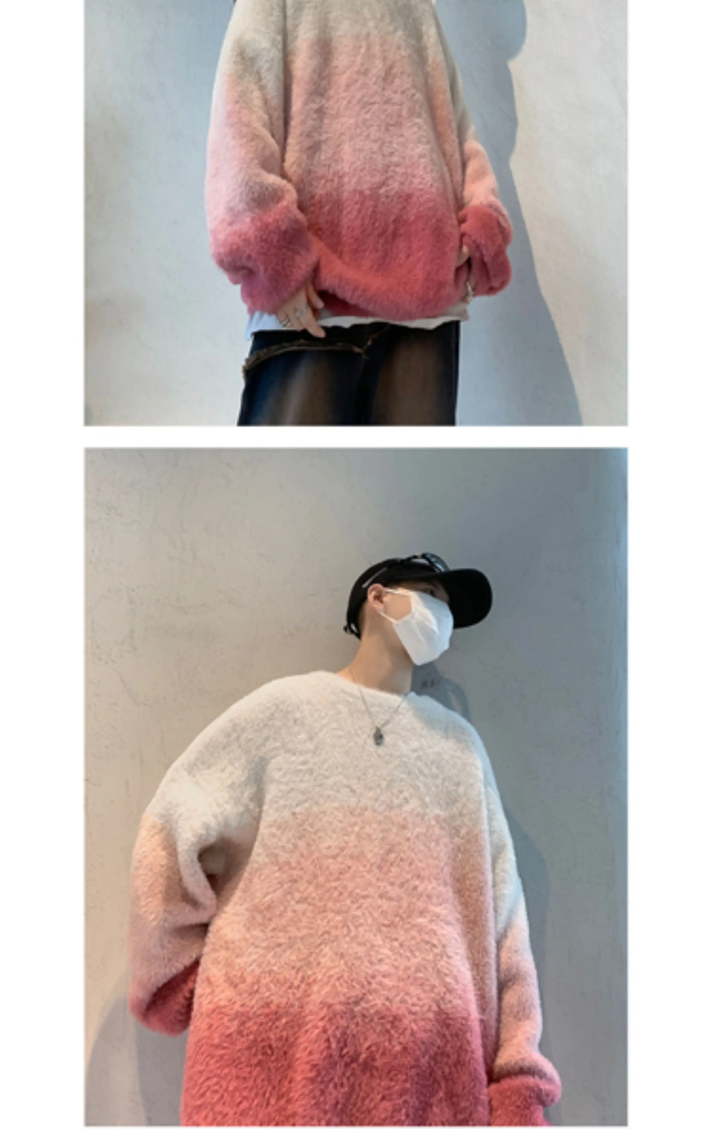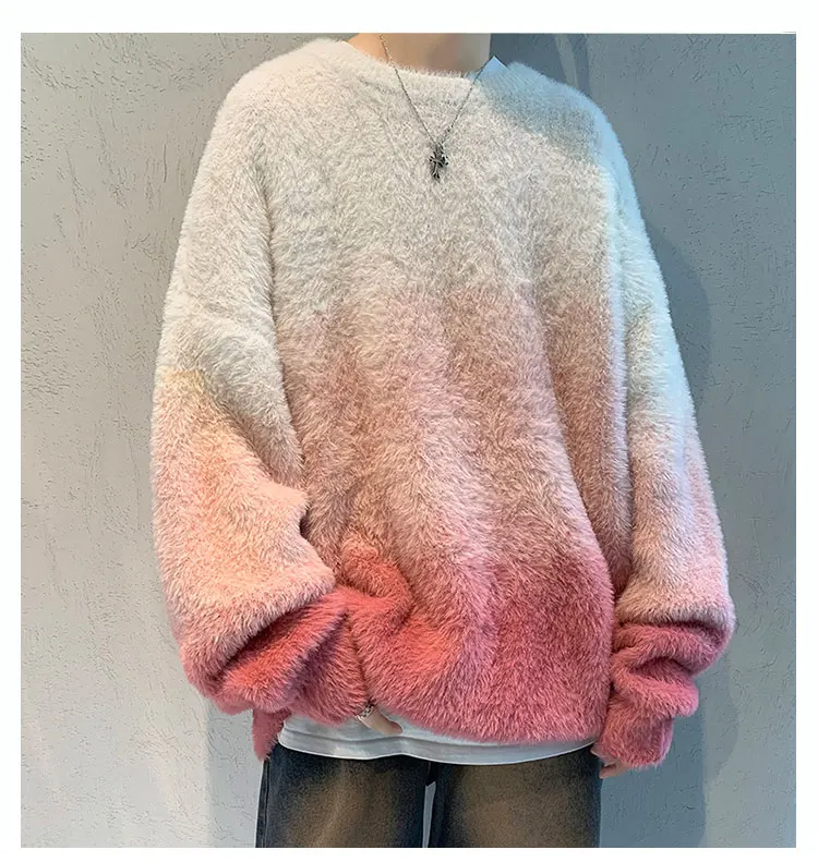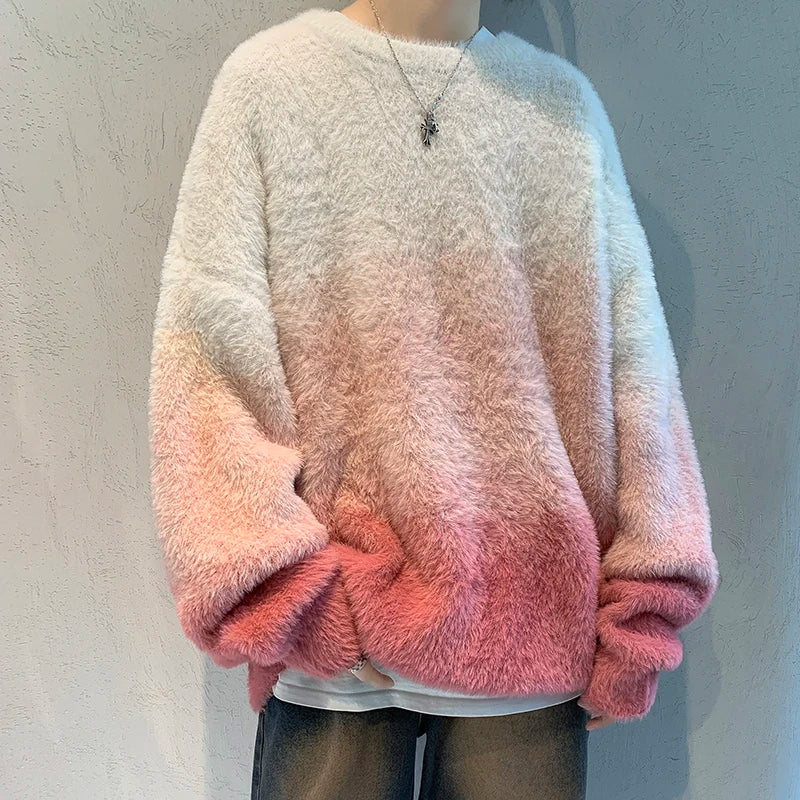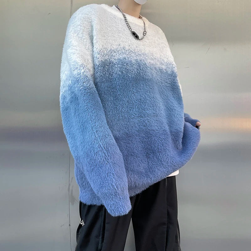 Aidase 2024 Men Autumn Winter New Imitation Mink Sweater Top Male Gradient Round Neck Jumpers Mens Long Sleeve Warm Knitted Tops