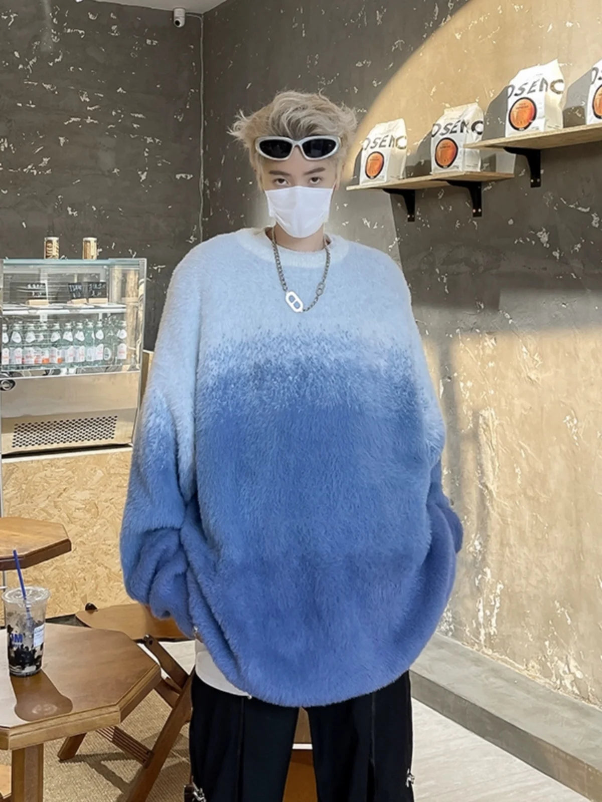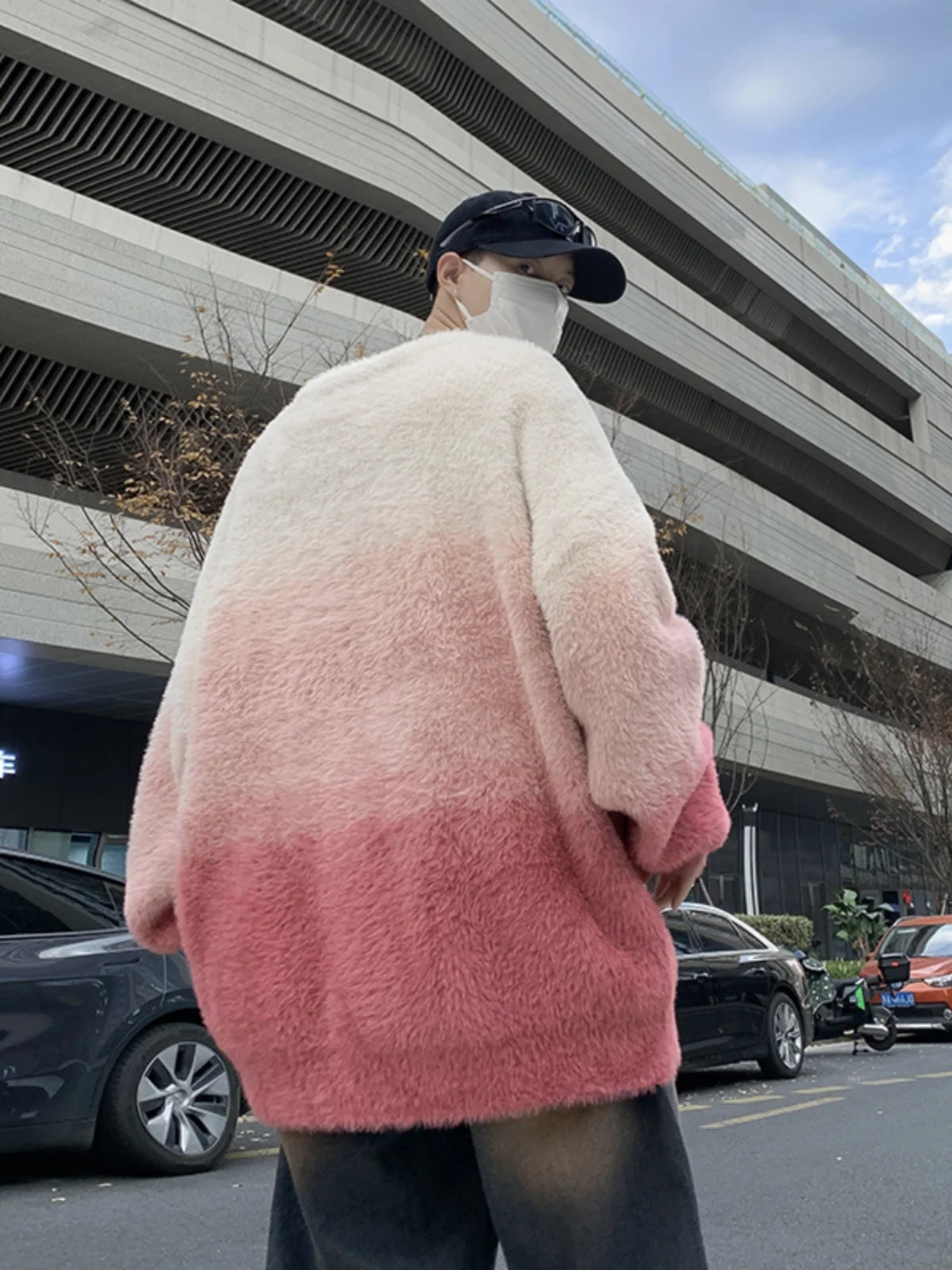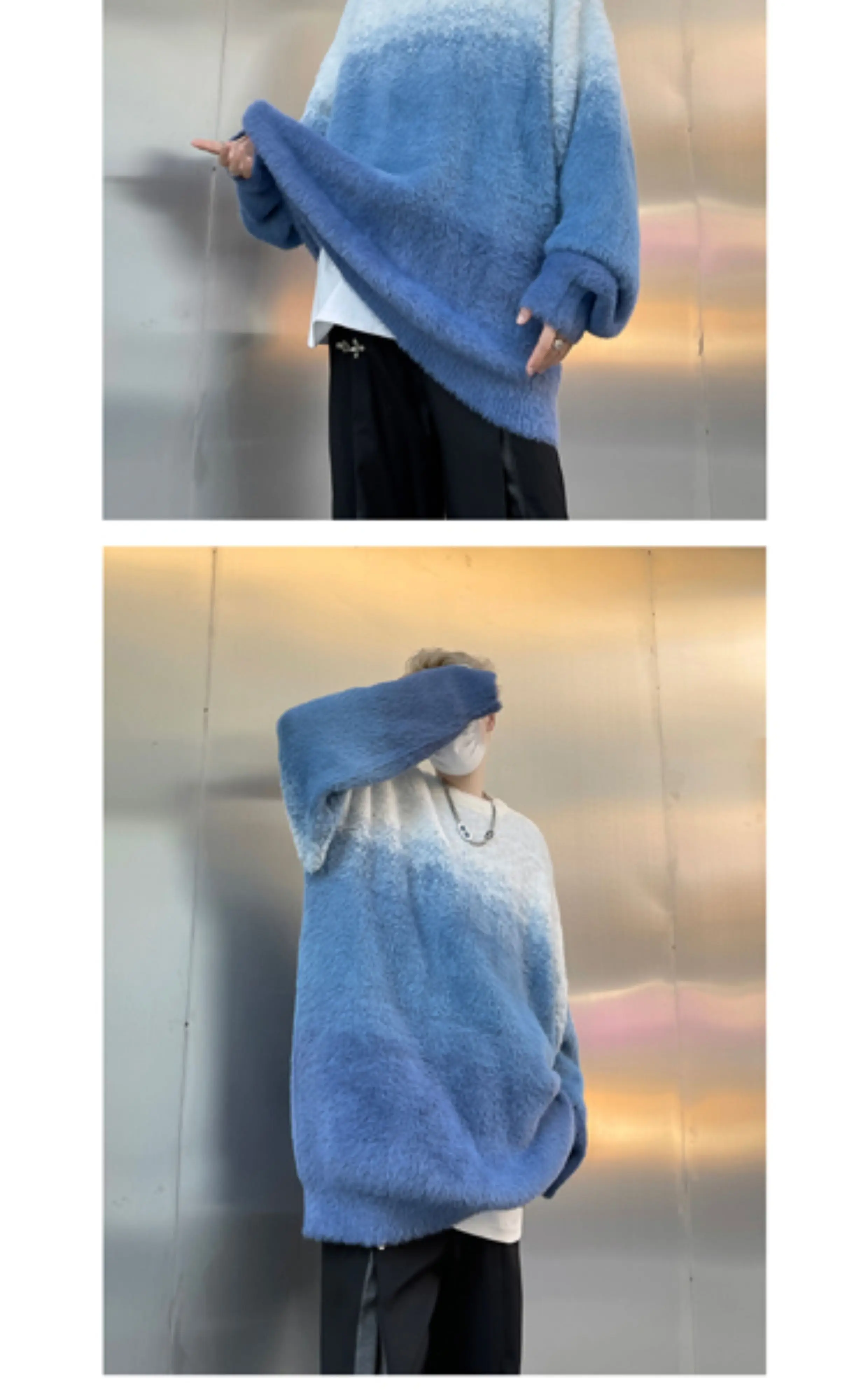 Aidase 2024 Men Autumn Winter New Imitation Mink Sweater Top Male Gradient Round Neck Jumpers Mens Long Sleeve Warm Knitted Tops