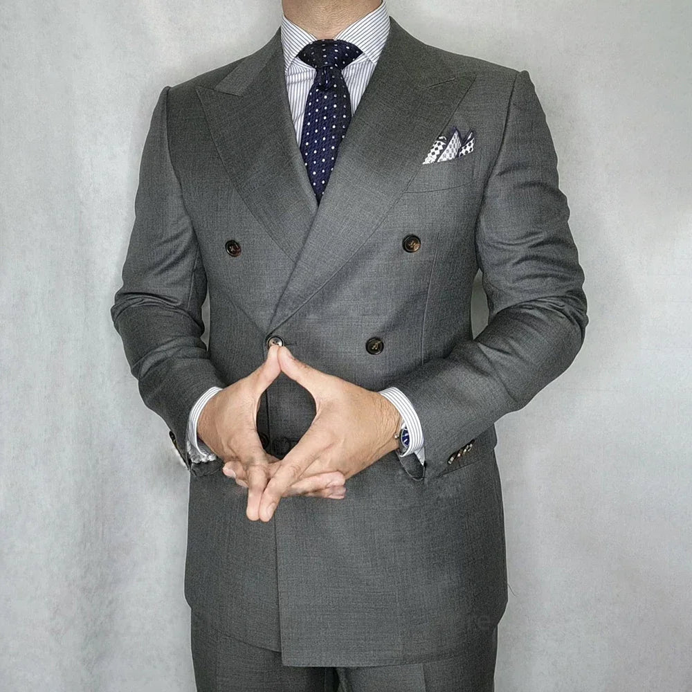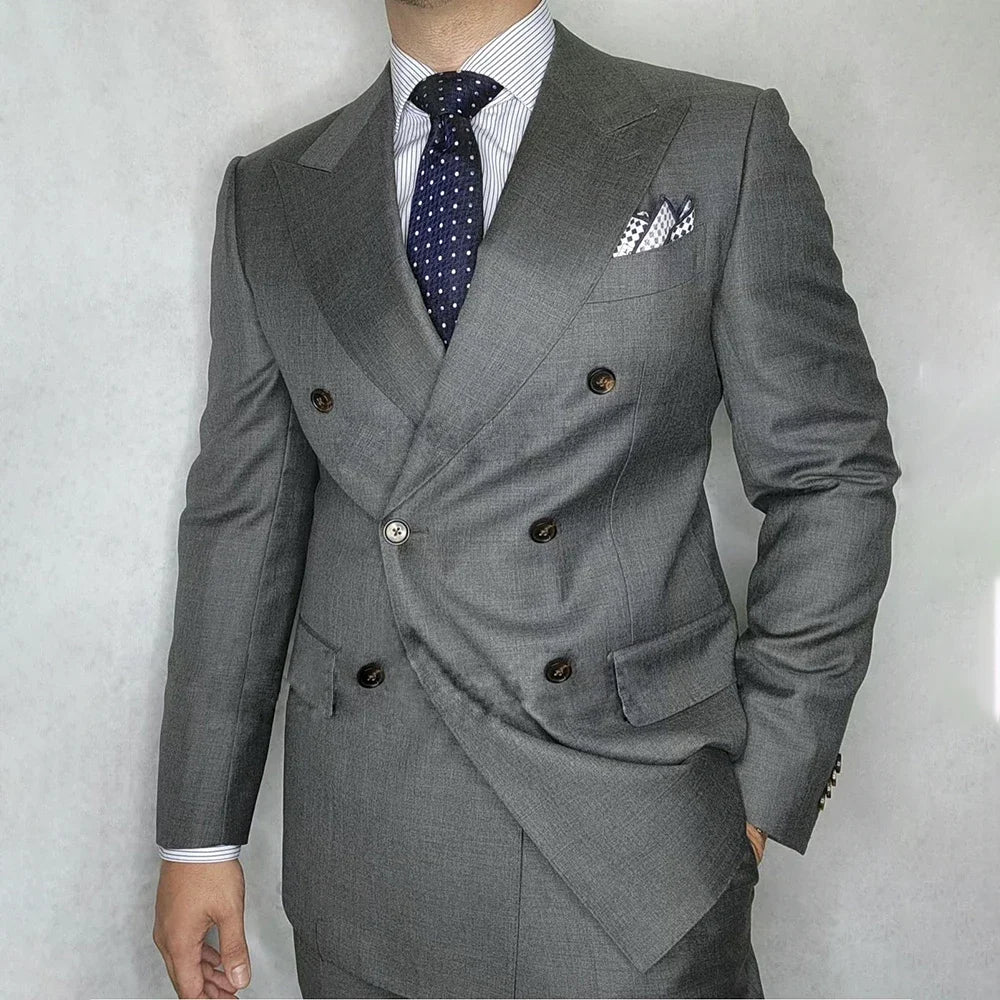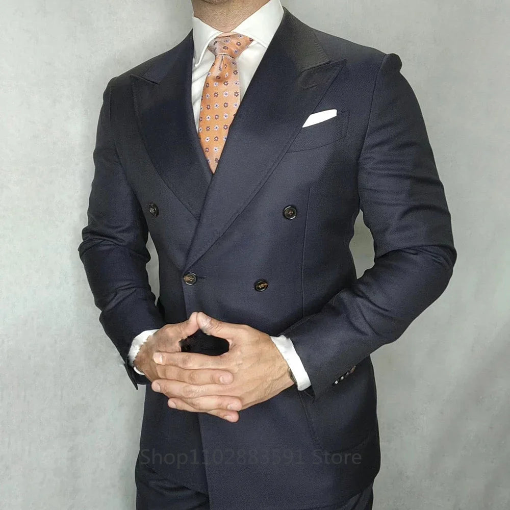 2 Pieces Men Suits For Wedding Jacket Pants Groom Peak Lapel Tuxedo Formal Sim Fit Double Breasted Tuxedo (Jacket+Pants)