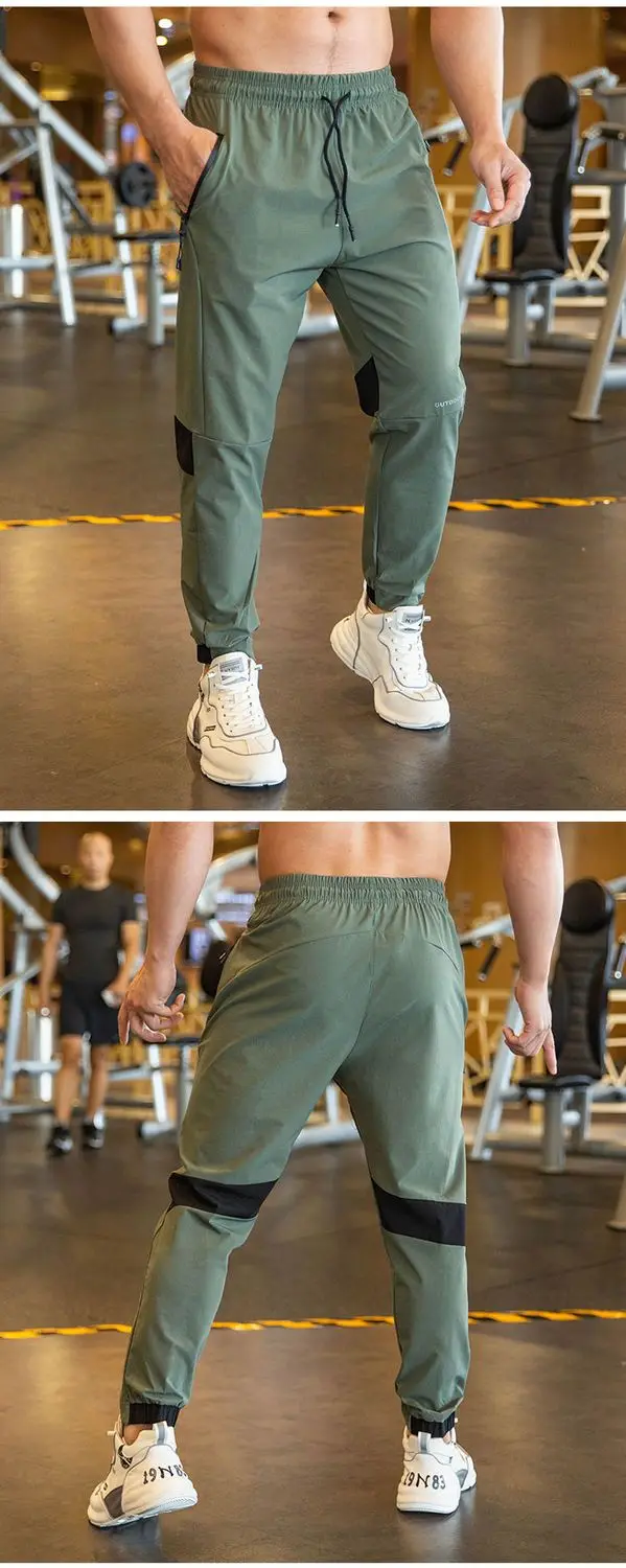 Aidase 2024 Summer Thin Style Ice Silk Fabric Motion Trousers Man Solid Color Elastic Waist Quick Drying Loose Bodybuilding Sweatpants