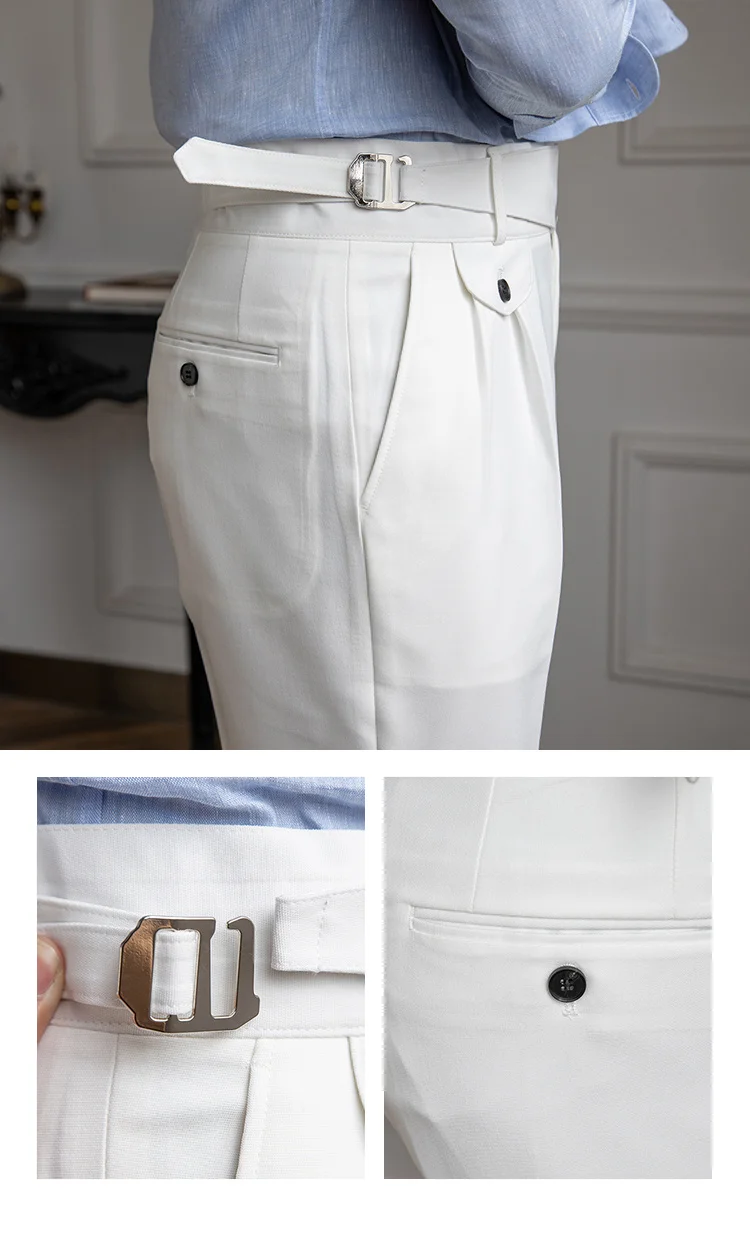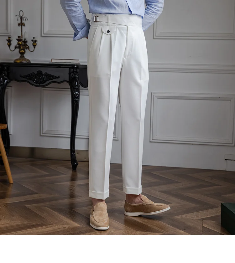 Adjustable High Waist Straight Tube Pants Pantalones Hombre Dress Ankle Pant Men British Straight Pants Men Social Trousers Pant