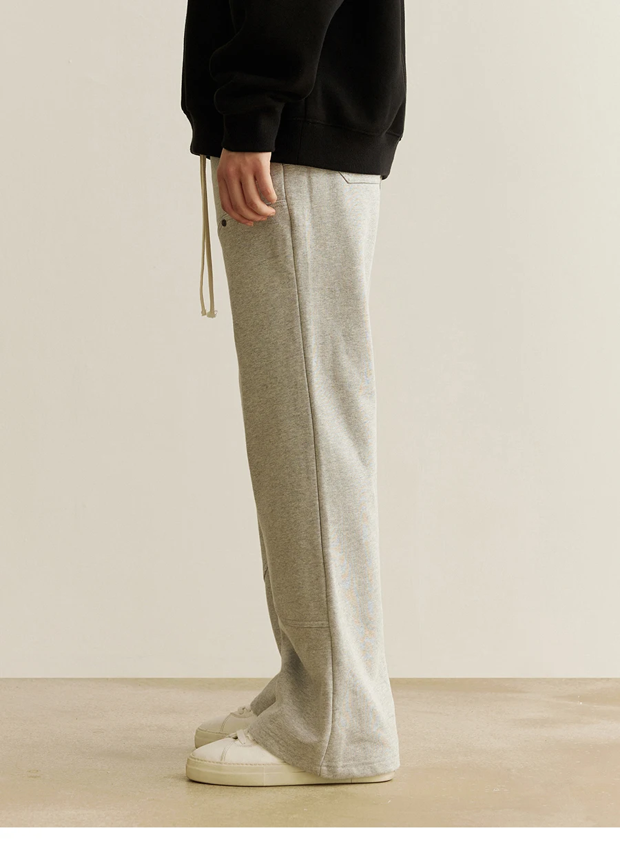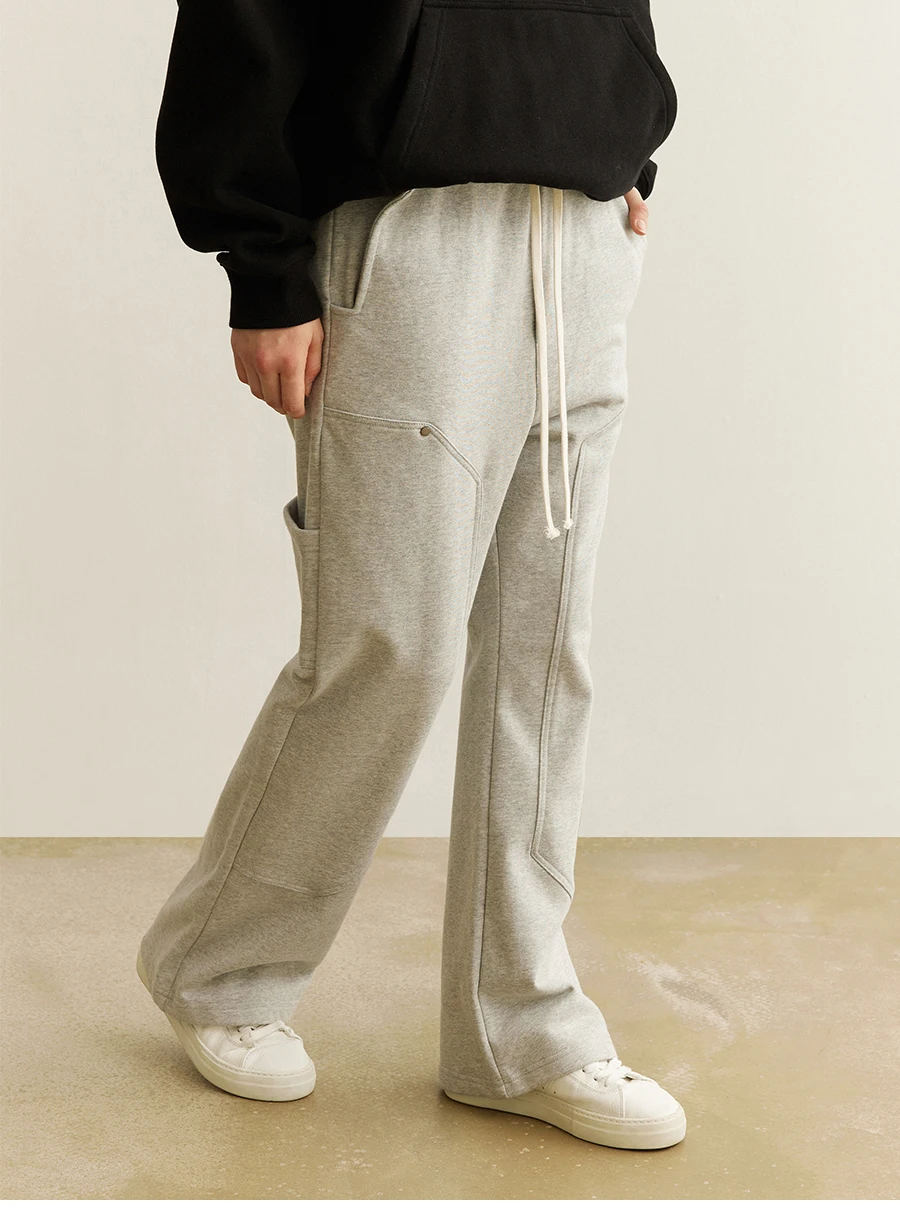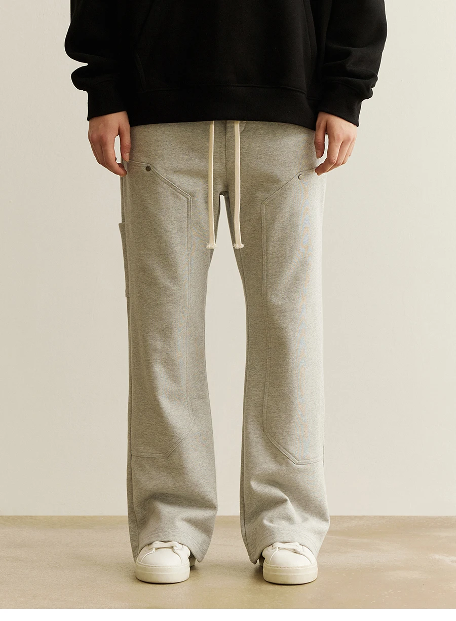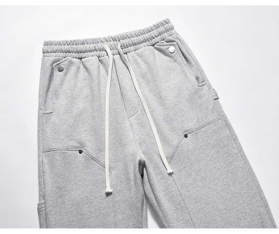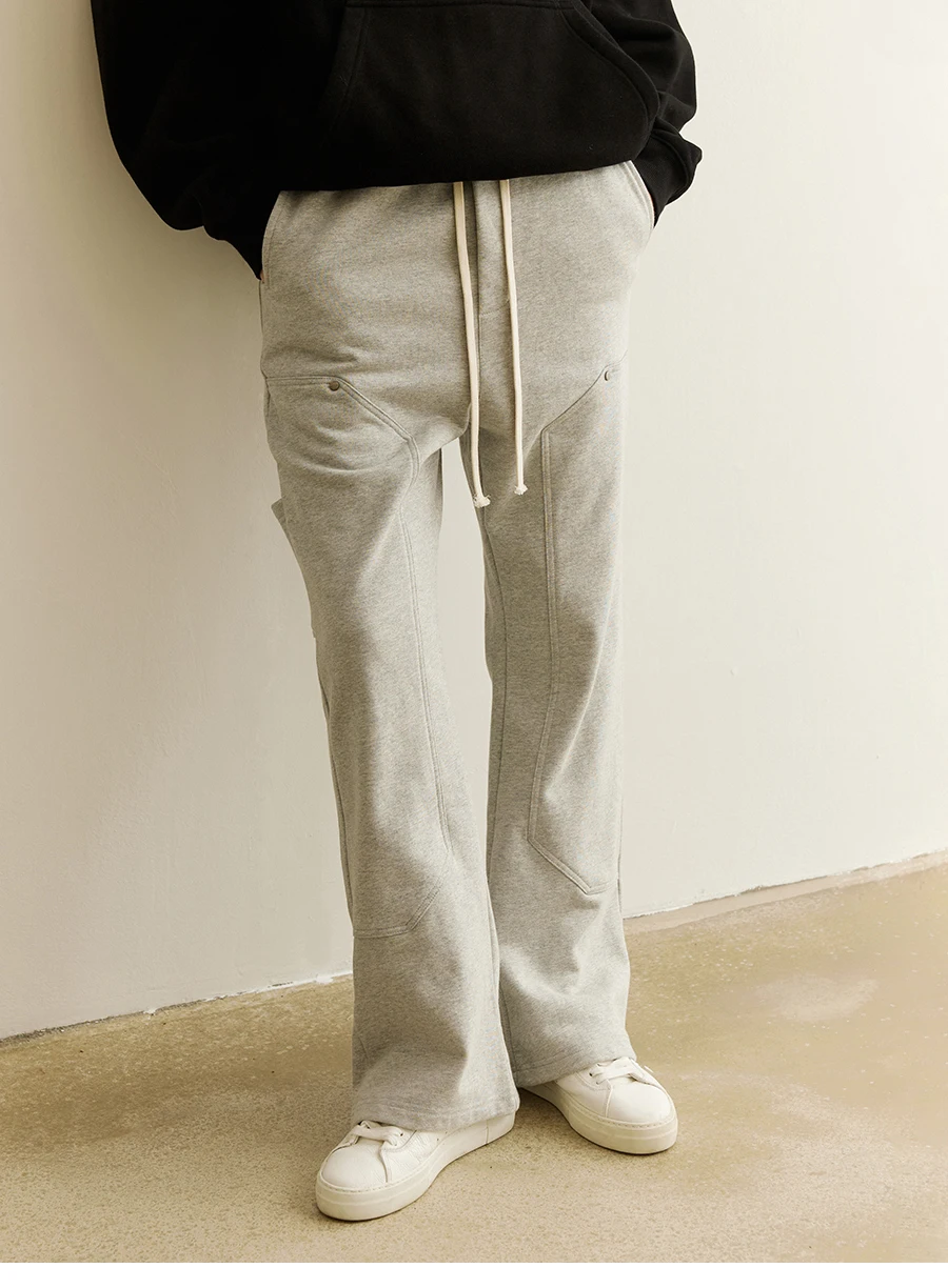 Aidase American Streetwear Gray Flared Sweatpant Men Double Knee Patch Micro Flare Overalls Harajuku Casual Patchwork Sweat Pants Black