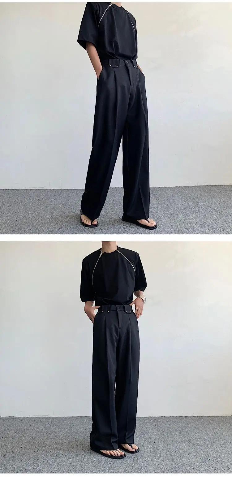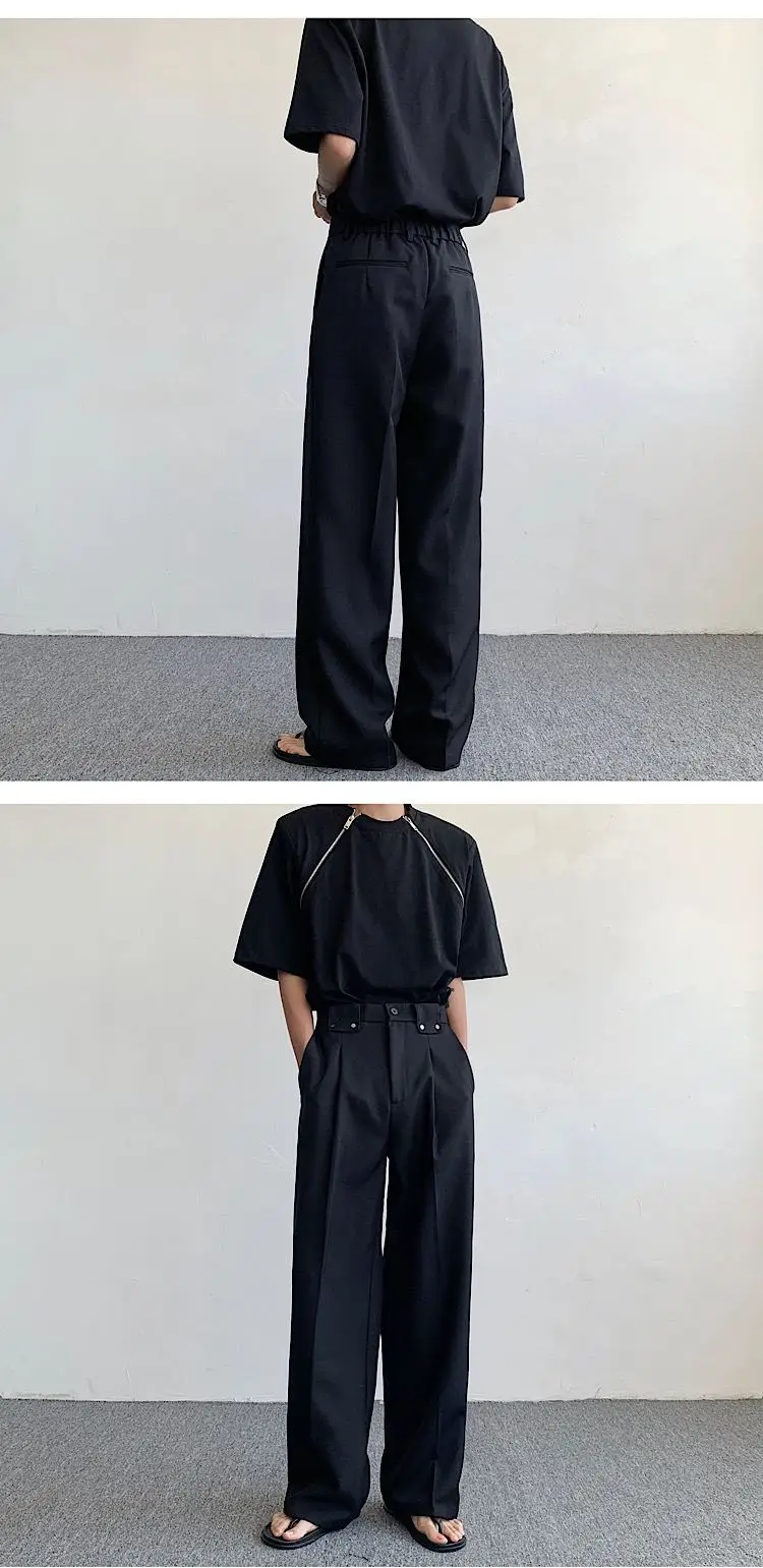 Aidase Baggy Black Suit Pants Men Fashion Social Men Dress Pants Korean Loose Straight Wide Leg Pants Men Office Formal Trousers S-XL