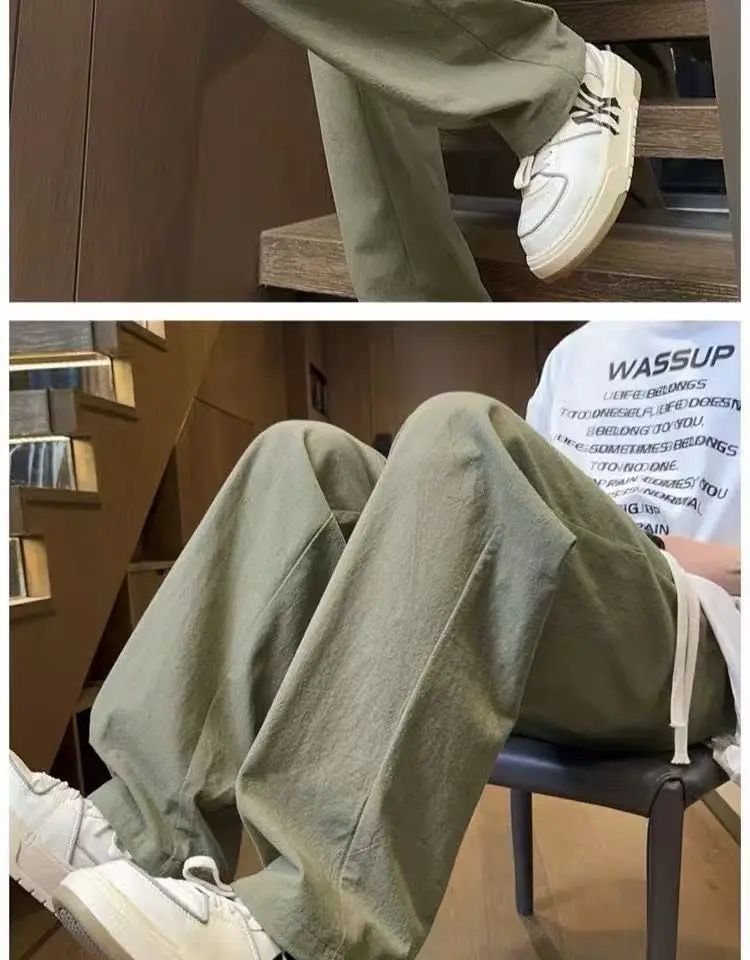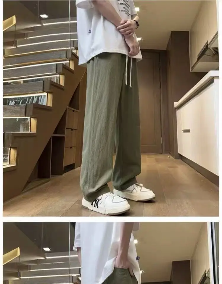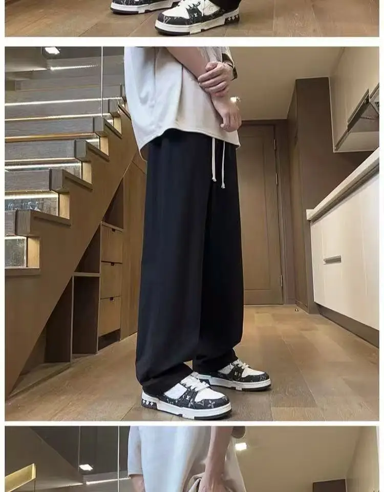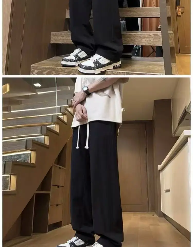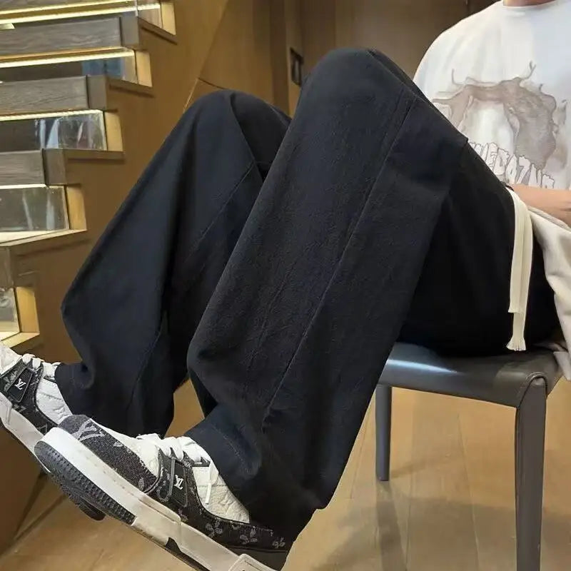 AIDASE - Casual Trousers for Men's Summer New Ice Silk Trendy Sports Loose Straight Tube for Men