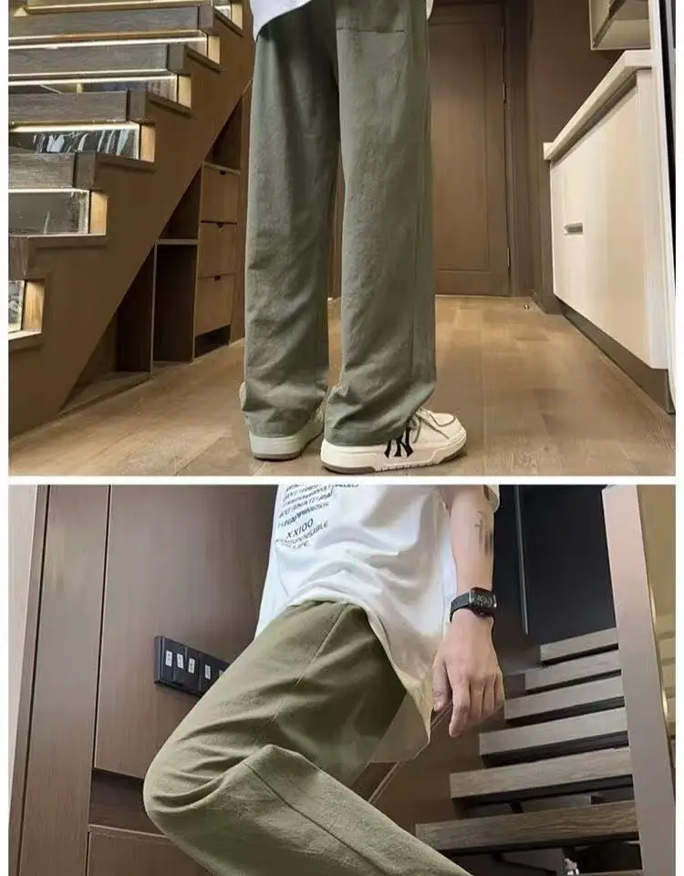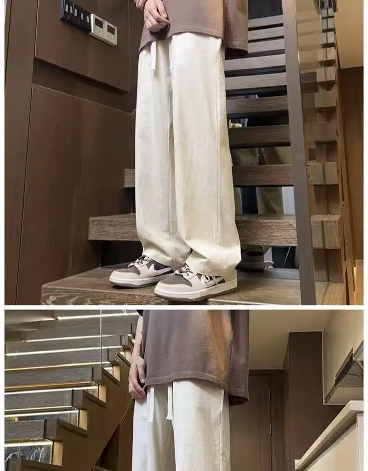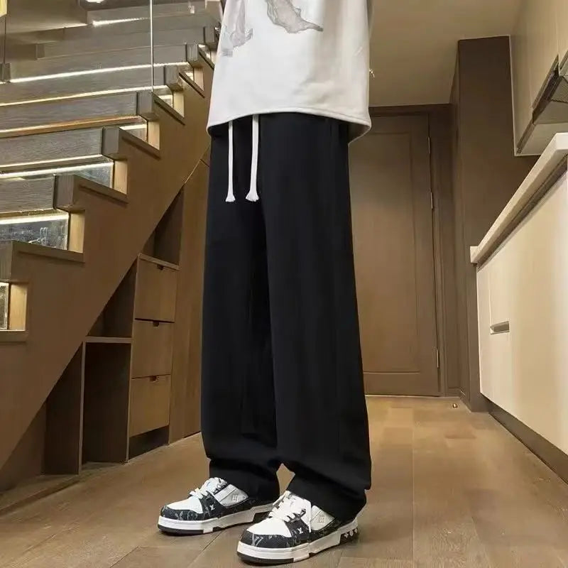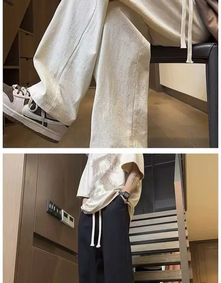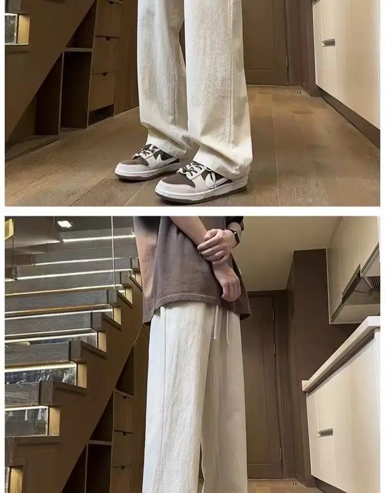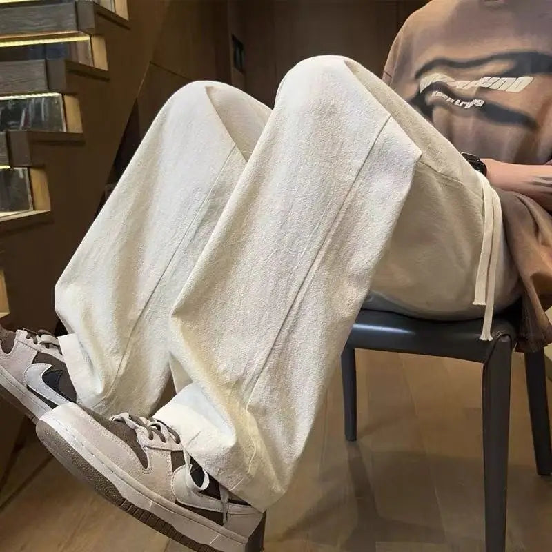 AIDASE - Casual Trousers for Men's Summer New Ice Silk Trendy Sports Loose Straight Tube for Men