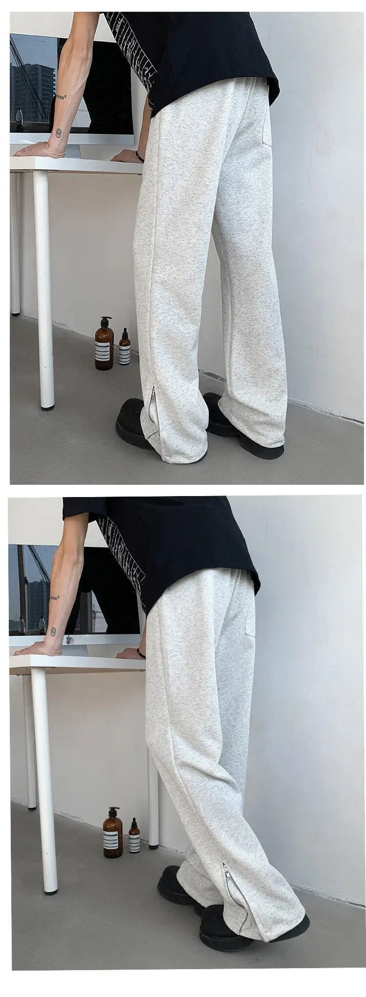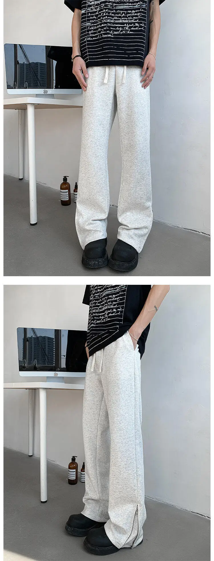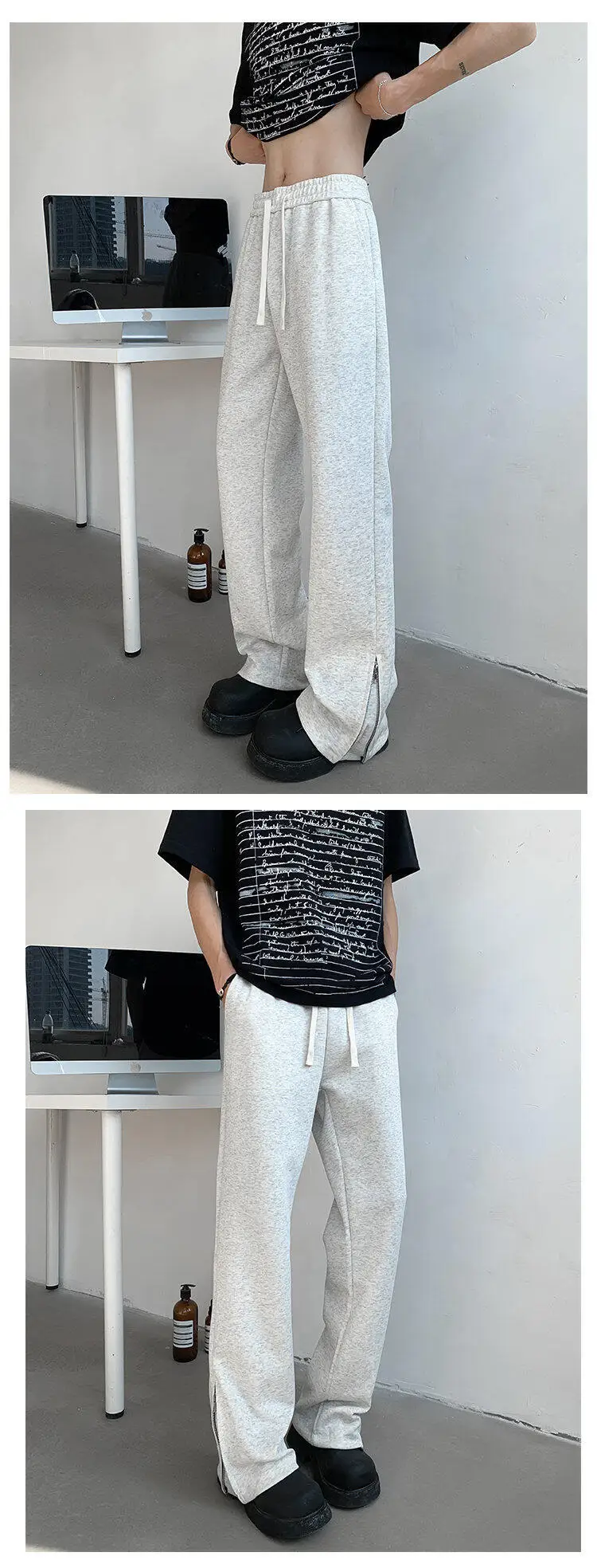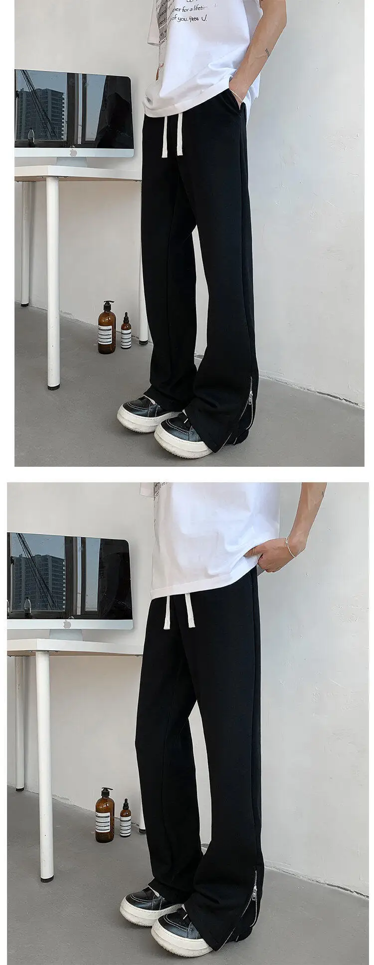 AIDASE - Drawstring Men Sweatpannts American Style Solid Color Elastic Waist Bottom Zipper Patchwork Straight Male Trousers 24K2733