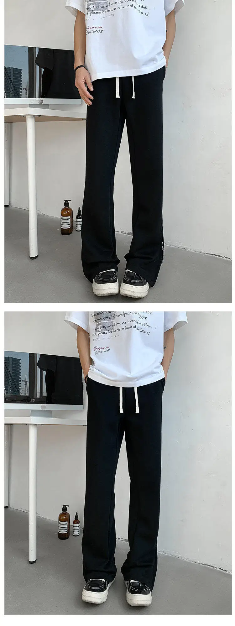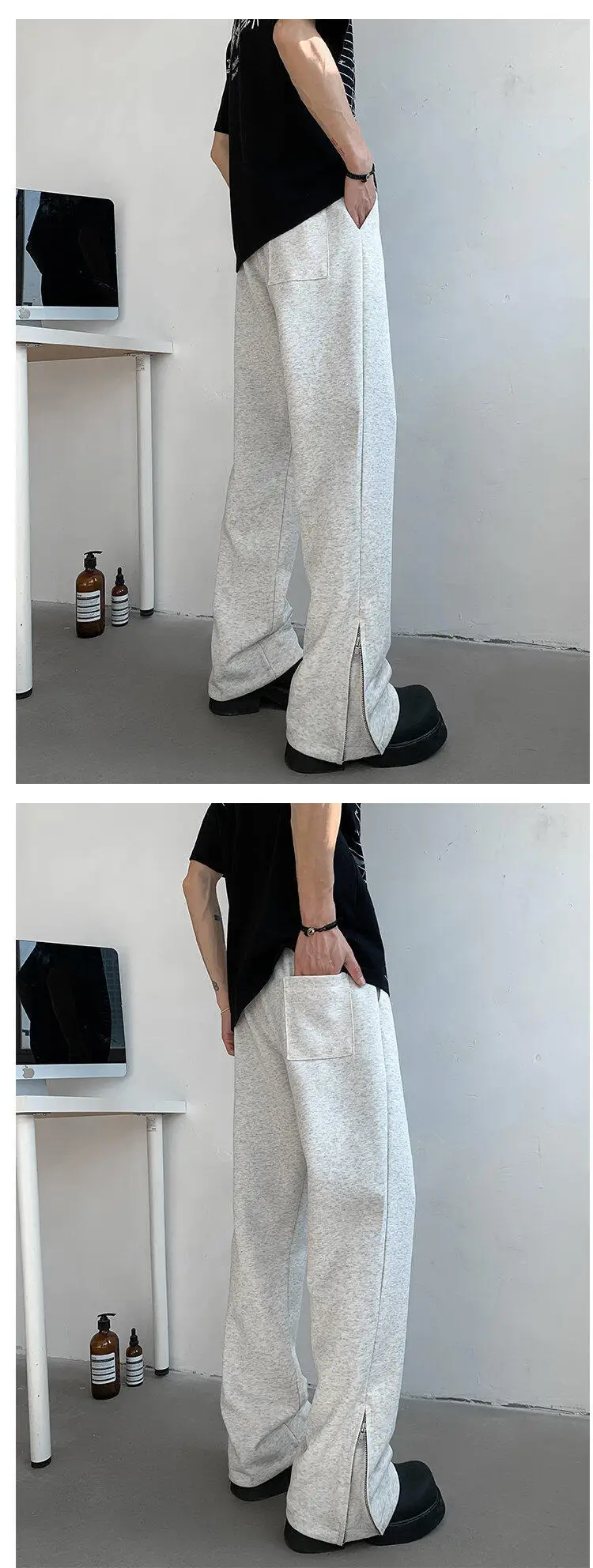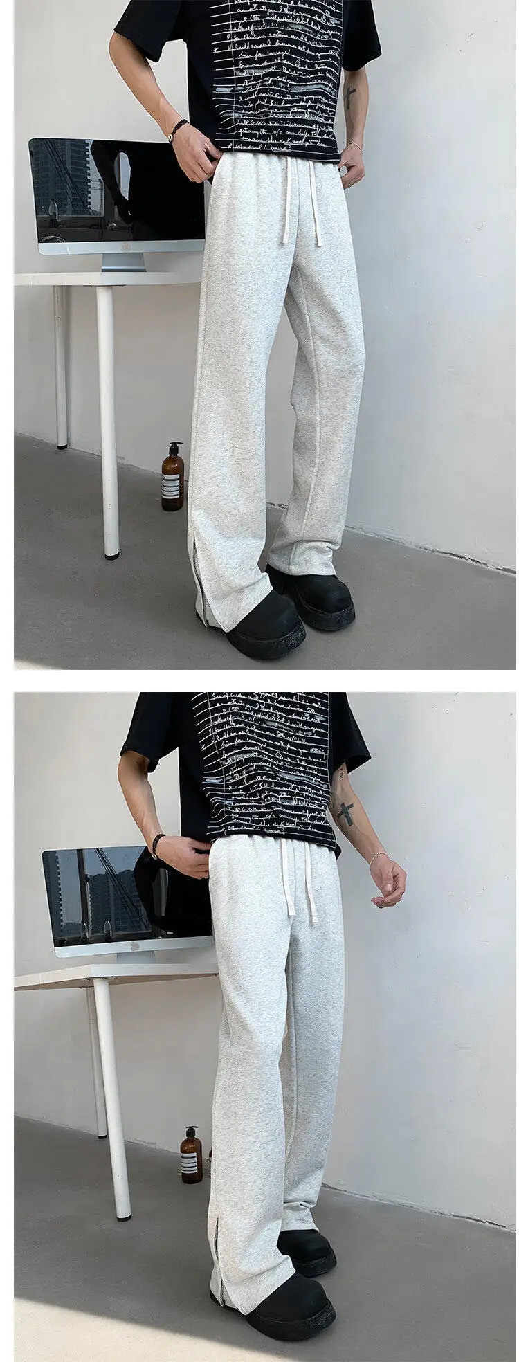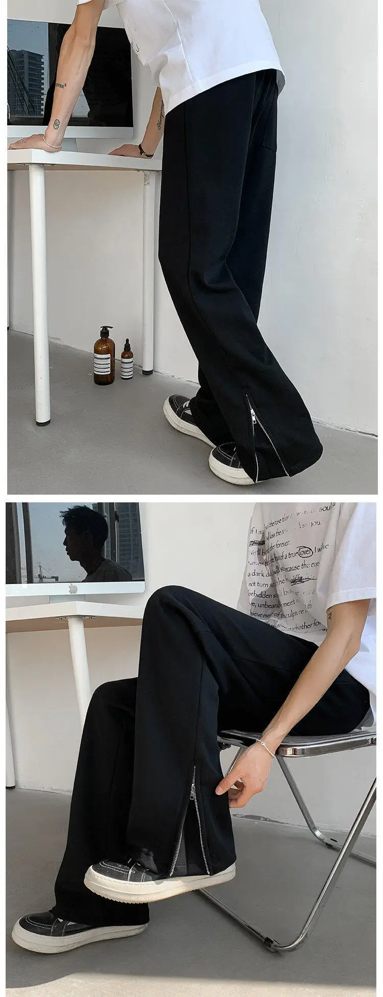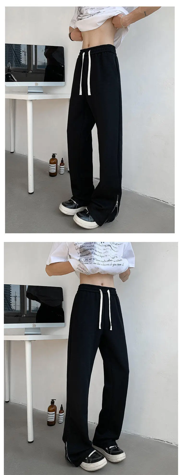 AIDASE - Drawstring Men Sweatpannts American Style Solid Color Elastic Waist Bottom Zipper Patchwork Straight Male Trousers 24K2733