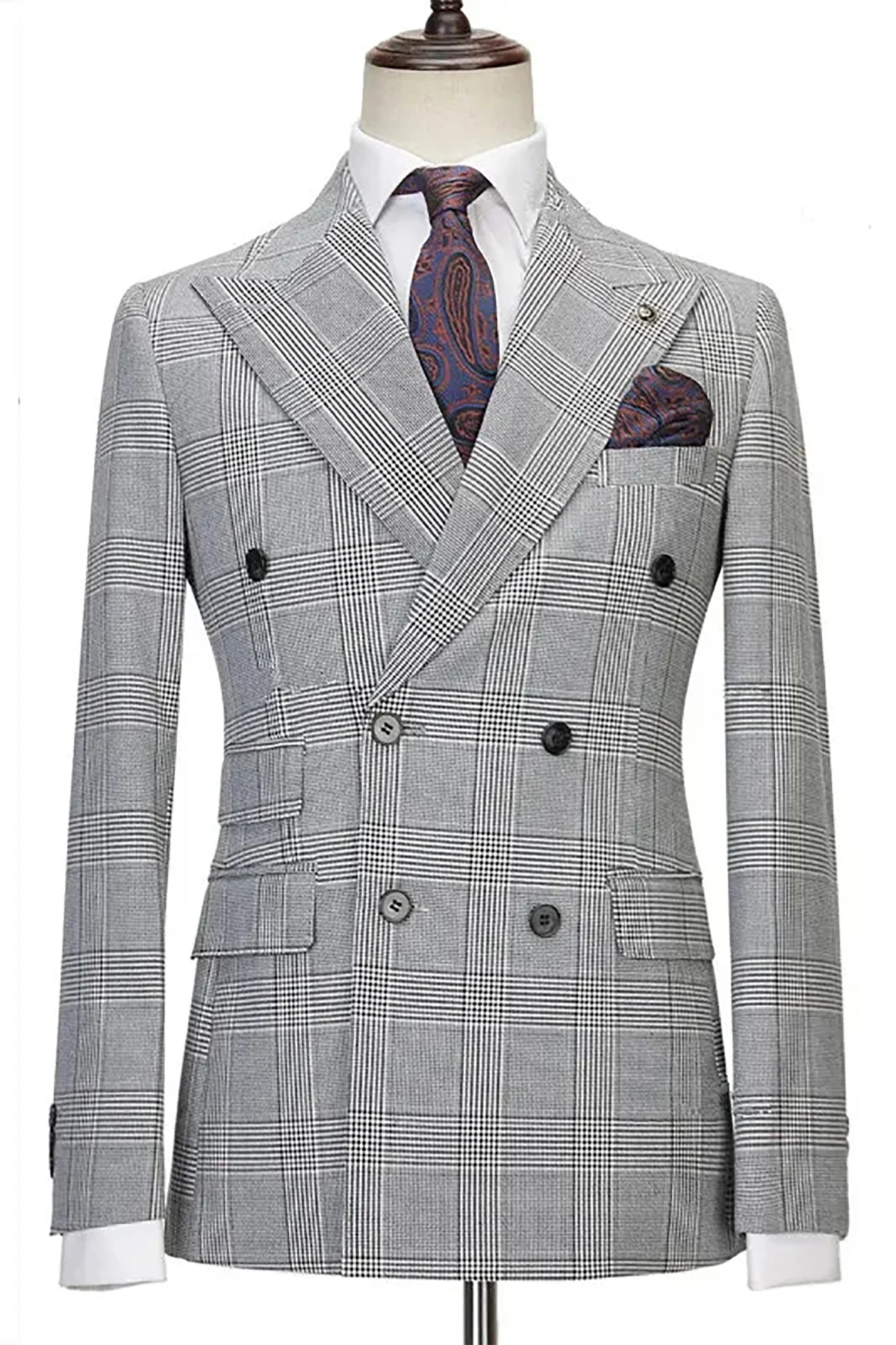 Aidase Gray Check Mens Wedding Tuxedos Double Breasted Slim Fit Pants Suits Formal Party Groom Wear 2 Pieces