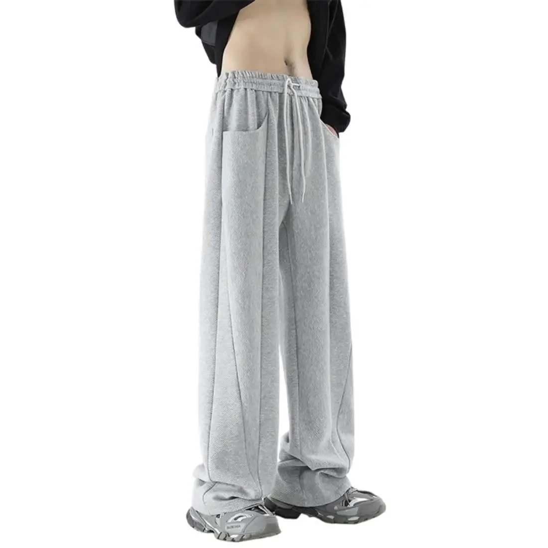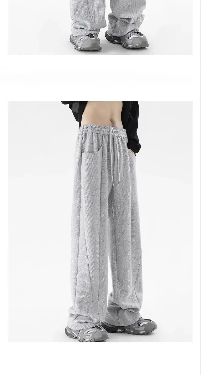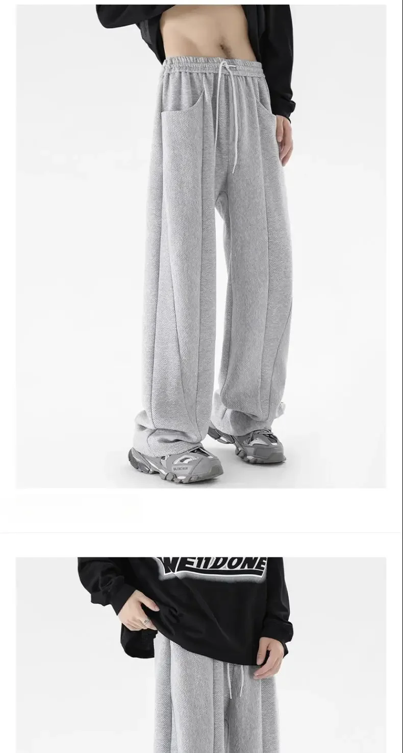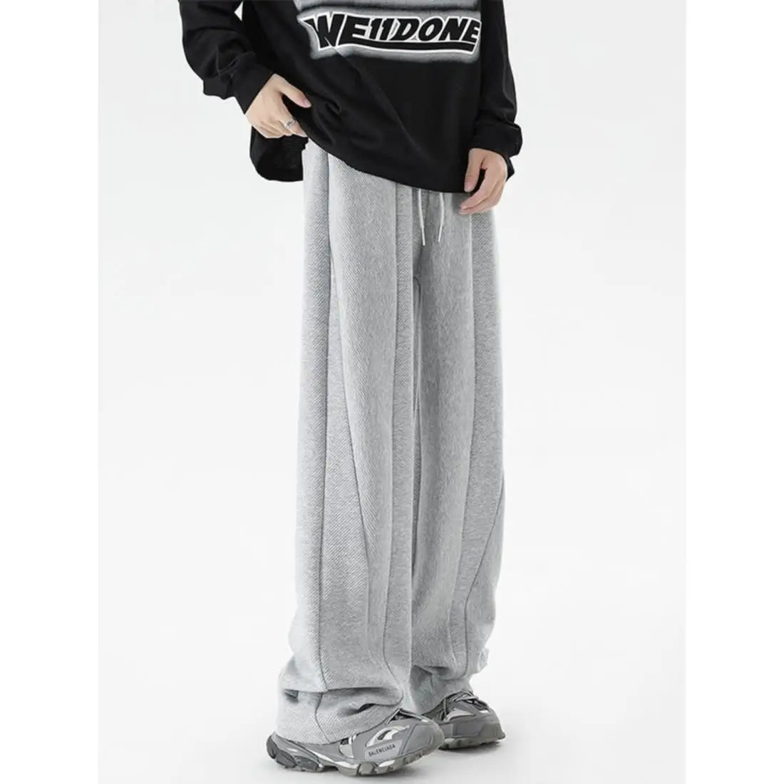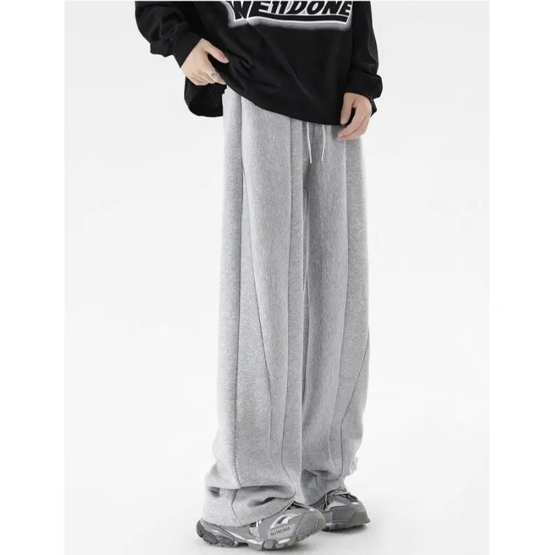 AIDASE - Gray Men's Autumn American High Street Heavy Sports Trendy Brand Straight Casual Wide-leg Trousers