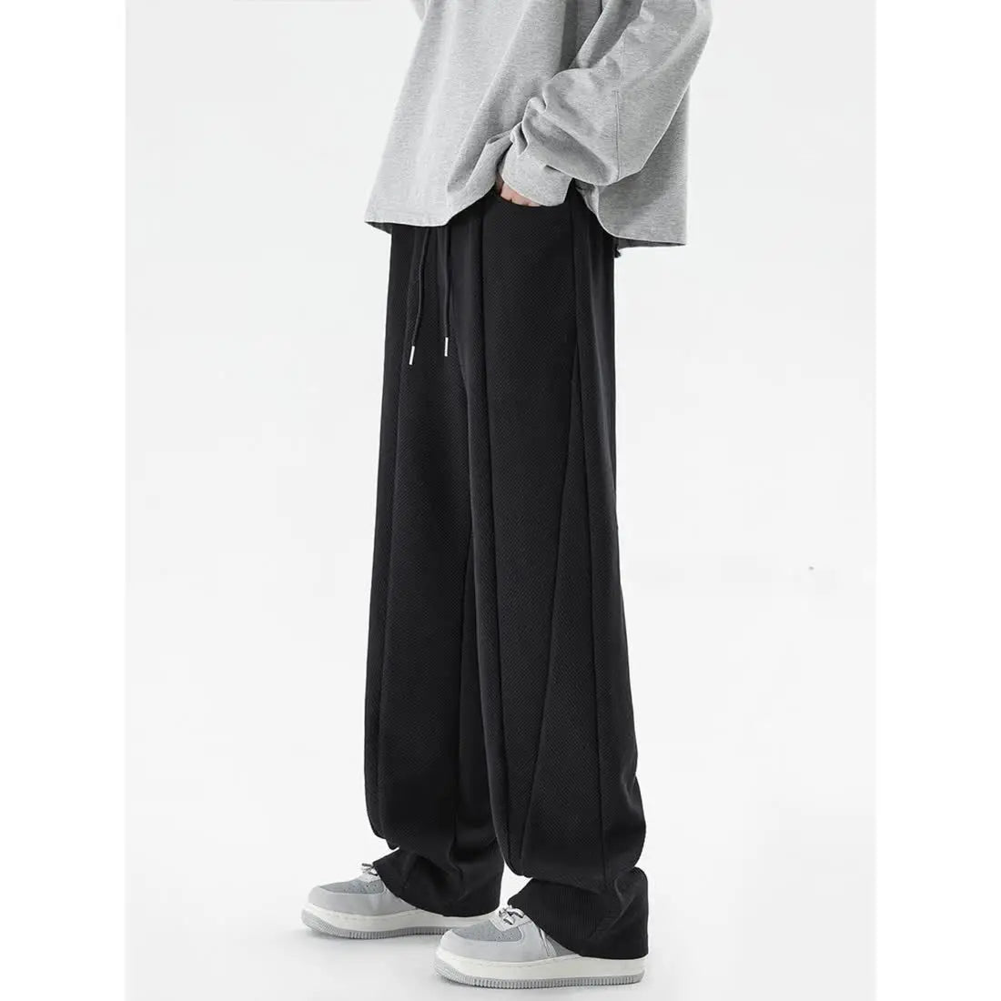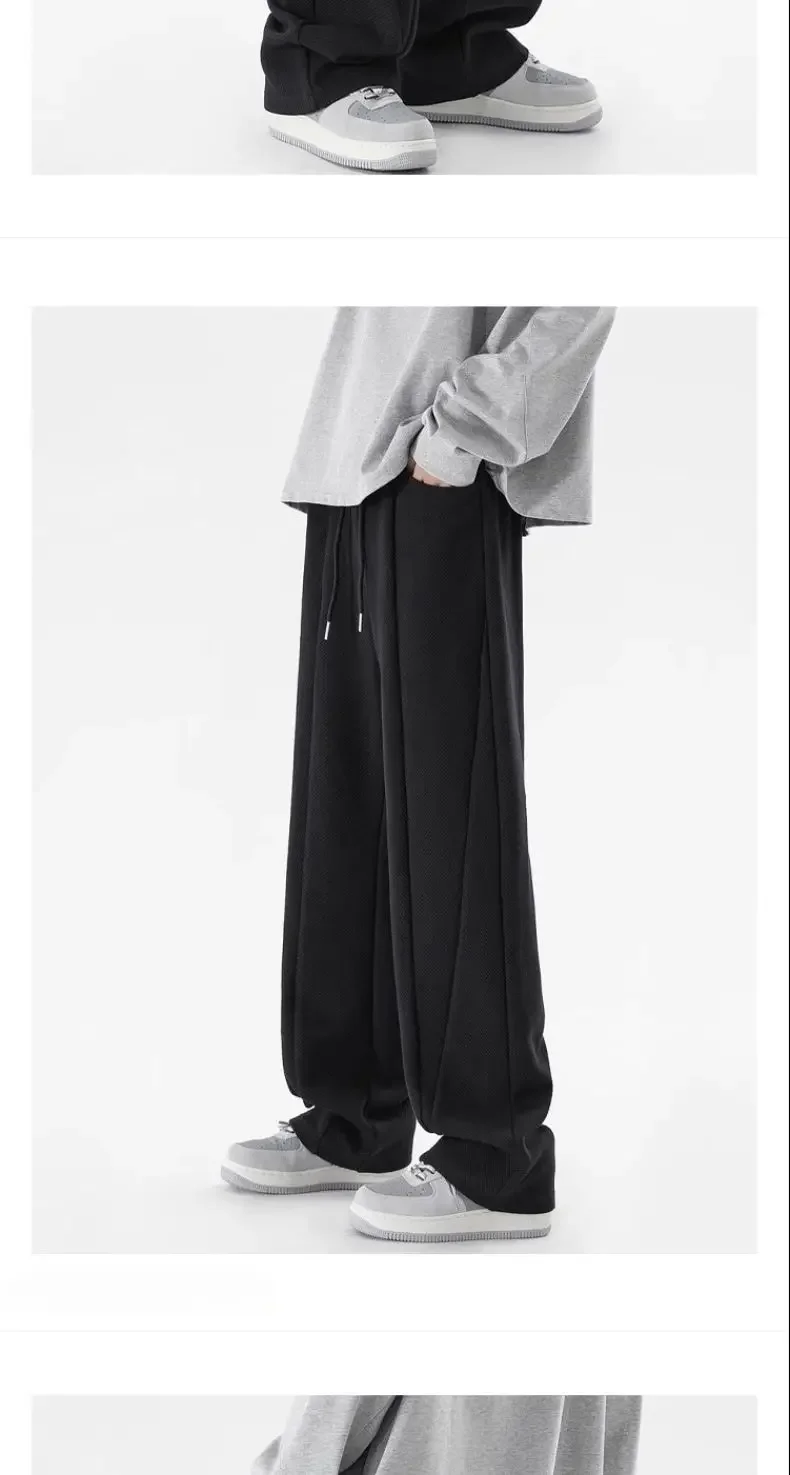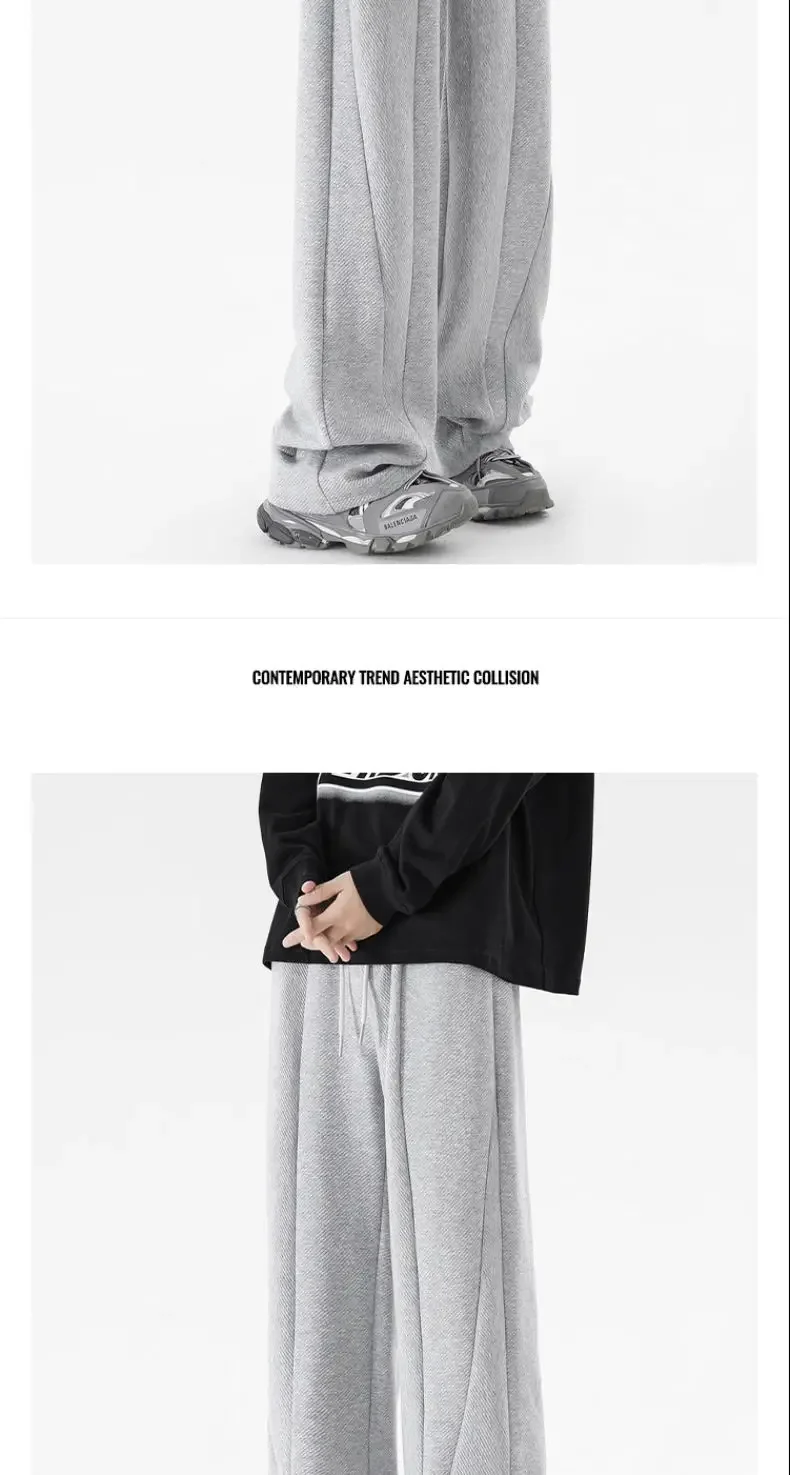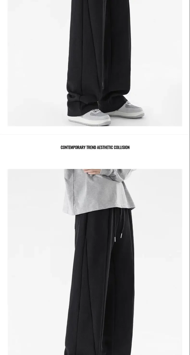 AIDASE - Gray Men's Autumn American High Street Heavy Sports Trendy Brand Straight Casual Wide-leg Trousers