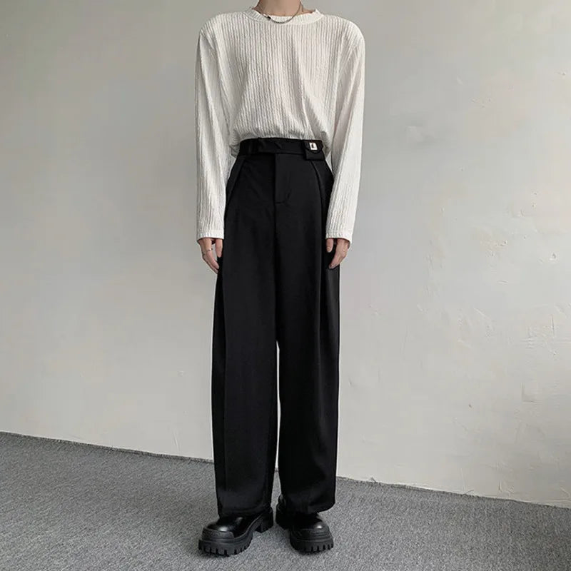 AIDASE - Korean Black Suit Pants Men Oversized Fashion Social Mens Dress Pants Loose Straight Wide Leg Pants Mens Office Formal Trousers