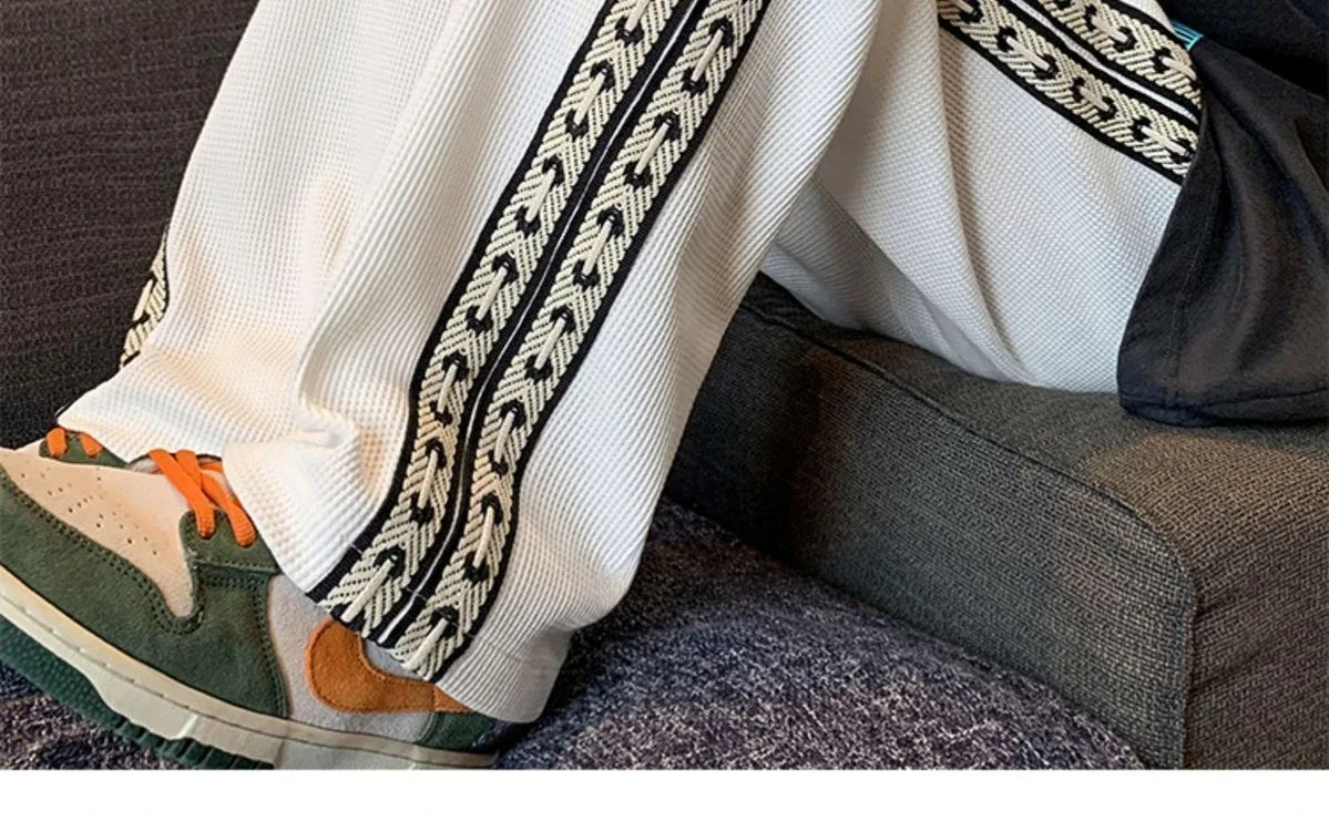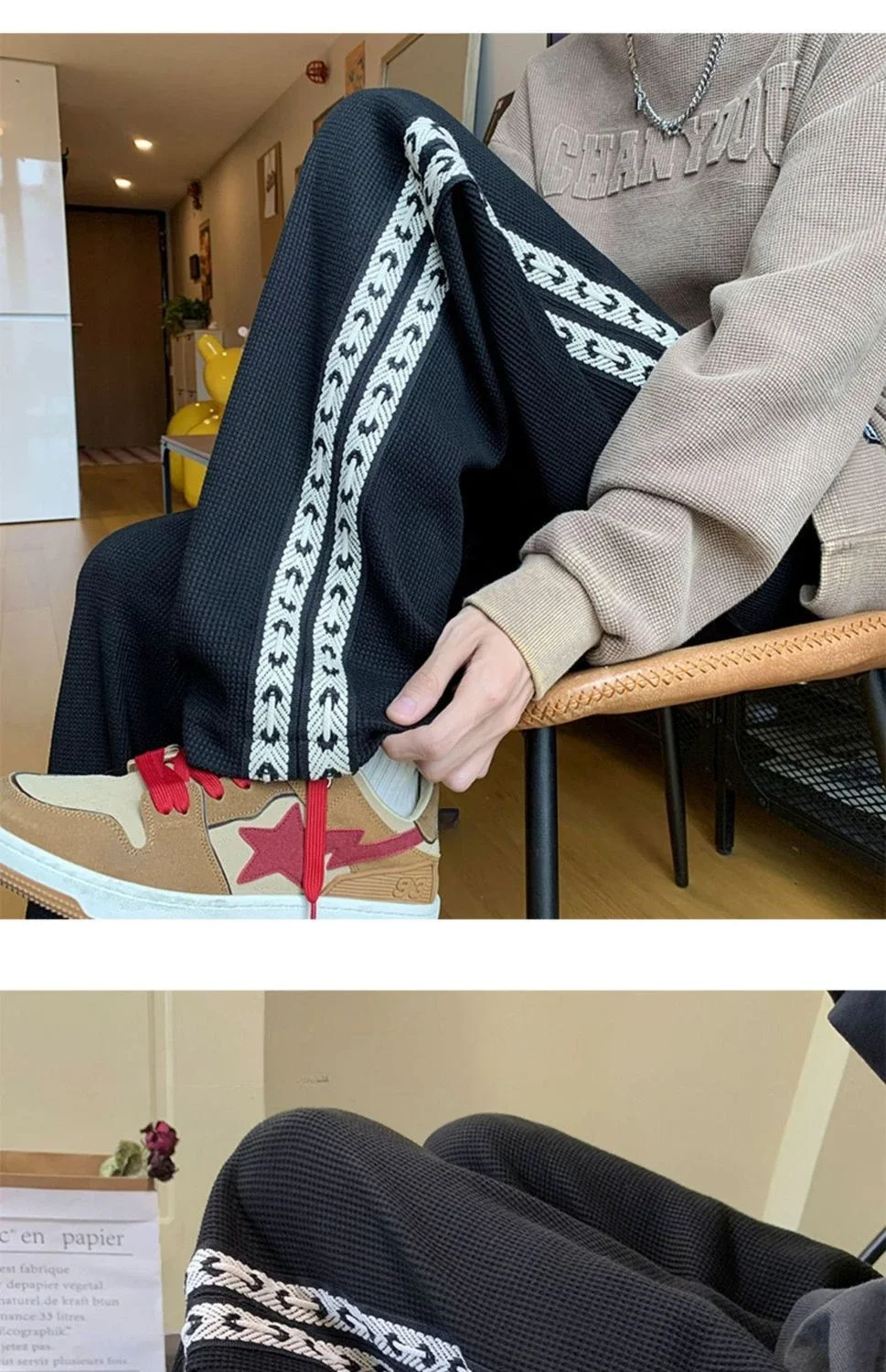 Aidase Male Sweat Pants Black Wide Leg Sweatpants For Men Straight Trousers Hip-hop Summer Fashion Tracksuit Bottoms Slacks Elastic