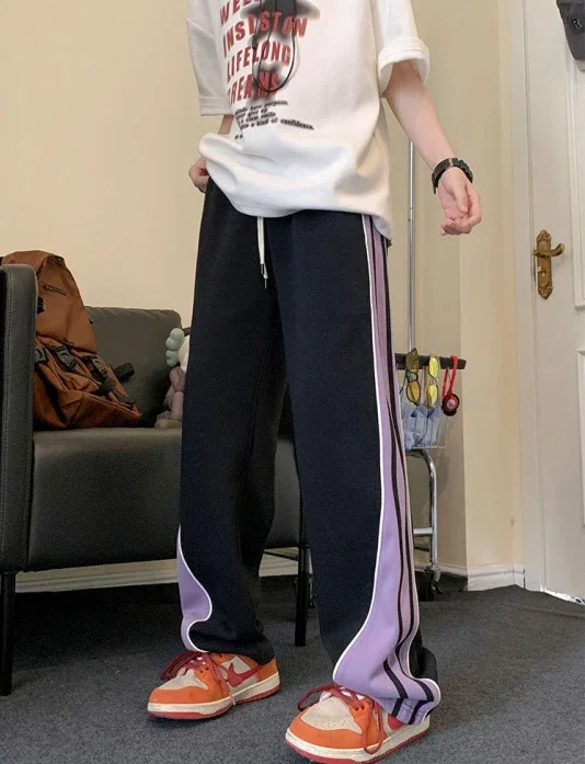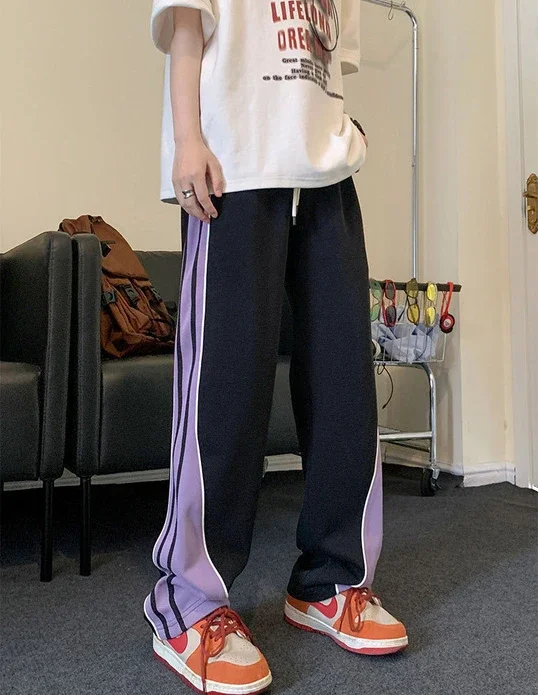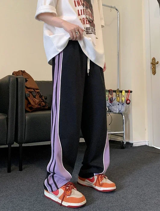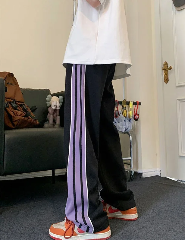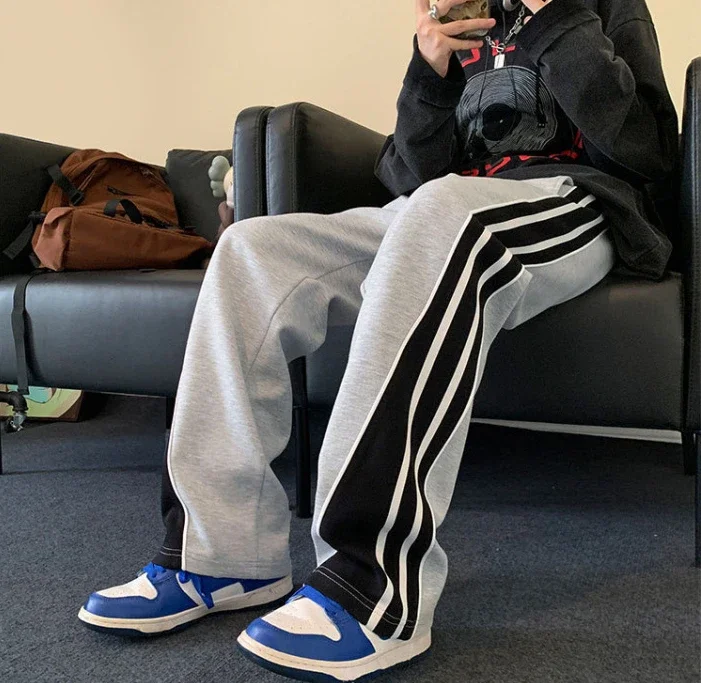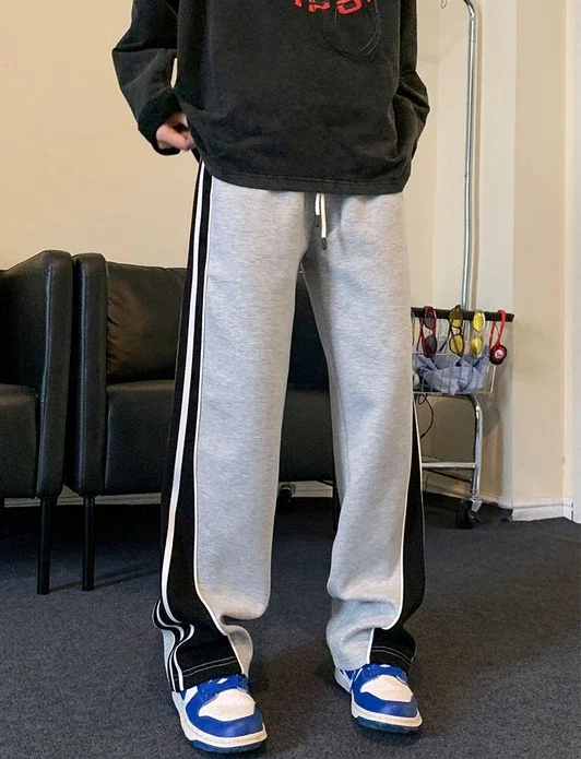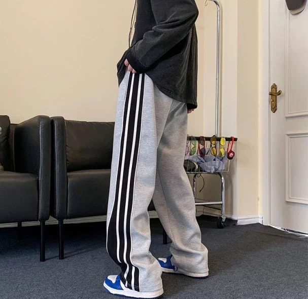 Aidase Male Trousers Baggy Autumn Winter Wide Punk Loose Men's Casual Pants Straight Striped Low Price Stylish High Quality Vintage Y2k