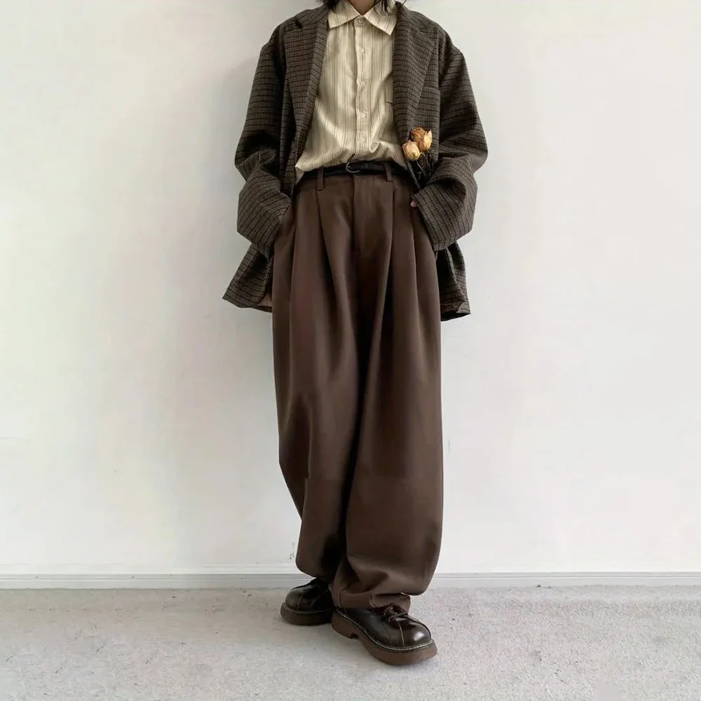 Mens Suit Trousers Meiyad Casual Business Trousers Spring Autumn Retro Office British Elegant Wide-Leg Trousers Men'S Wear 2024