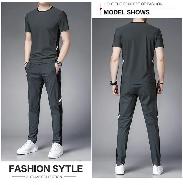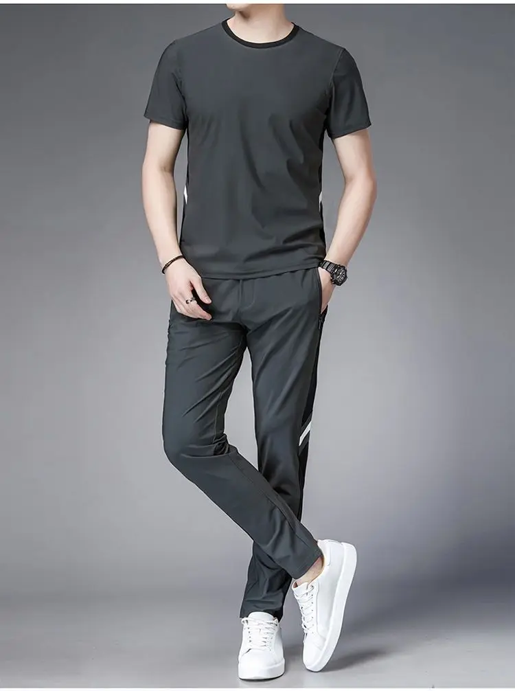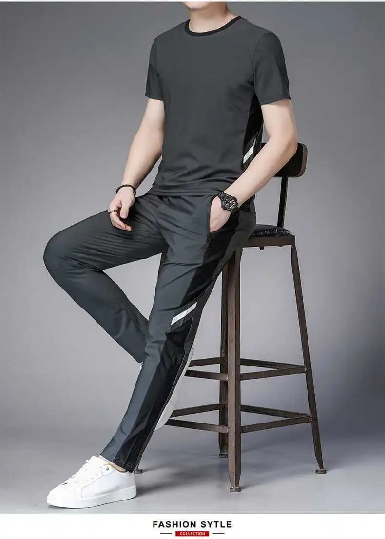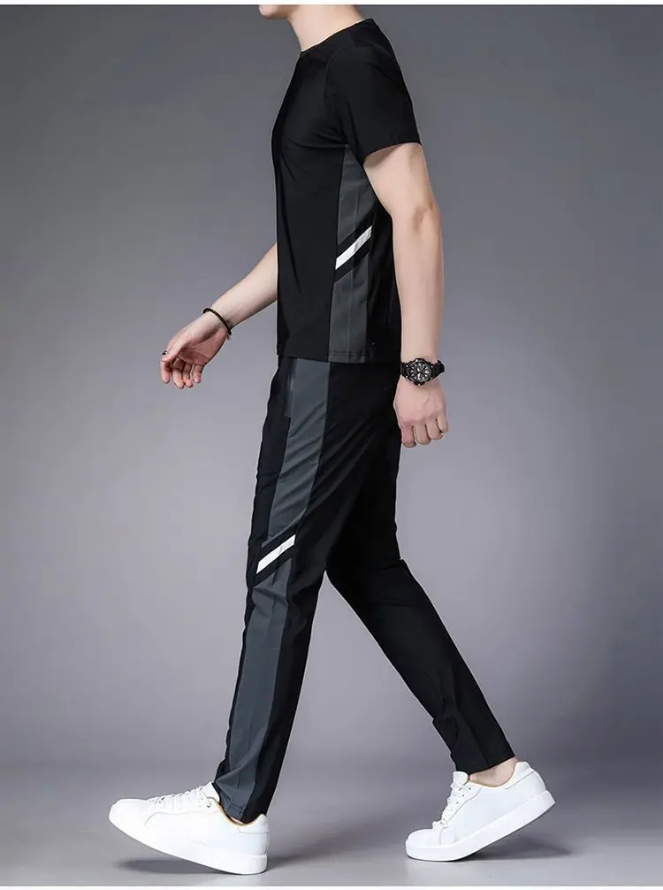 Aidase Men's Top Pants Sets Fashion Sports Suits Kpop Sweatpants Xl Clothing Cool No Logo Man T Shirt Polyester Slim Fit Chic Tracksuit